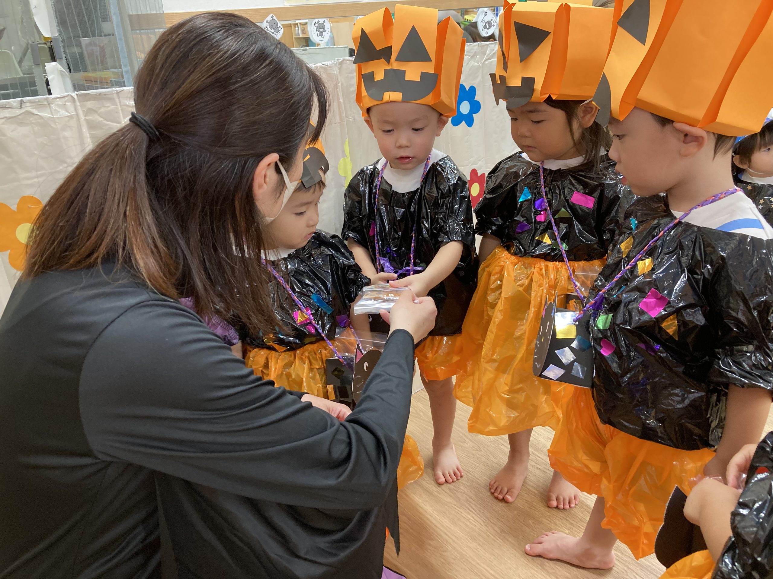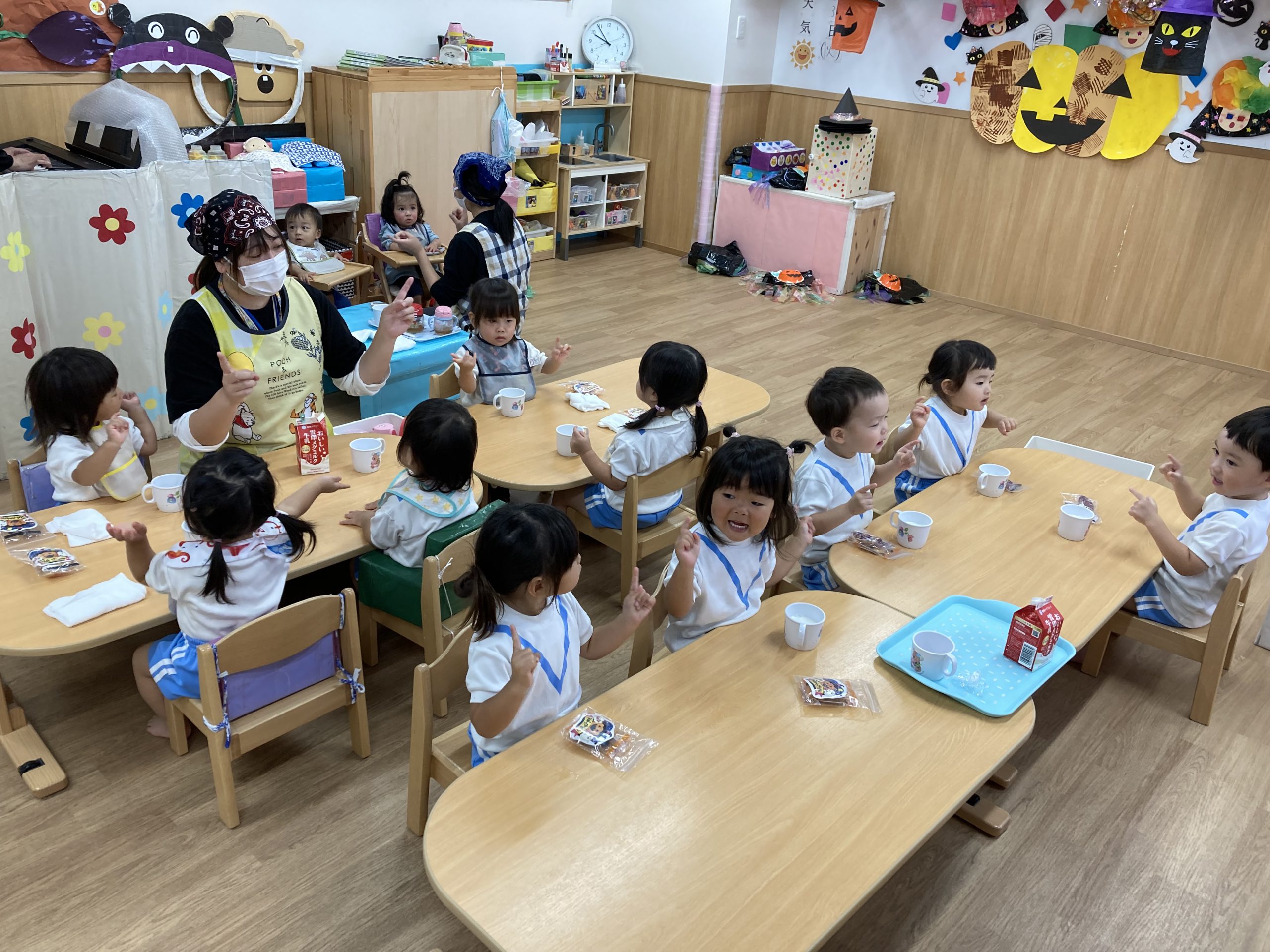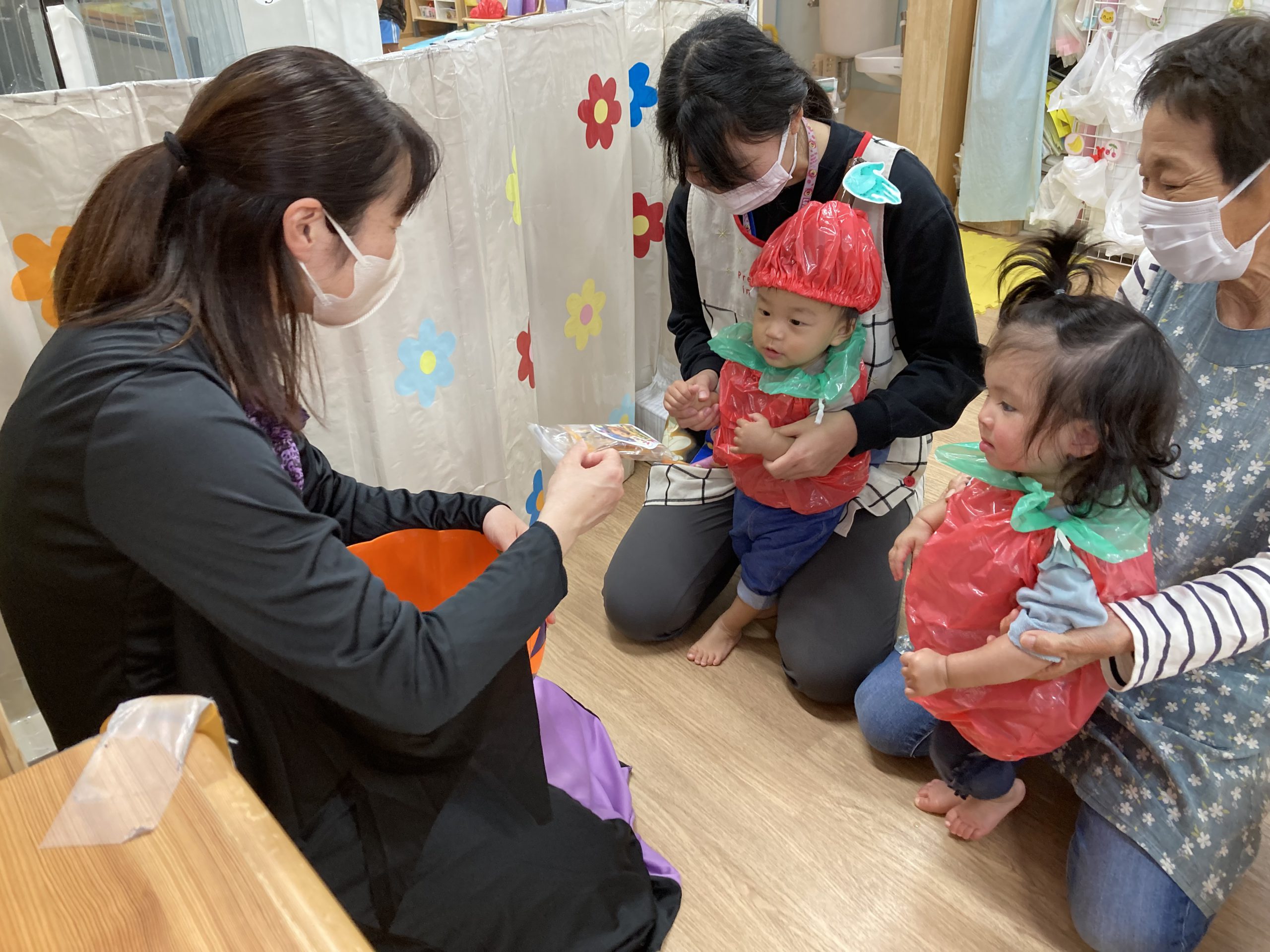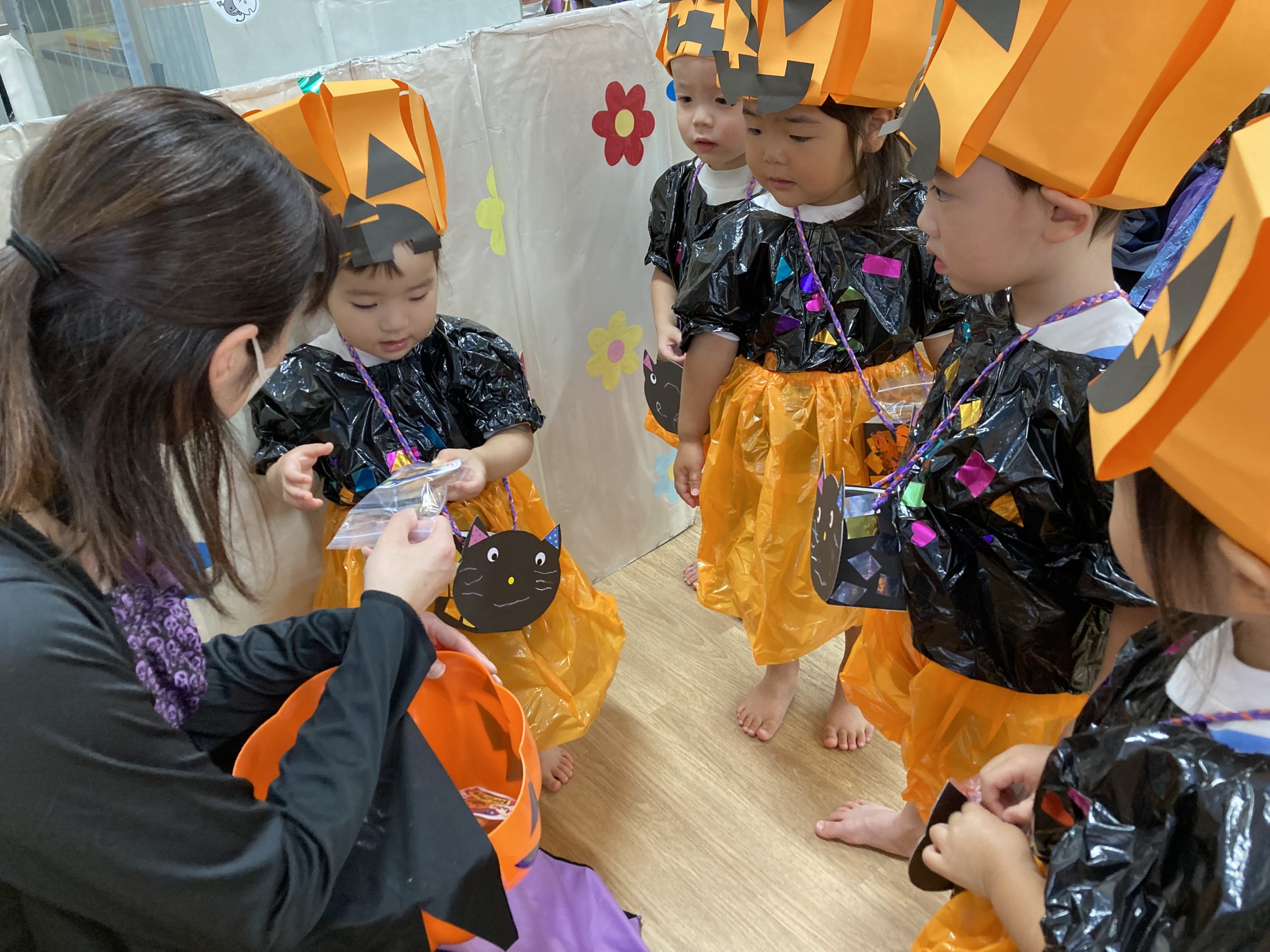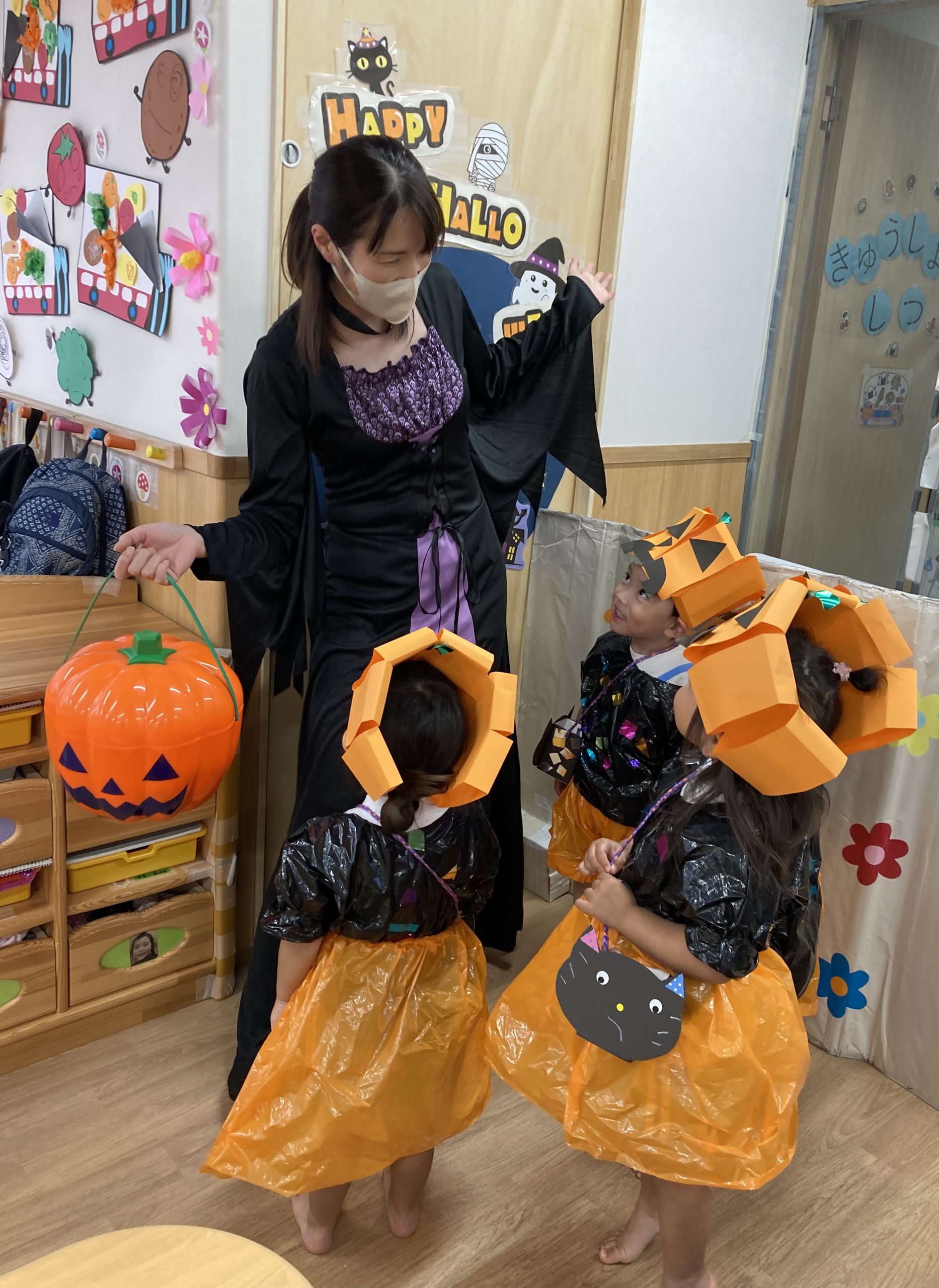 HAPPY HALLOWEEN👻2023年10月31日(火) 今日はハロウィンです🎵 子ども達は、早速衣装に着替えてハロウィンを楽しみました🎶 まずは、朝のおやつをもらいにいきました。 「トリックオアトリート おかしくれなきゃイタズラしちゃうぞ❕❕」 こぐま組 うさぎ組 ひよこ組 衣装を脱いで、朝のおやつを食べよう~ さぁ~えんどう食料品店さんへ行くよ~❕❕ 「せーのっ!」 「トリックオアトリート おかしくれなきゃイタズラしちゃうぞ❕❕」 えんどう食料品店さんと記念写真🎵 えんどう食料品店さんいつもありがとうございます。 うの家に行って記念写真♪ 散歩中に「可愛い~♪」と言われて大喜びの子ども達でした🎶 👻 HAPPY HALLOWEEN 👻 « お芋ほり🍠 10月の誕生会🎶 »