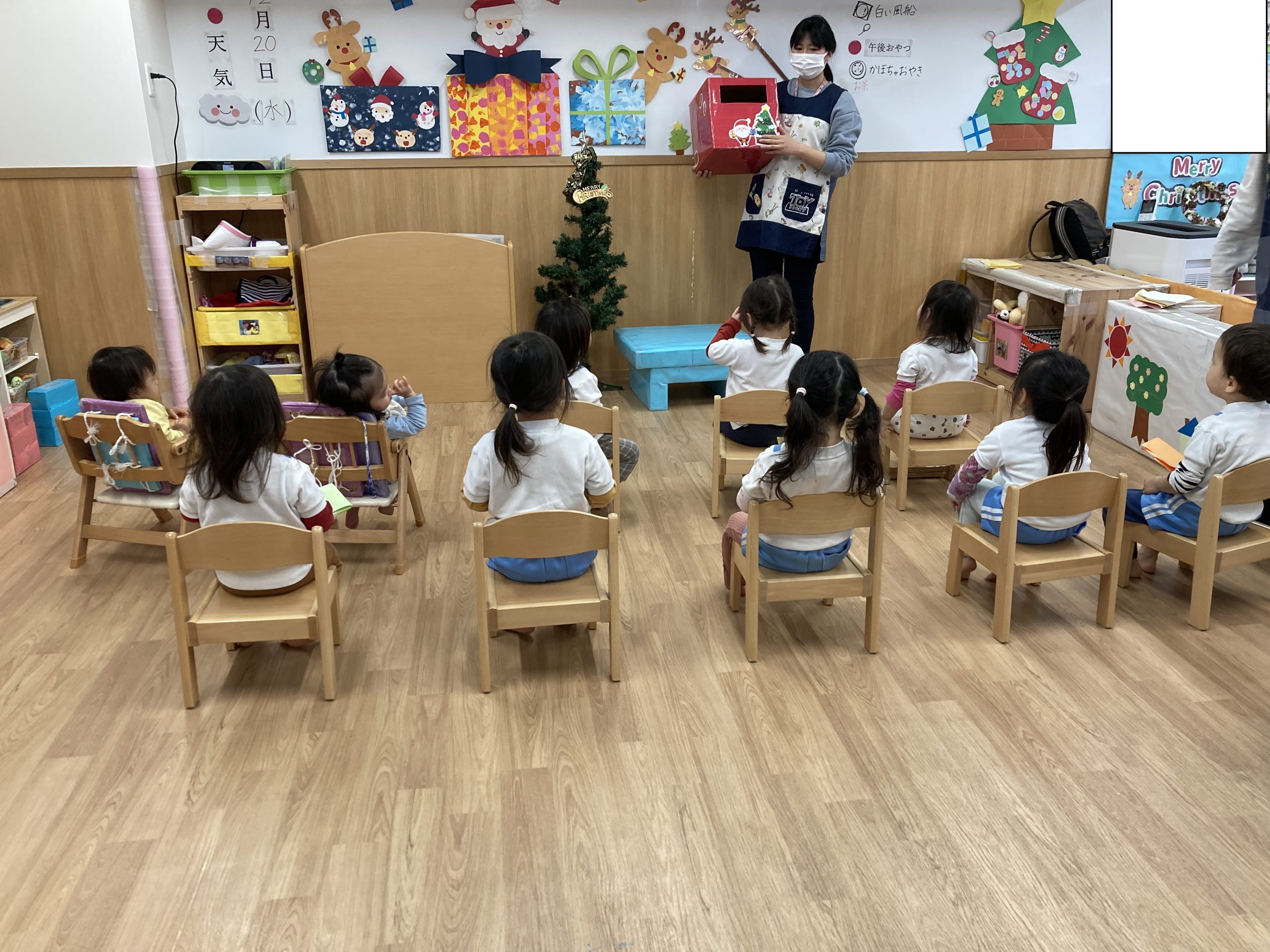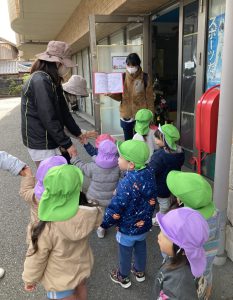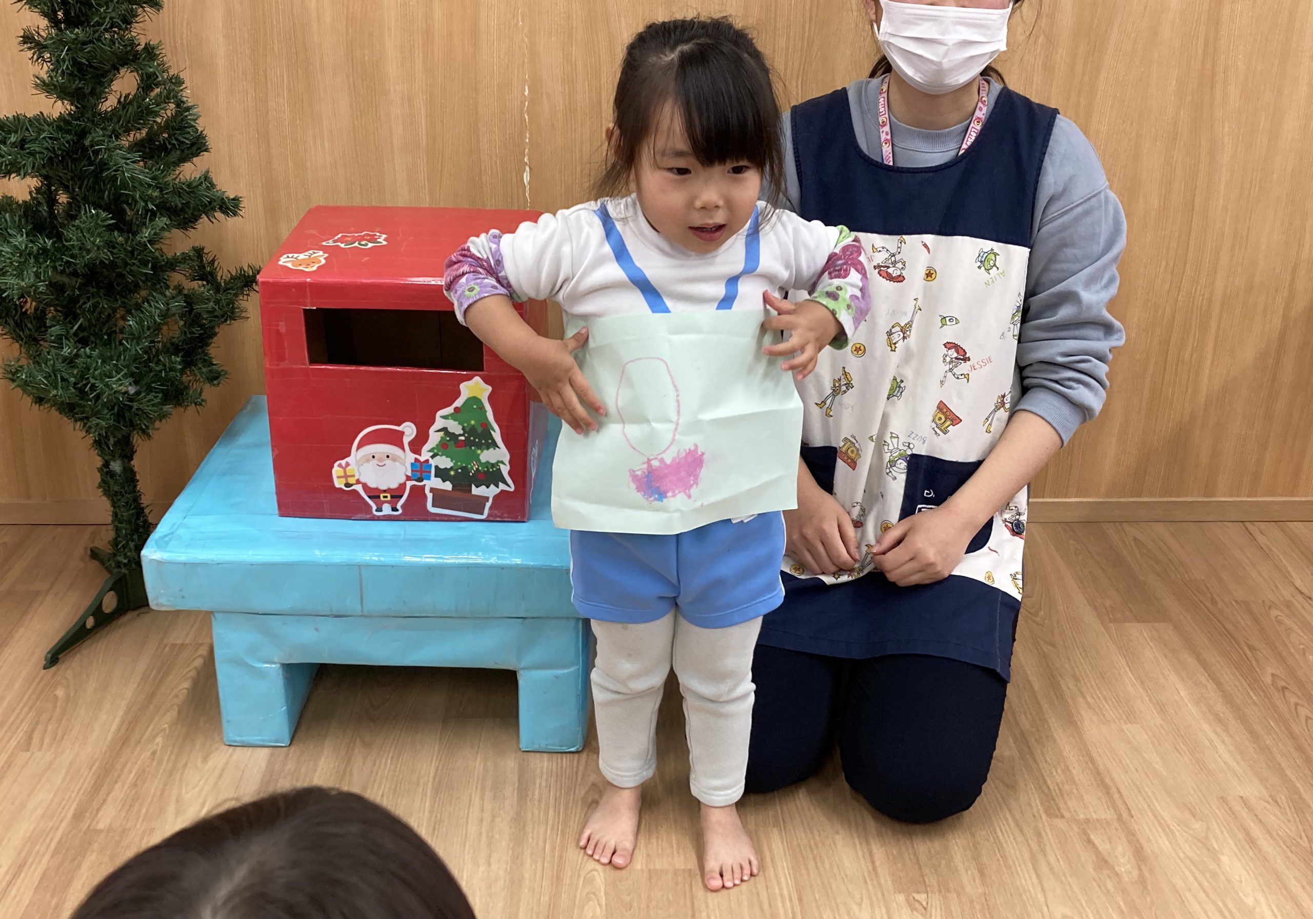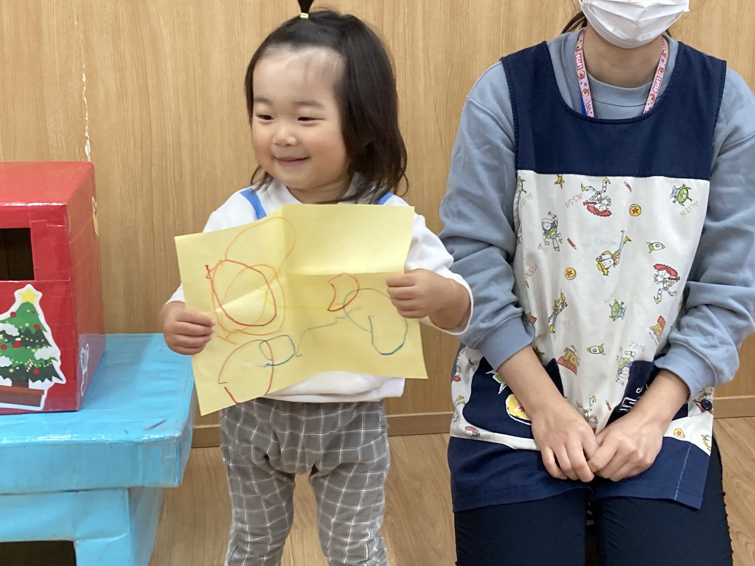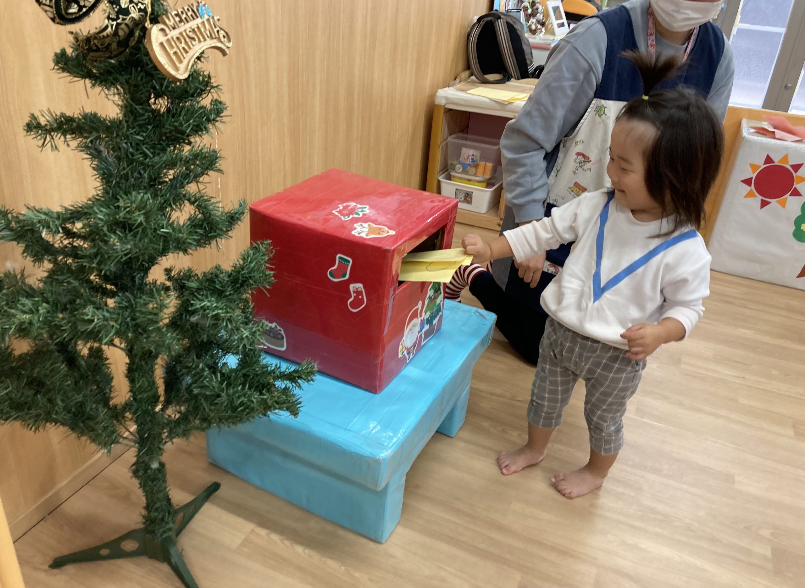 クリスマスに向けて🎶 part12023年12月20日(水) 今日は、クリスマスに向けて準備をしました♬ 「みんなは、どんなプレゼントが欲しいのかな・・?」ってサンタクロースは、困っているかもしれないのでみんなの欲しいプレゼントの絵を描いてポストに入れました♪ ポストに入れよう~♬ そして、散歩から帰ってくるとサンタクロースからお手紙が届いていました🎶 子ども達は、大喜びでした🎶 サンタさん 子ども達のプレゼントをよろしくお願いします。 « クリスマスに向けて♬ part2 お買い物🎵 こぐま組 »