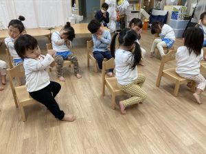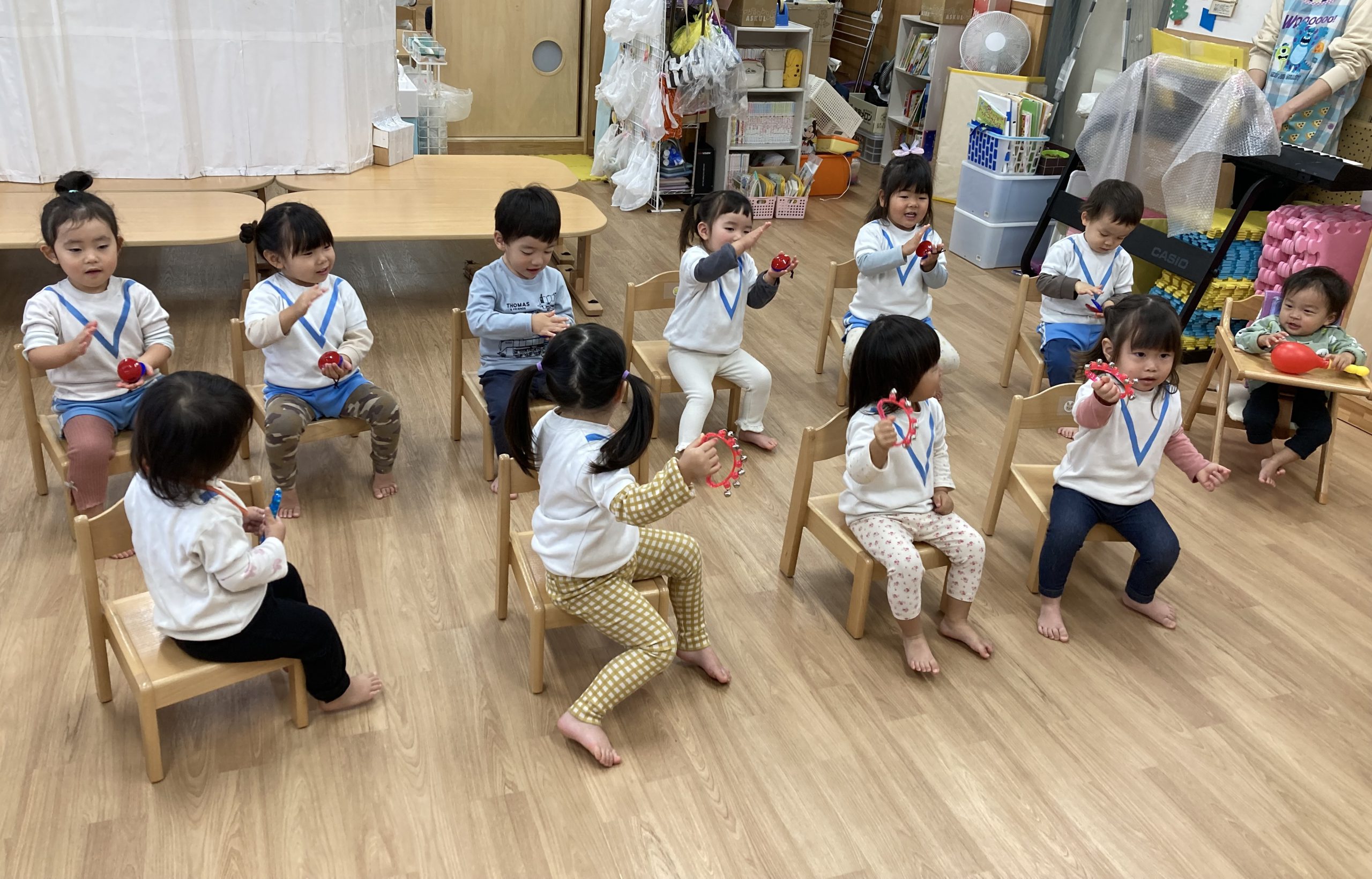 ルンルンで“あわてんぼうのサンタクロース”の曲に合わせてマラカスや鈴、カスタネットを叩いて楽しみました♪