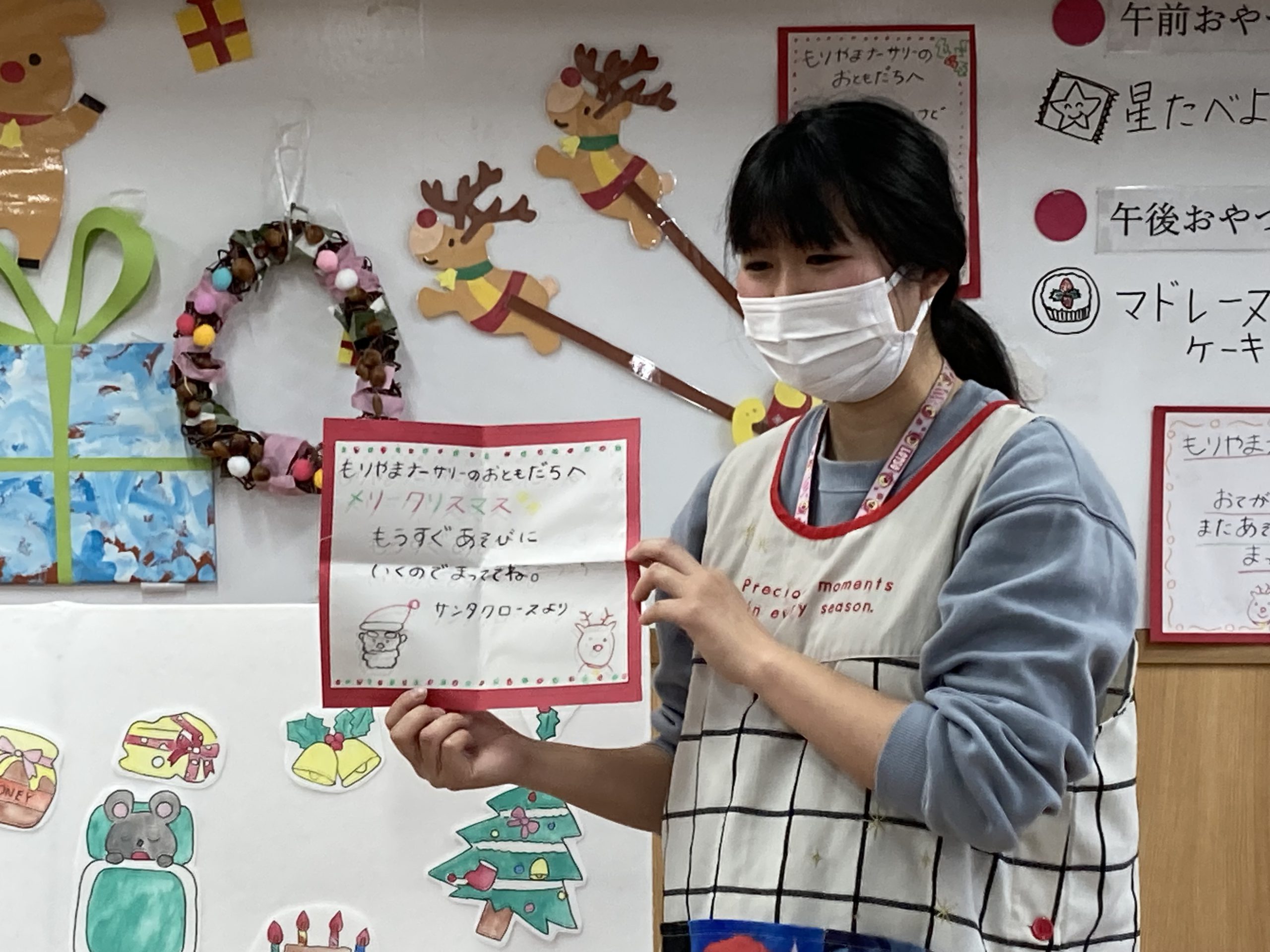 そして、起きると子ども達は、周りを見てサンタさんが居ない事にがっかりしていましたが、サンタさんから手紙が届いていました♪