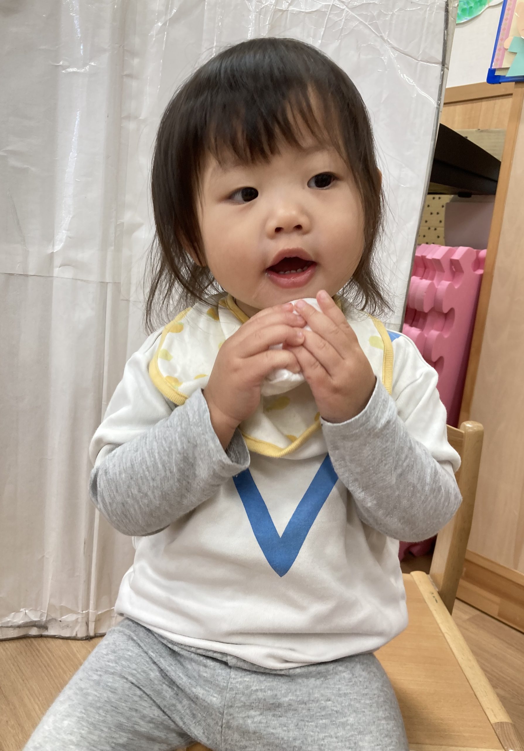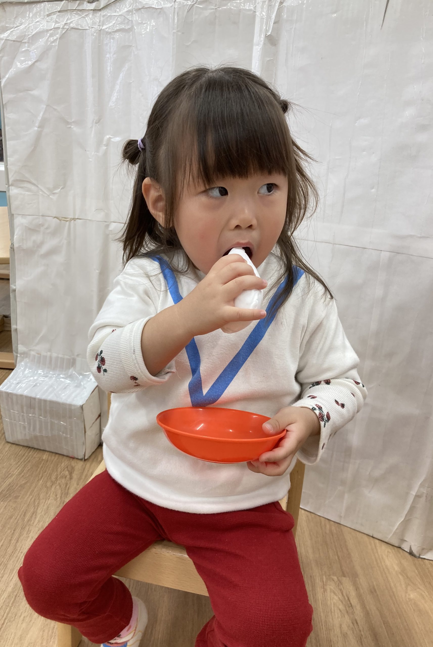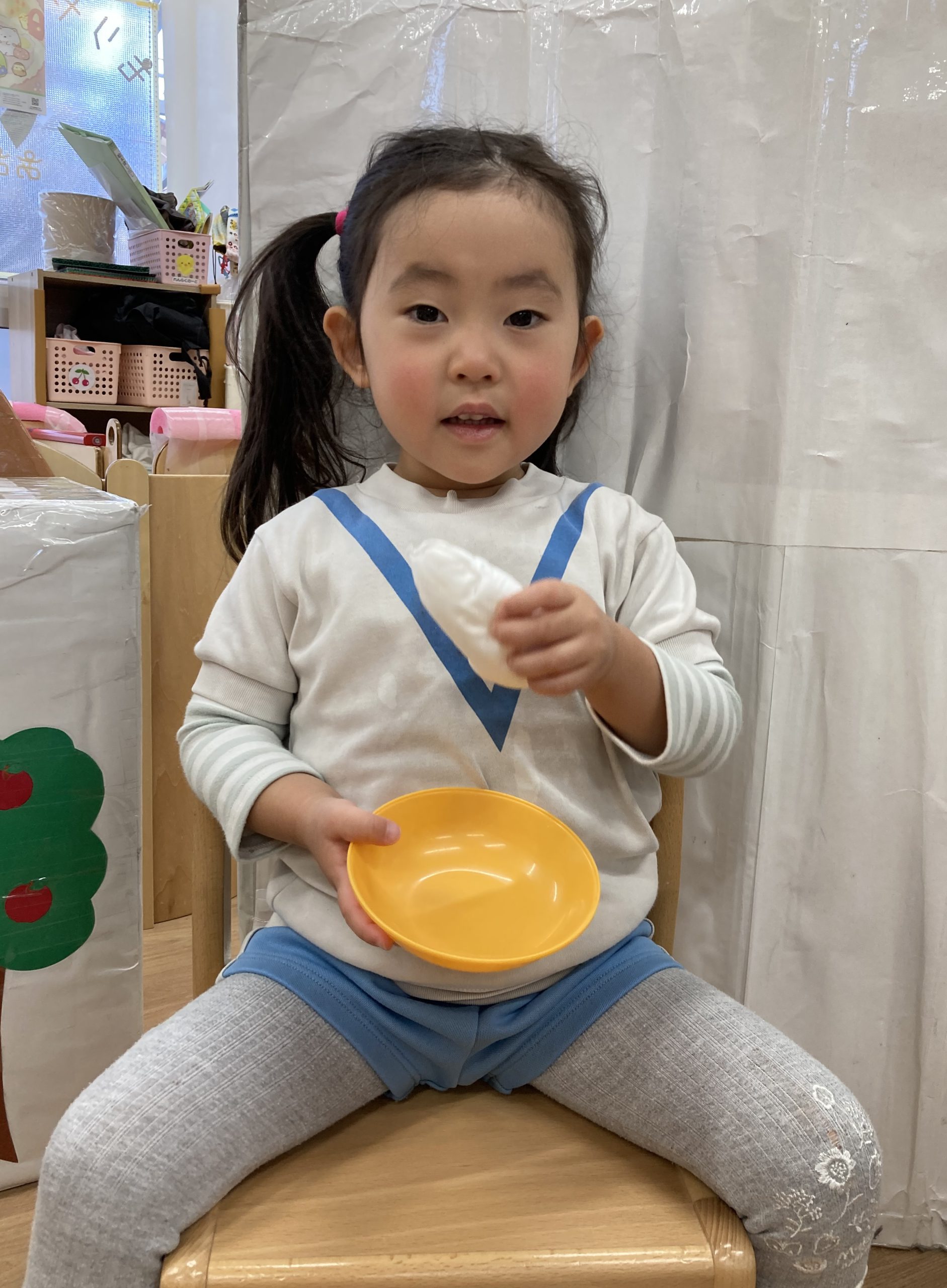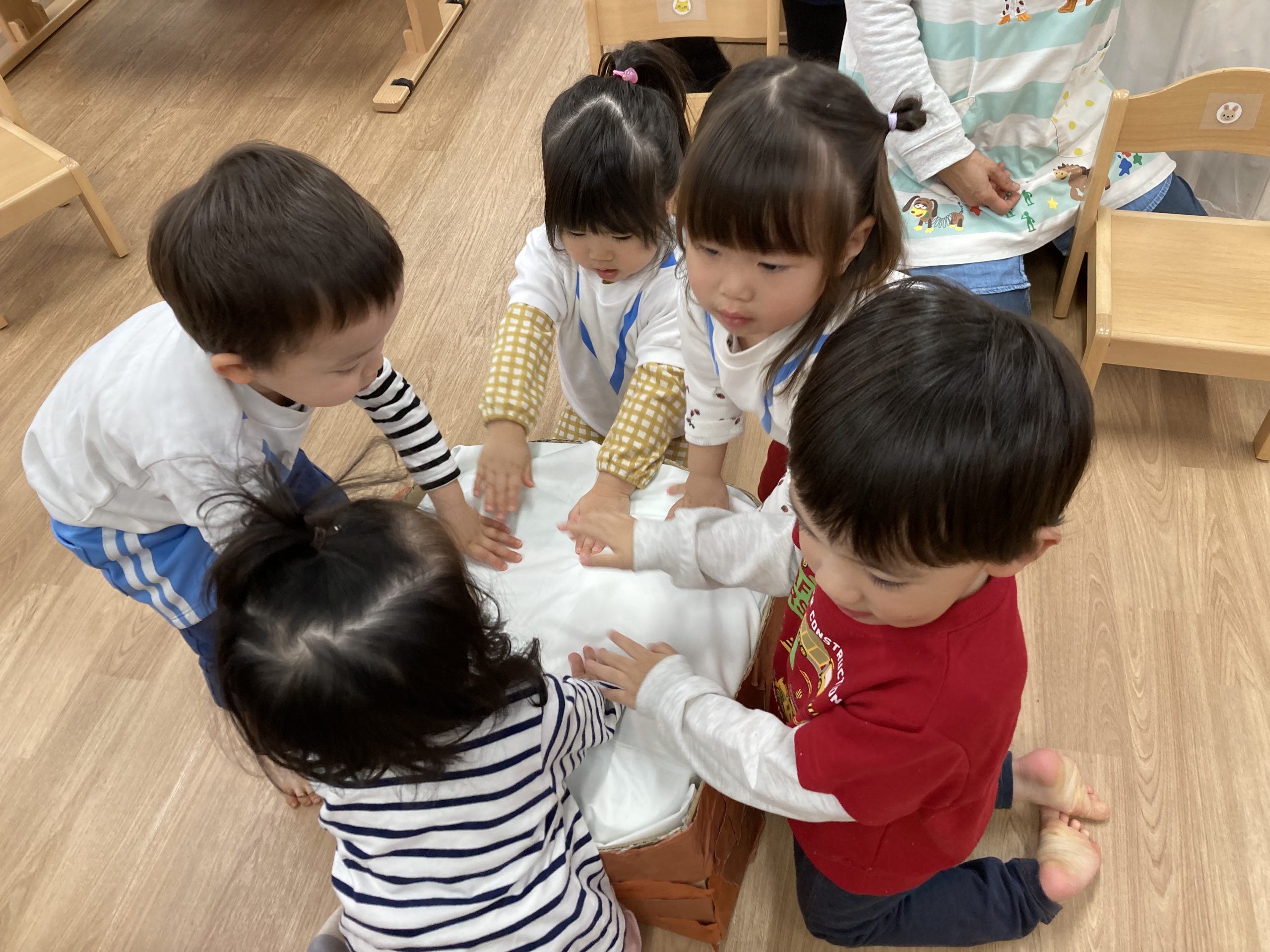 おもちつきごっこ🎶2024年1月9日(火) 新年あけましておめでとうございます。 本年もよろしくお願いいたします。 今日から子ども達も揃い新年がスタートしました🎵 今日は、早速おもちつきごっこを楽しみました🎶 「ぺったんこ それ ぺったんこ~~♪ 」もちつきの歌を歌いながら順番にお餅をついていきました🎵 みんなでついたおもちをこねこね~♬ 美味しいおもちができたかな~ 柔らかいおもちになったかな~ そして、食べてみました🎵 美味しそうに食べる子ども達でした♪ その後、天満宮へ初詣に行きました🎶 今年も健康で笑いの絶えない一年になりますように・・・ « 凧揚げ🎵 Merry Christmas🎅 »