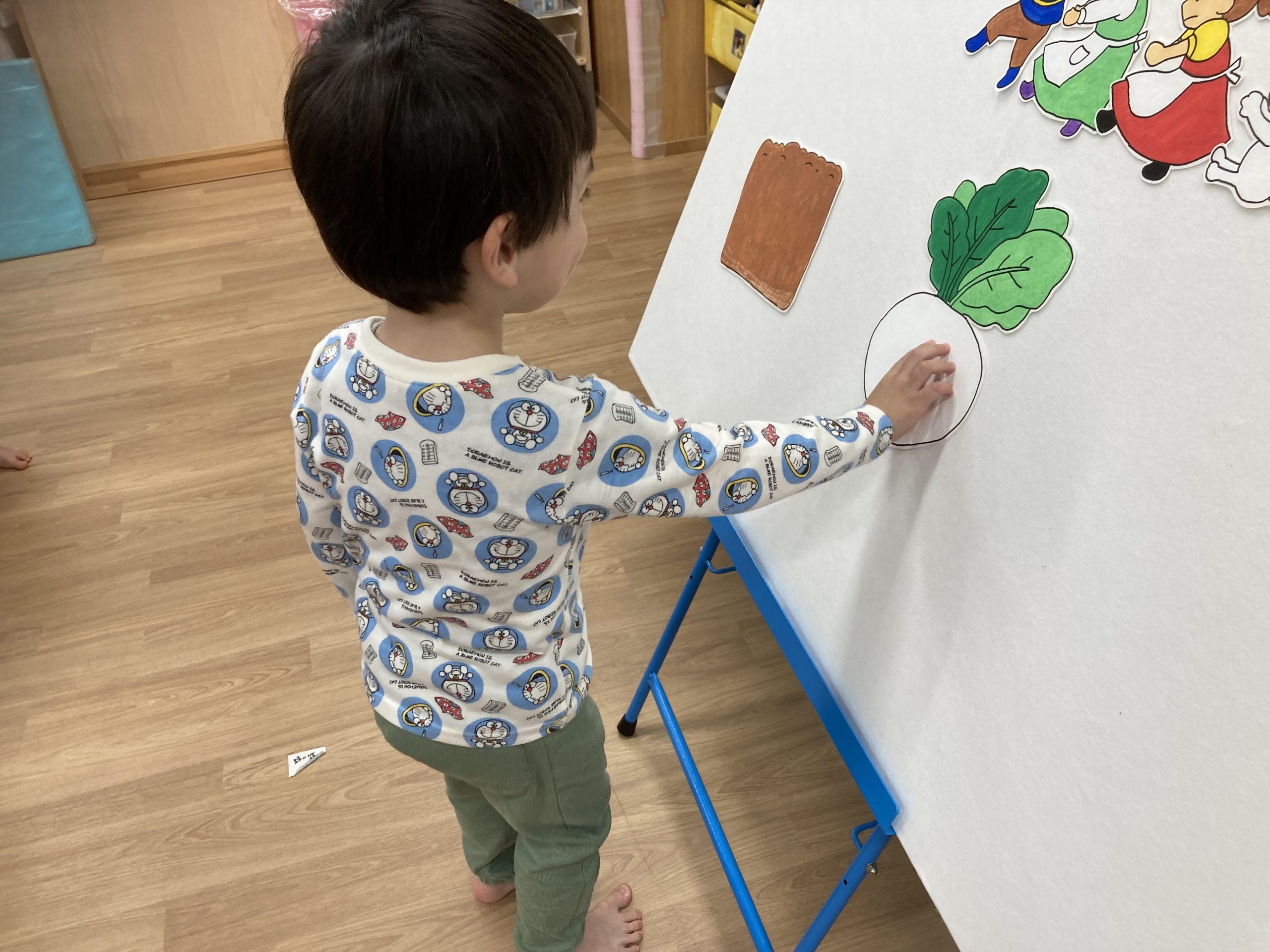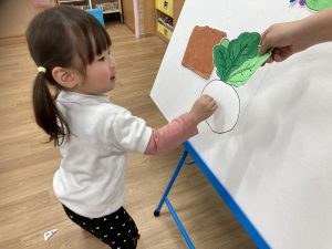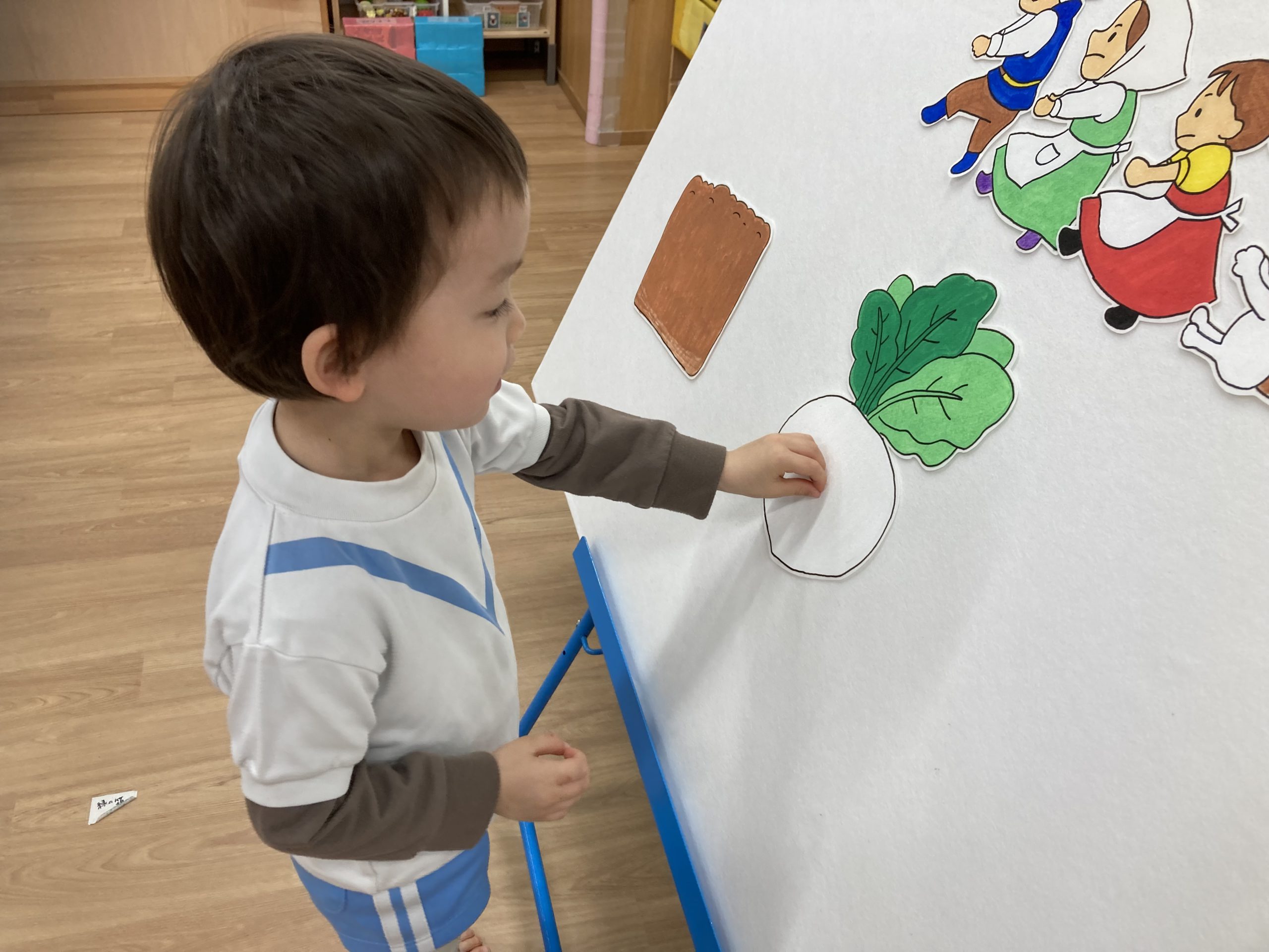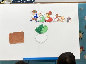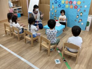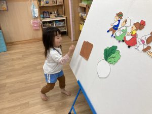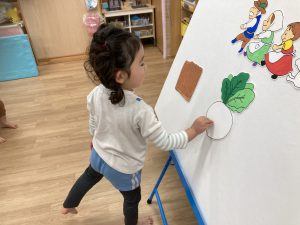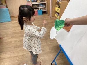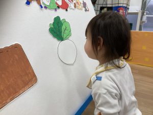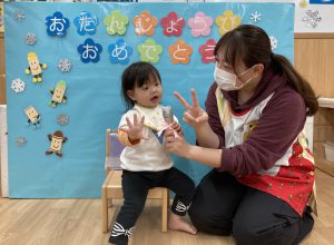 2月の誕生会🎂2024年2月20日(火) 今日は、2月生まれの誕生会でした🎵 誕生児は、1名です 「何歳になりましたか?」の質問に保育者と一緒に2を作ろうとしていました🎶 そして、友達から歌のプレゼントを一緒に歌って楽しんでいました♬ 保育者からの出し物は“大きなかぶ”のパネルシアターでした🎵 みんなで歌を歌いながら一緒にかぶを引っ張ると・・・ かぶがぬけました❕ そして、ぬけたかぶは順番に食べました♪ お誕生日おめでとうございます 素敵な一年になりますように・・・ « 今年度最後の園庭開放♪ 獅子舞🎵 »