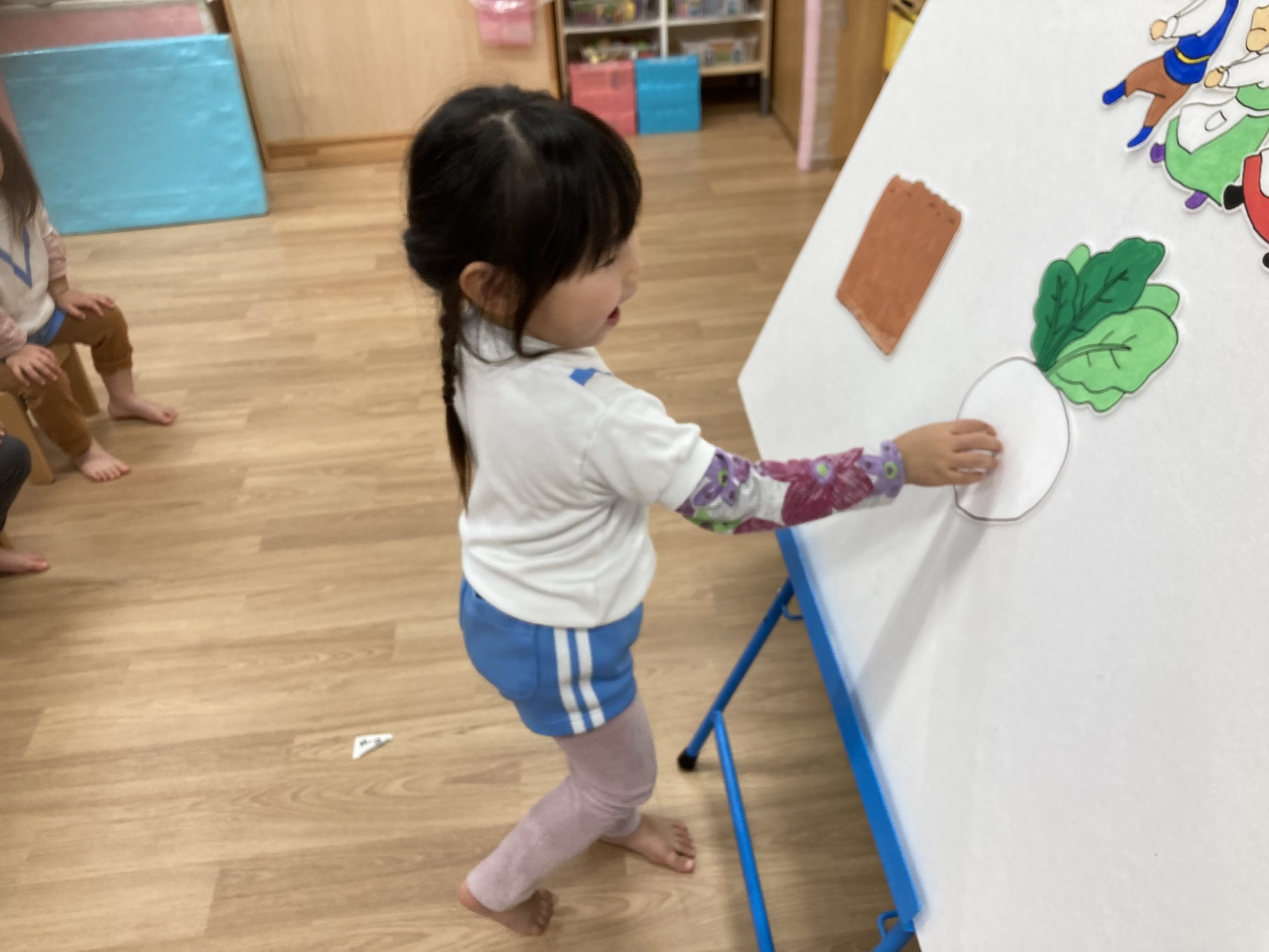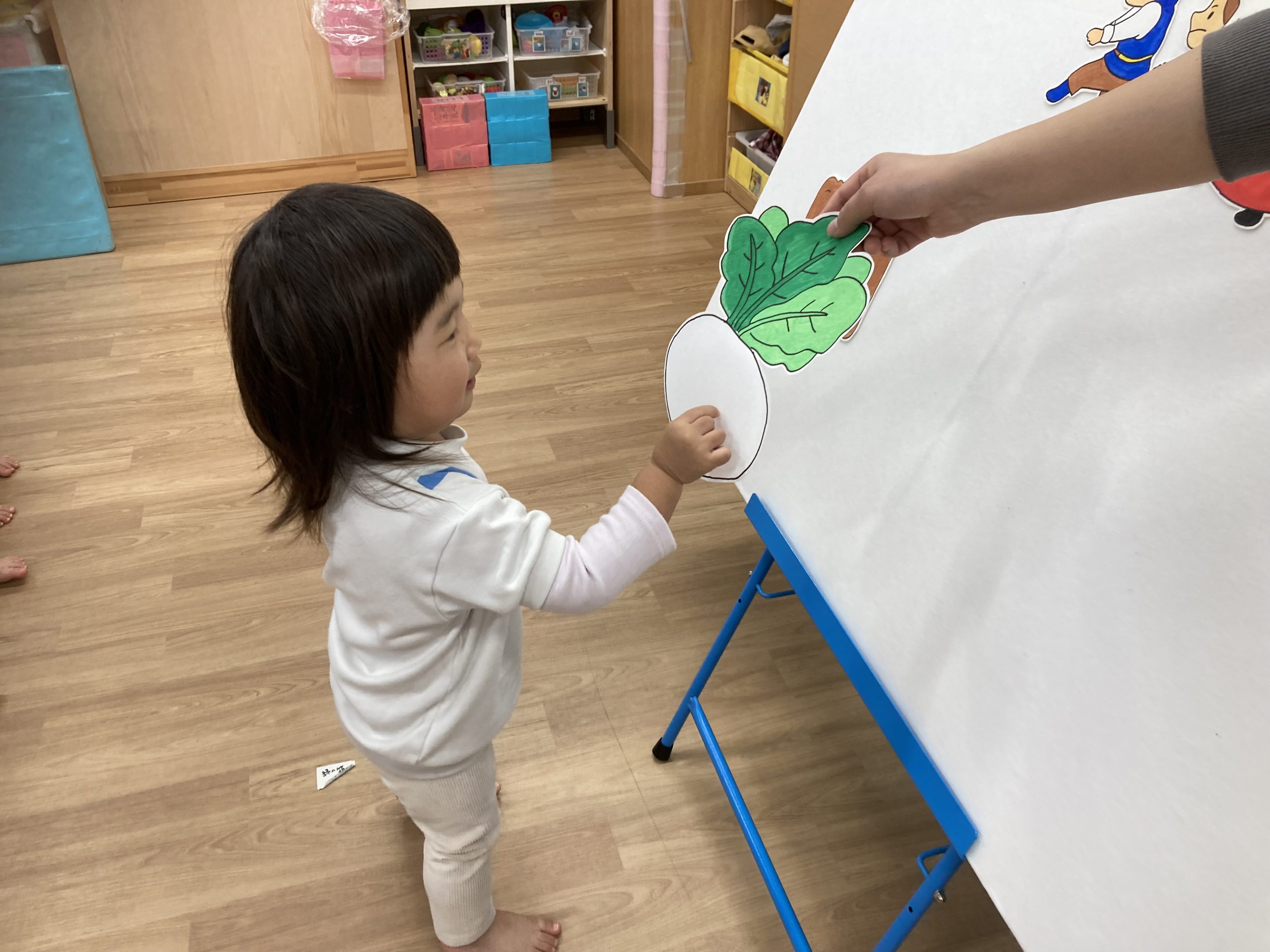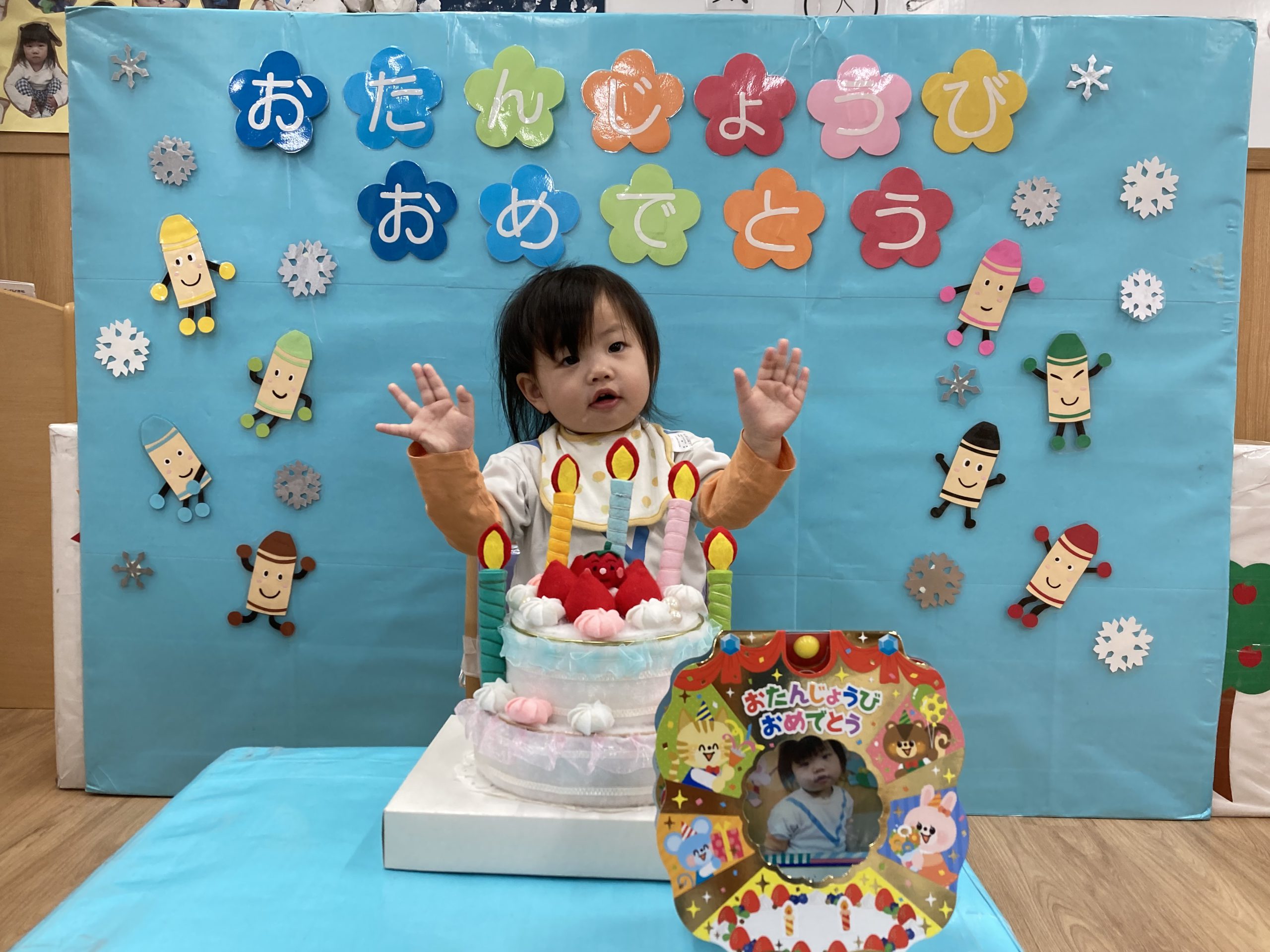 2月の誕生会🎂2024年2月20日(火) 今日は、2月生まれの誕生会でした🎵 誕生児は、1名です 「何歳になりましたか?」の質問に保育者と一緒に2を作ろうとしていました🎶 そして、友達から歌のプレゼントを一緒に歌って楽しんでいました♬ 保育者からの出し物は“大きなかぶ”のパネルシアターでした🎵 みんなで歌を歌いながら一緒にかぶを引っ張ると・・・ かぶがぬけました❕ そして、ぬけたかぶは順番に食べました♪ お誕生日おめでとうございます 素敵な一年になりますように・・・ « 今年度最後の園庭開放♪ 獅子舞🎵 »