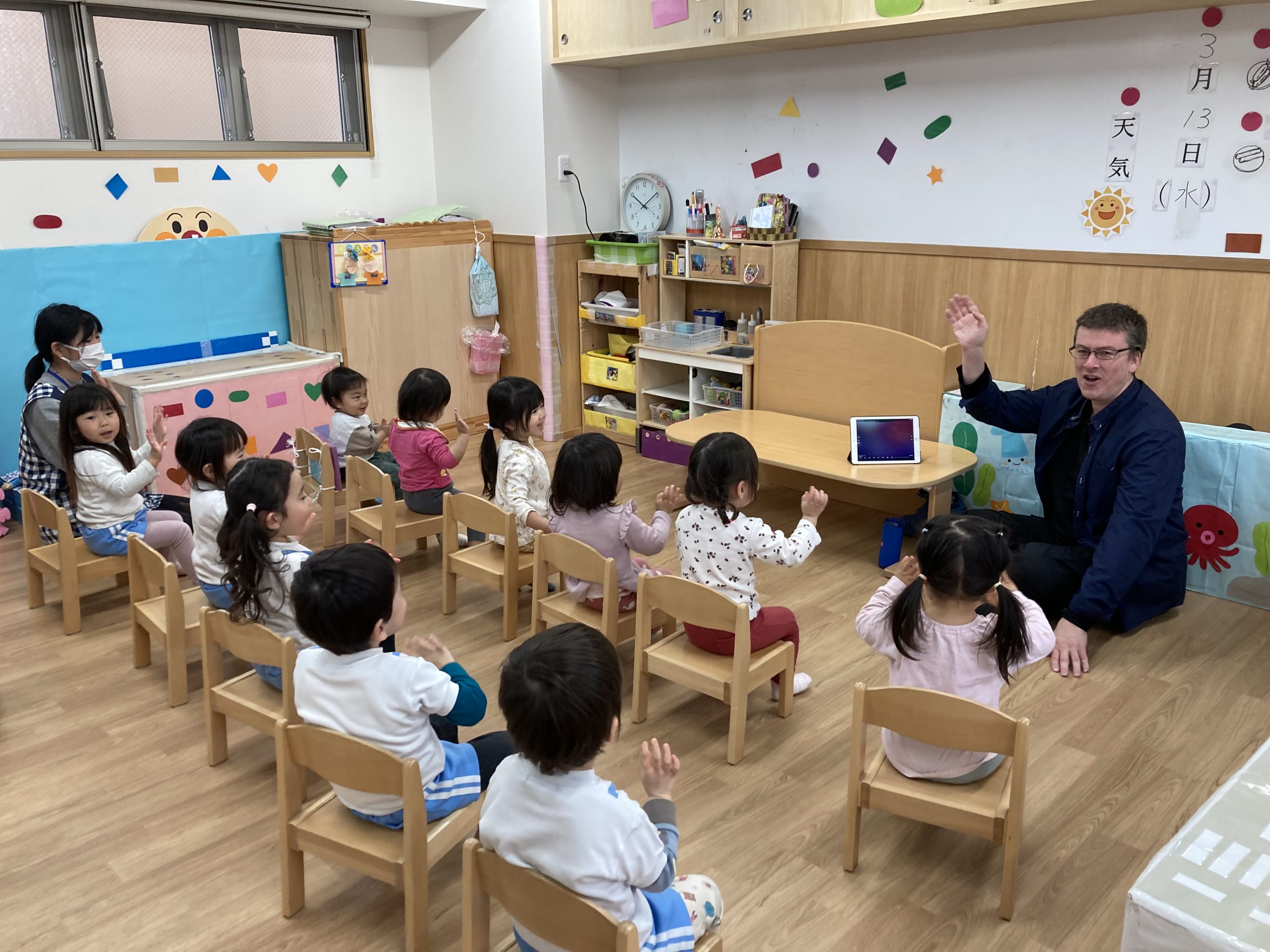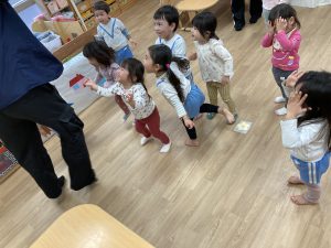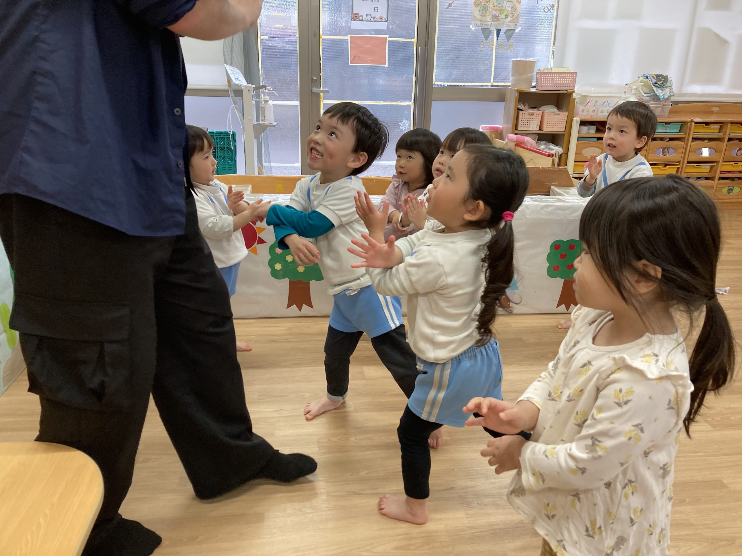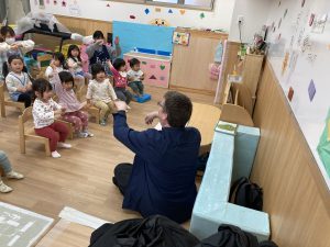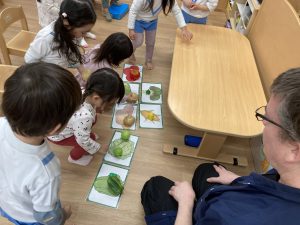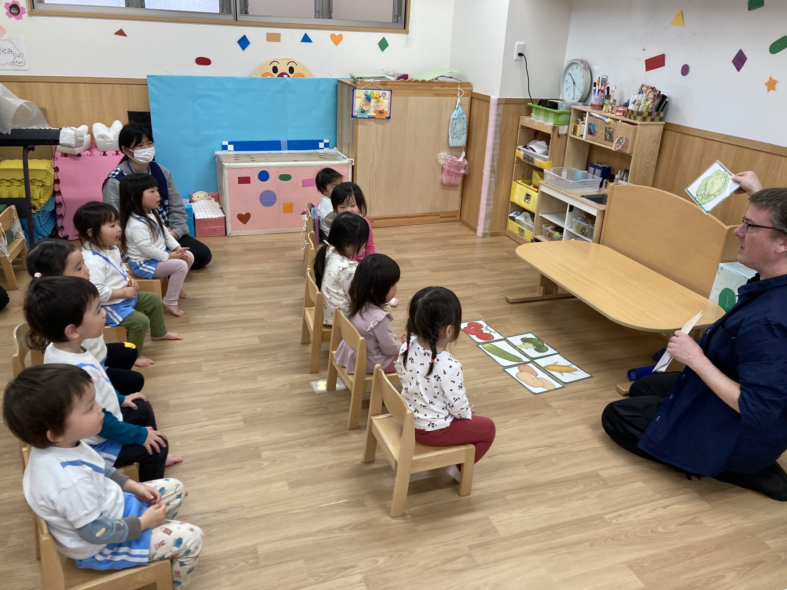 今年度最後の英語あそび🎶2024年3月13日(水) 今日は、今年度最後の英語あそびでした🎵 そして、ダニエル先生は今年度いっぱいです。 さぁ~英語あそびの始まり~♬ 立って体を動かすよ♪ 英語で野菜を言ってみよう❕ 好きな野菜を取りに行くよ♬ 野菜コロコロ~ 最後に写真を撮るよ~ バイバーイ❕ また、来てね🎵 一年間ありがとうございました。 子ども達は、ダニエル先生の英語あそびが大好きでした🎵 « お別れバス遠足🚌 3月の誕生会🎂 »