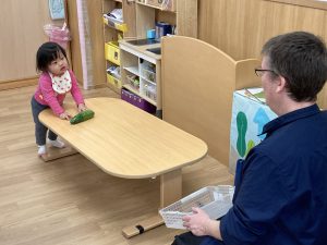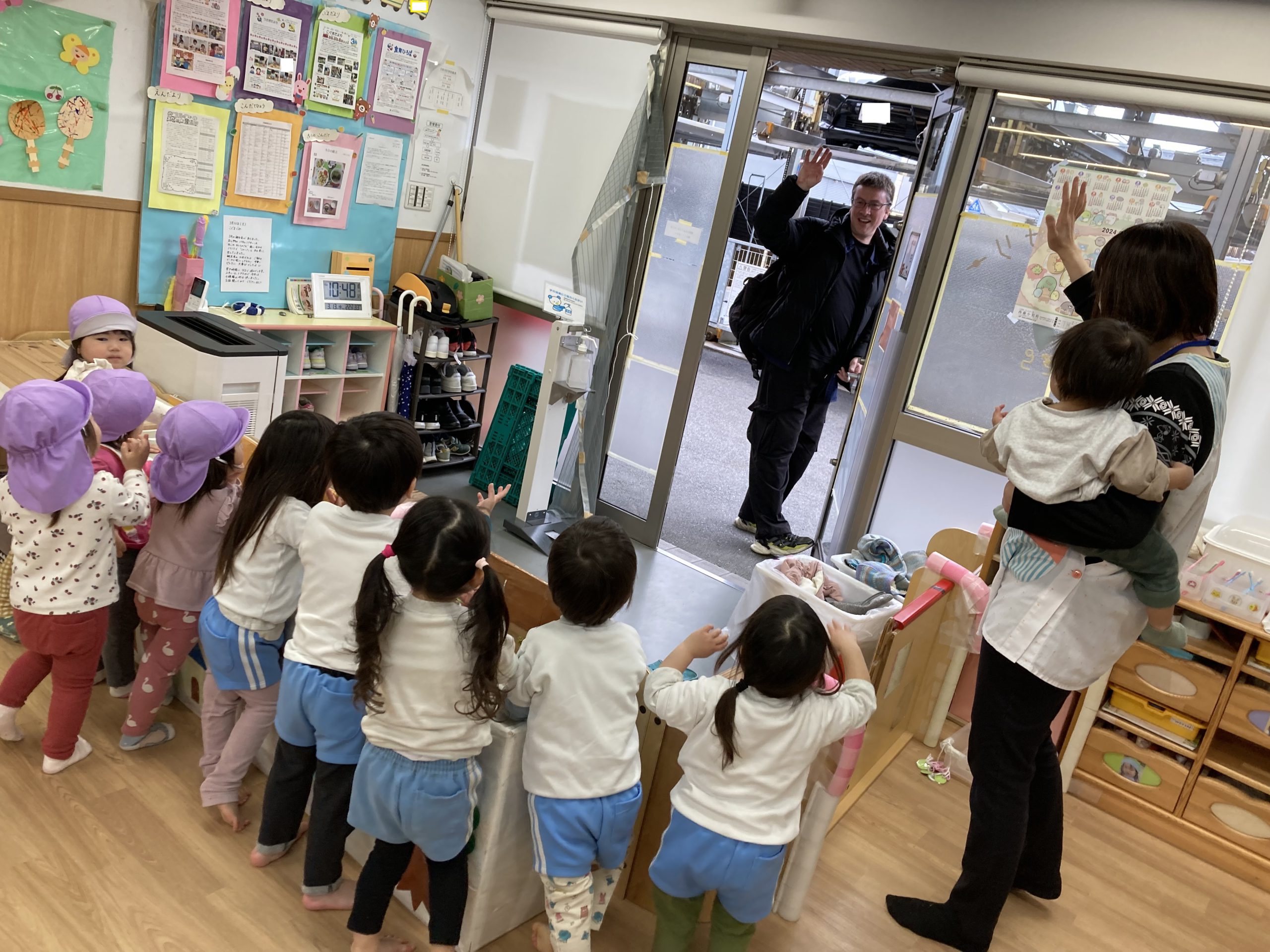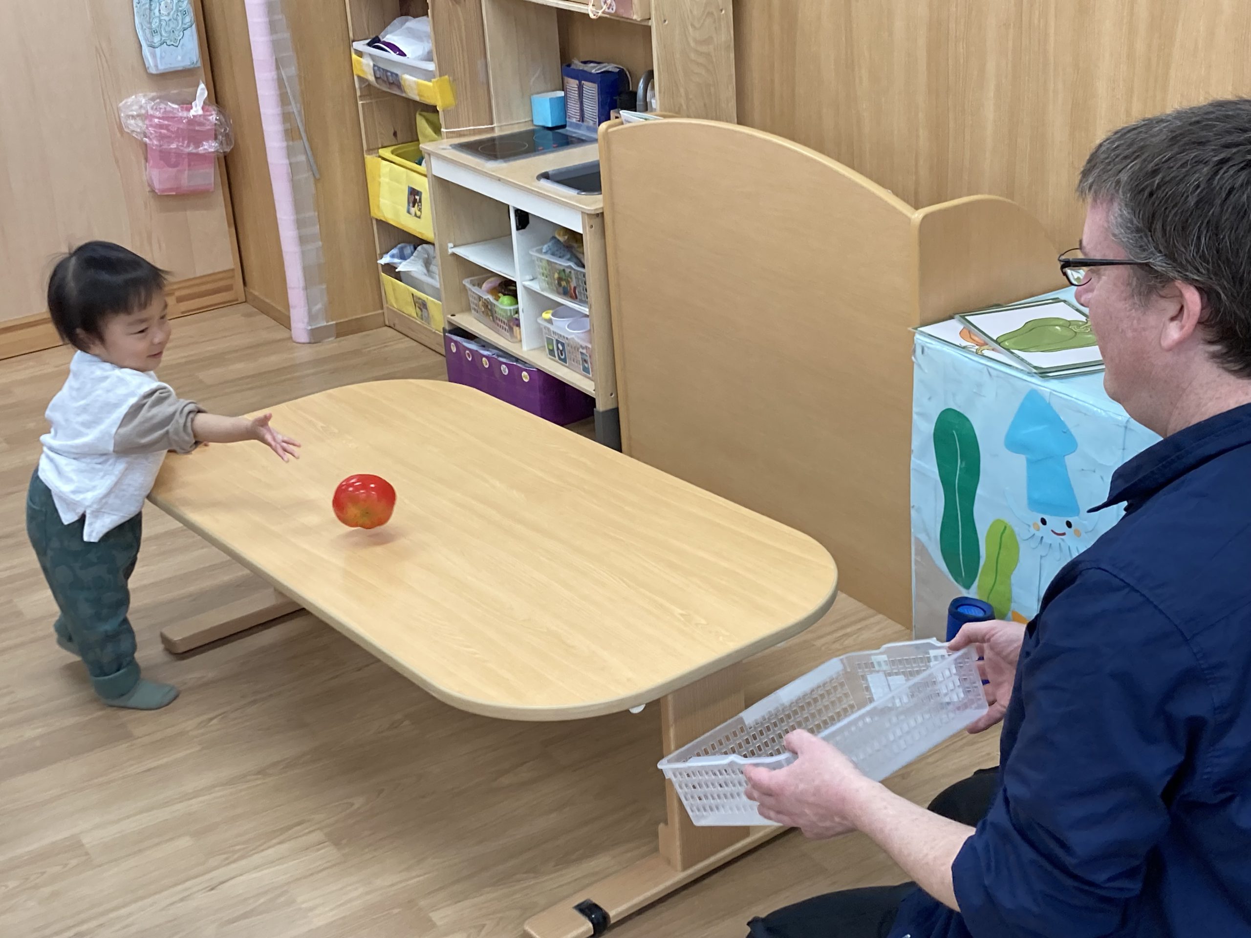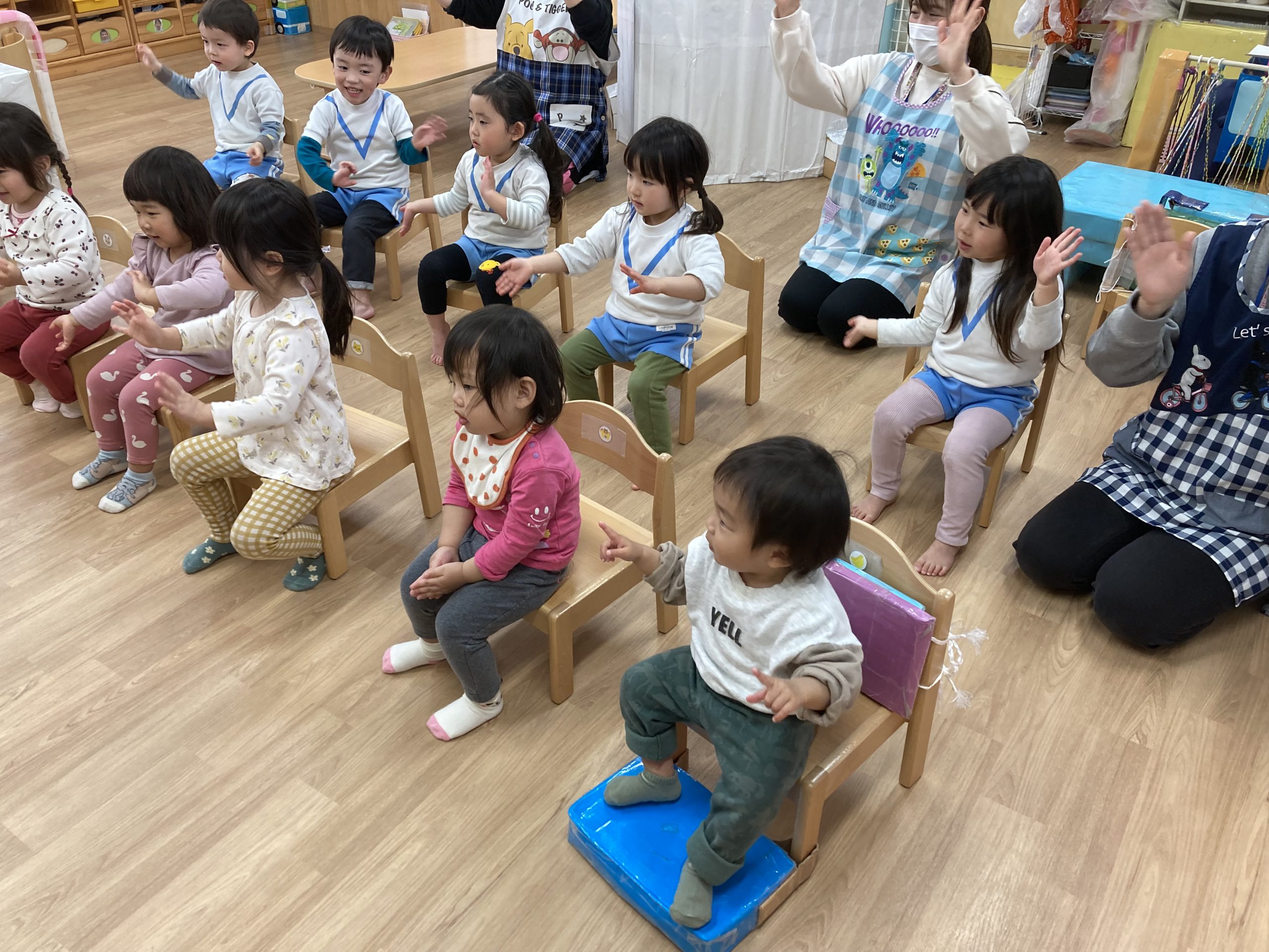 今年度最後の英語あそび🎶2024年3月13日(水) 今日は、今年度最後の英語あそびでした🎵 そして、ダニエル先生は今年度いっぱいです。 さぁ~英語あそびの始まり~♬ 立って体を動かすよ♪ 英語で野菜を言ってみよう❕ 好きな野菜を取りに行くよ♬ 野菜コロコロ~ 最後に写真を撮るよ~ バイバーイ❕ また、来てね🎵 一年間ありがとうございました。 子ども達は、ダニエル先生の英語あそびが大好きでした🎵 « お別れバス遠足🚌 3月の誕生会🎂 »