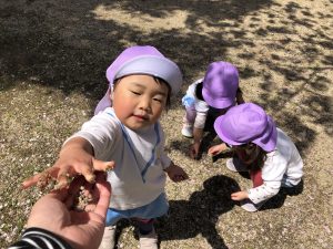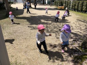 下井田公園へ行ったよ🎶2024年4月10日(水) 今日は、みんな一緒に下井田公園へ行きました🎶 下井田公園へ着いたよ~♪ 「桜がきれいに咲いてるね~♪」と保育者が伝えると子ども達は、桜を見ていましたが・・・・ お花見は一瞬で終わり、子ども達は遊ぶ事に夢中でした❕ 追いかけっこに、お絵描き、桜の花びら探し、石拾い等色んな遊びを楽しんでいました♬ 楽しかったね🎶また行こうね♪ これから色んな公園でたくさん遊ぼうね♬ « 4月の誕生会🎂 令和6年度 ㊗入園式 »