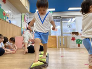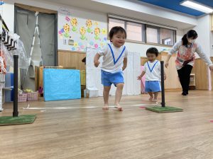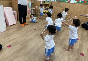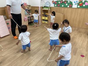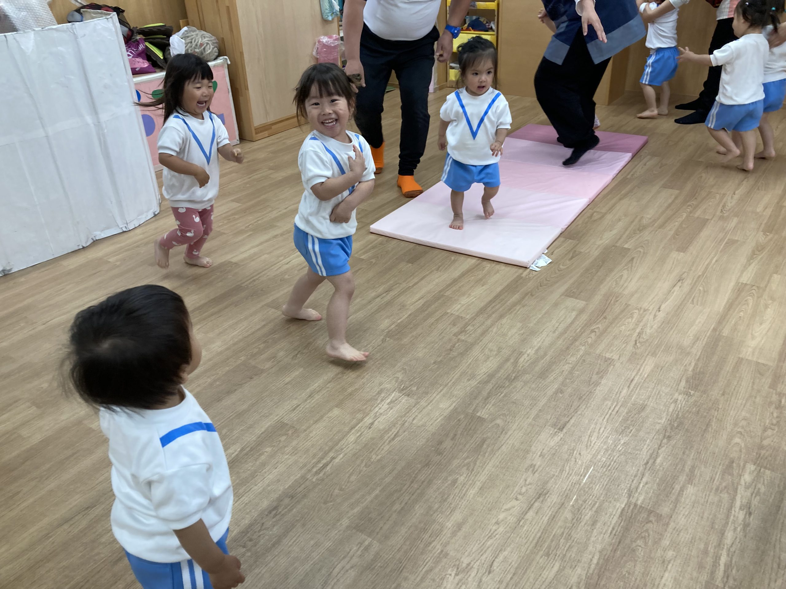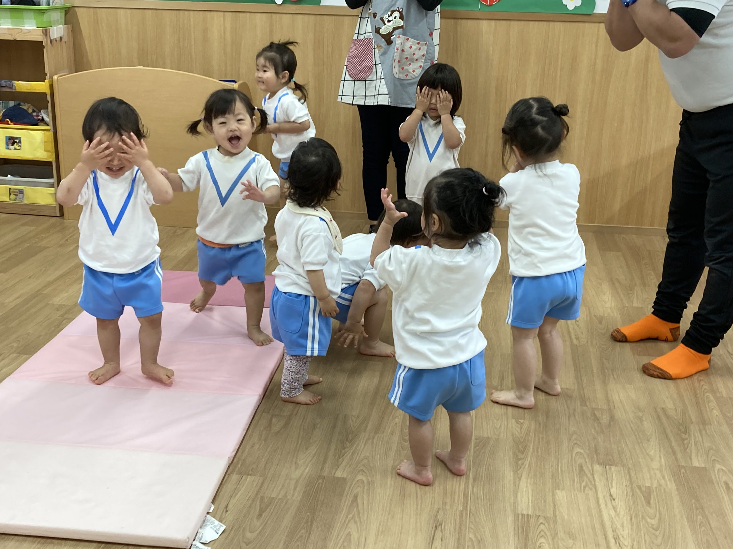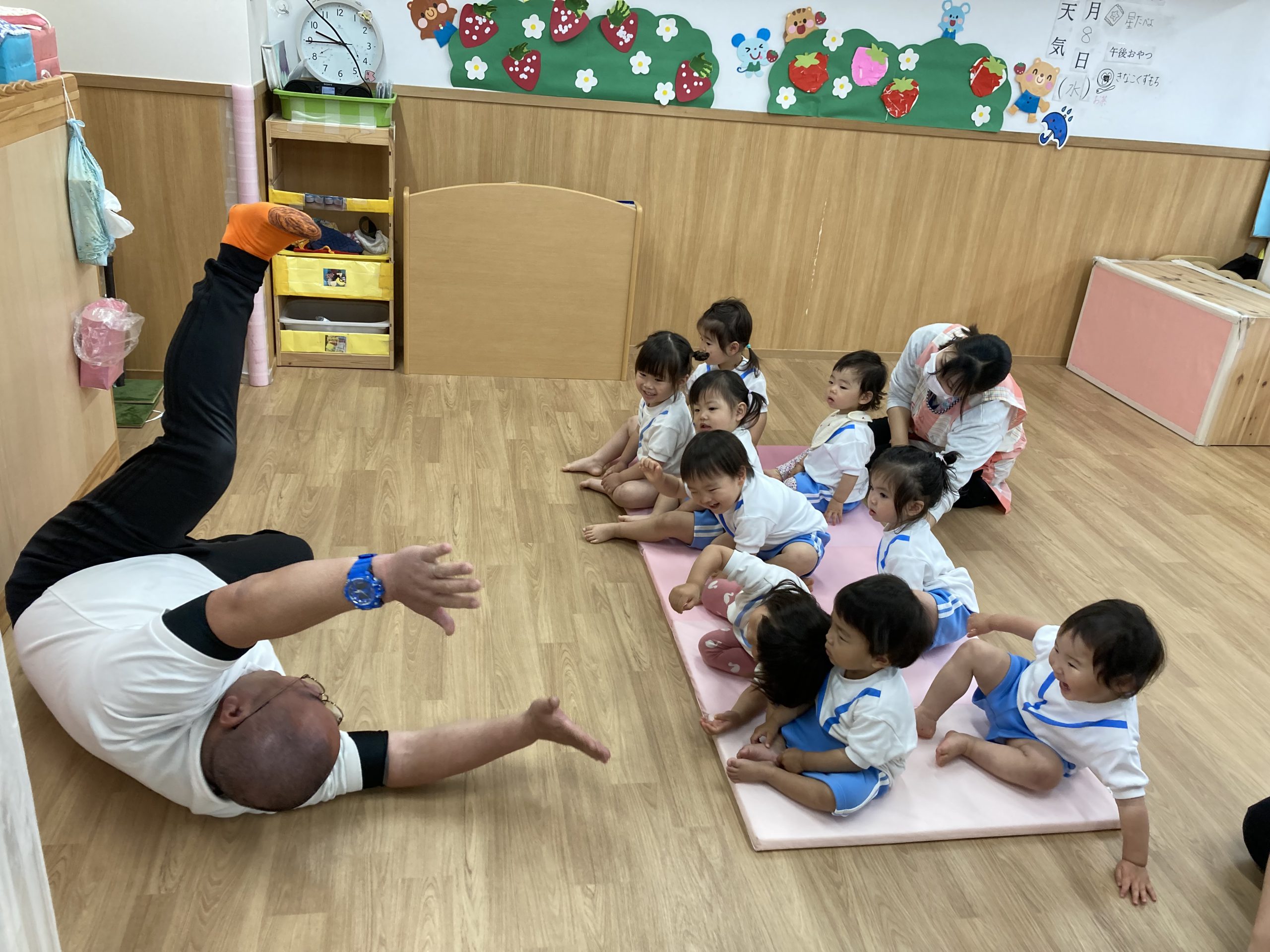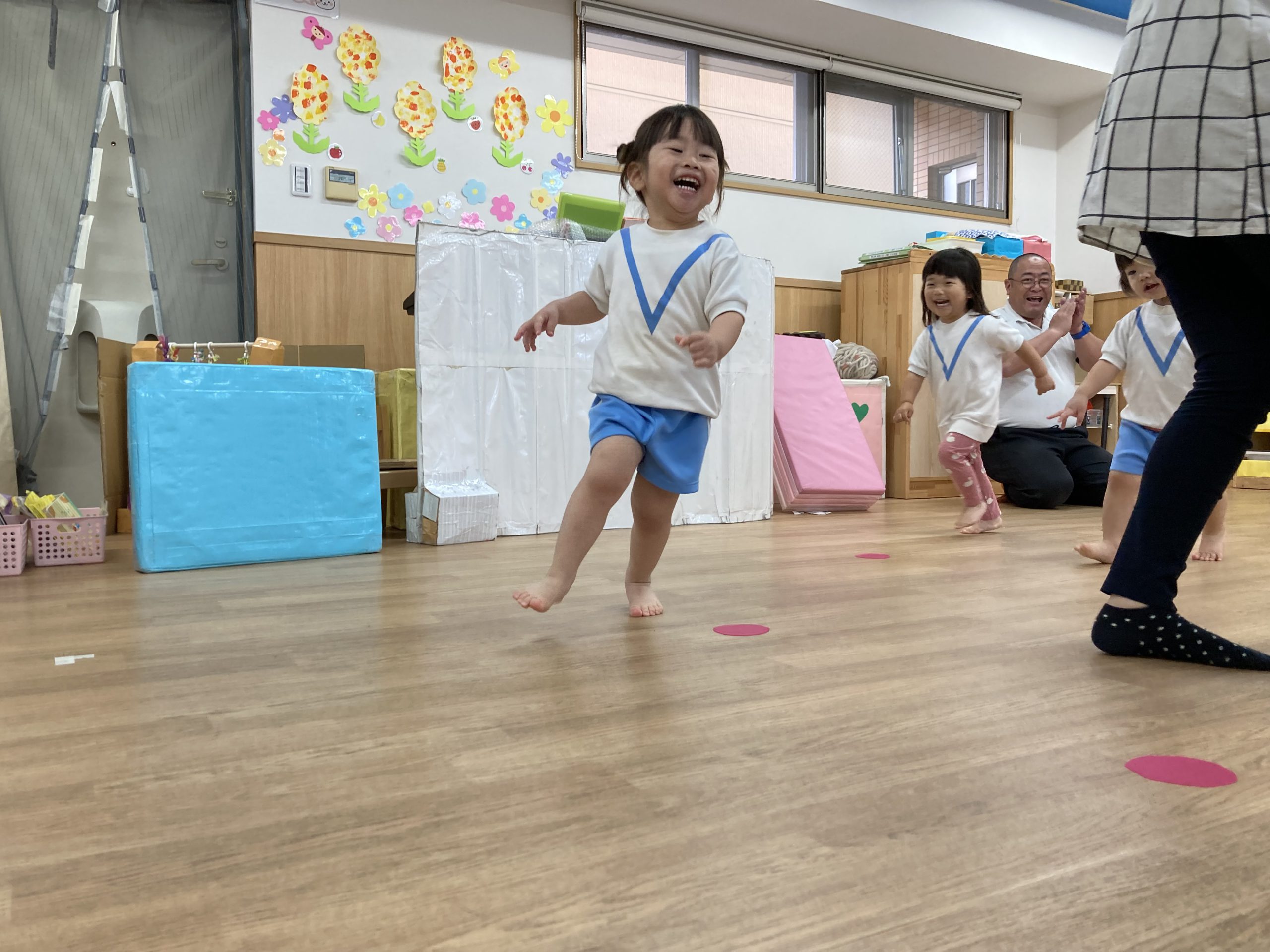 今年度初めての体操教室🎵2024年5月8日(水) 今日は、今年度初めての体操教室がありました🎶 初めは“だいじょうぶ?ズコッ”の手遊びを楽しみました♬ 体操の梶谷先生を見てみんなもズコッ❕ 体操教室の始まり~🎶 まずは体操♪ 次は、体を動かすよ~♬ たくさん体を動かしました♪ 体操教室楽しかったね🎵 « おおきくな~れ🎵 楽しかったね🎵 »