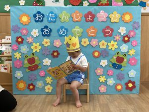 保育者から誕生カードを渡してもらうと、とても嬉しそう🎵