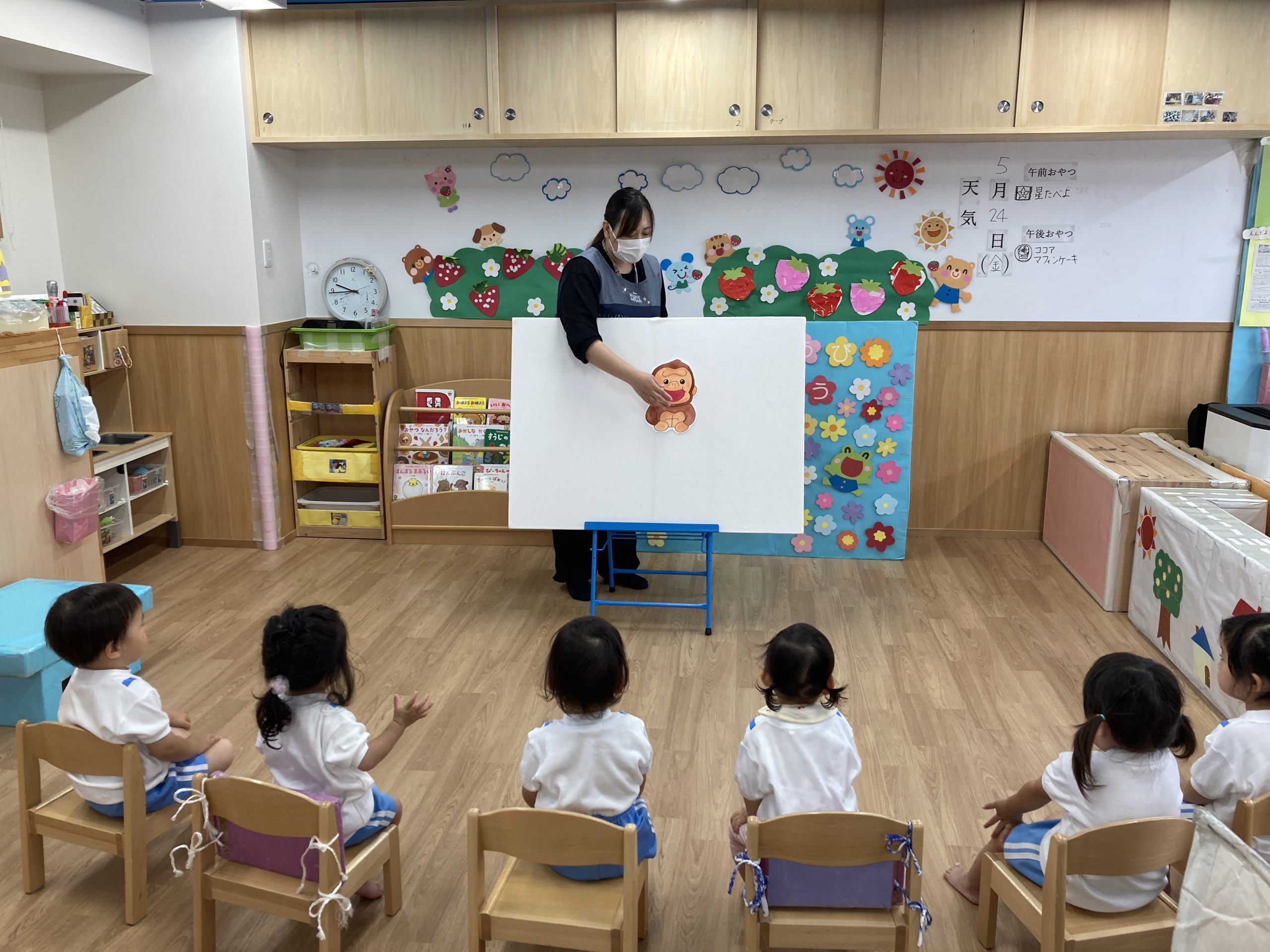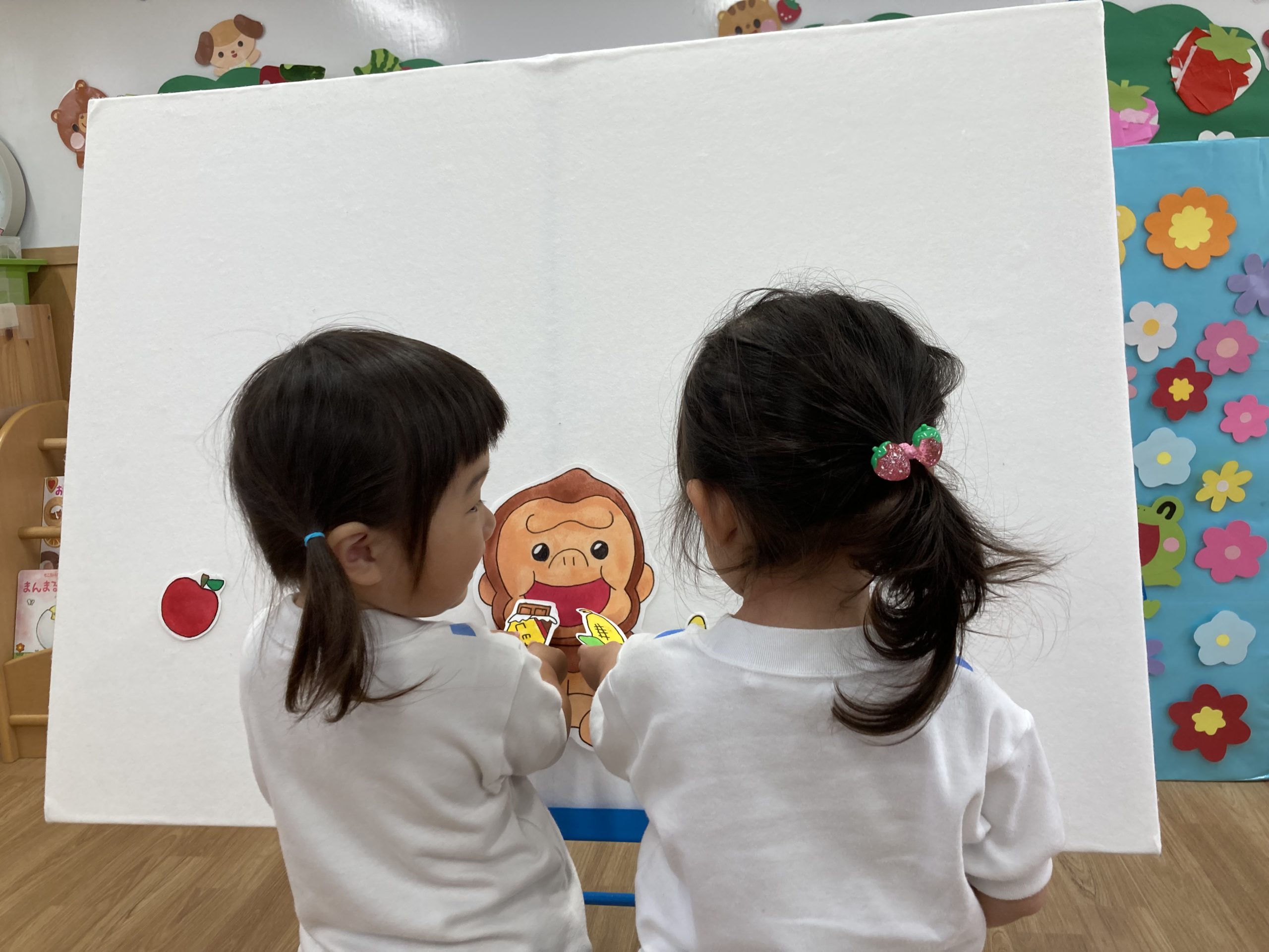 保育者からの出し物は“くいしんぼうゴリラ”のパネルシアターでした🎵
