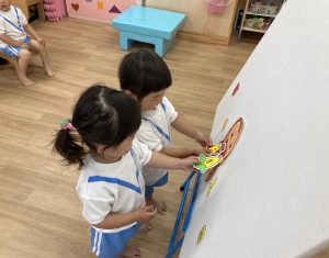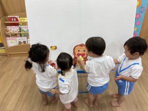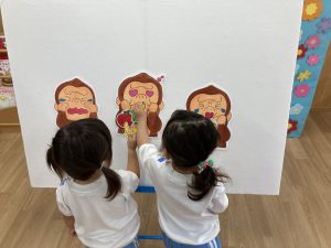 パネルシアターが終わると、くいしんぼうゴリラに食べさせてあげました❕