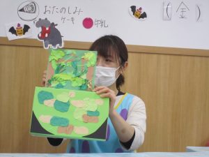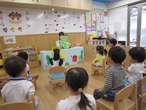 誕生会2020年10月30日(金) 今日は10月生まれの誕生会がありました。 誕生児は1人です! 保育者からの出し物は「誕生日シアター」のペープサート 次の出し物は「ジャングルポケット」のペープサート 動物が出てくると子ども達は「カバ」「うさぎ」など動物の名前を言って喜んでいました! 楽しい誕生会でした! お誕生日おめでとう♪ « 消防車がきたよ! ハロウィンpart2 英語バージョン »