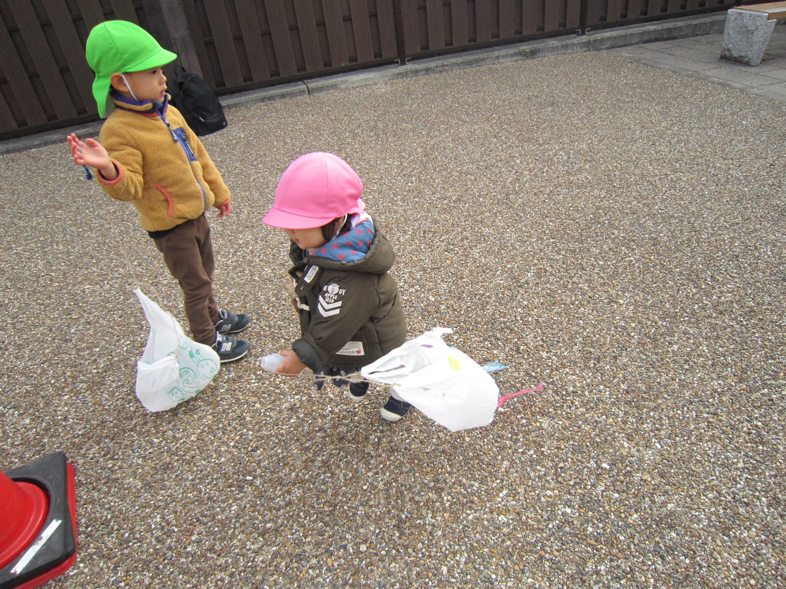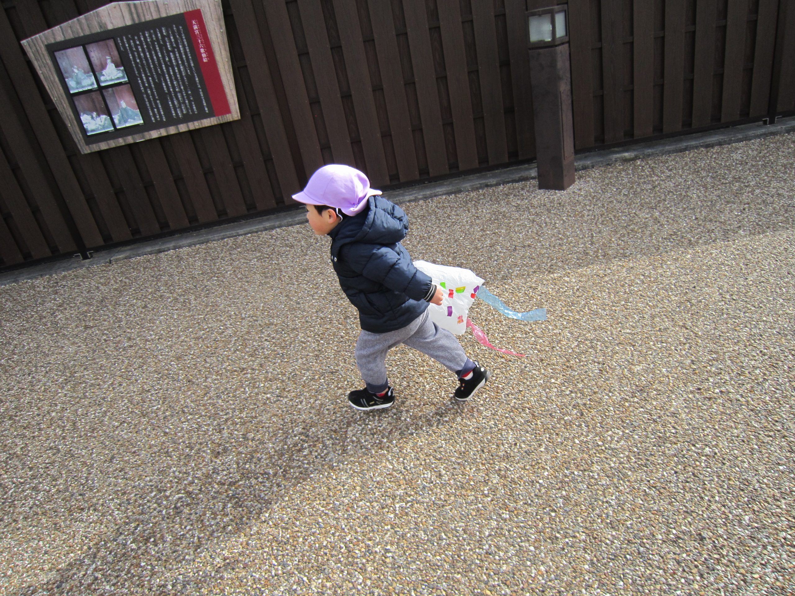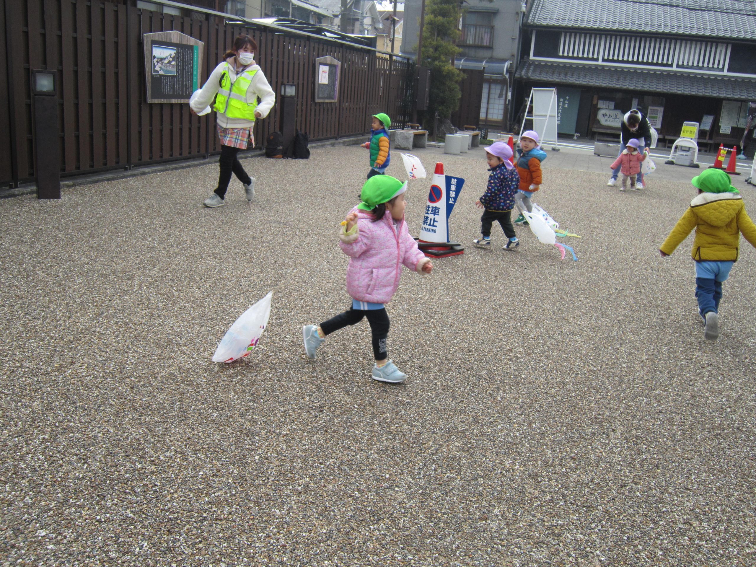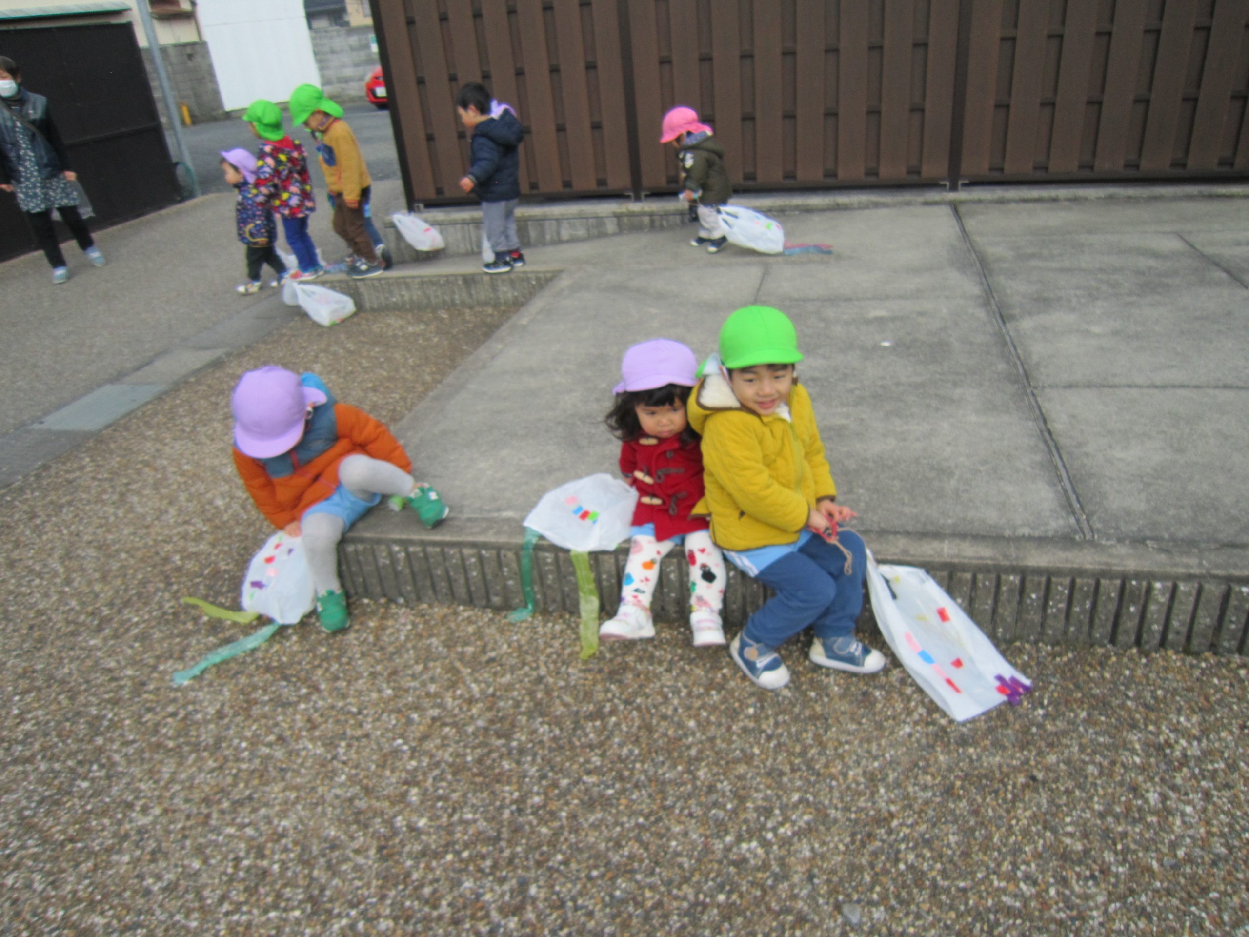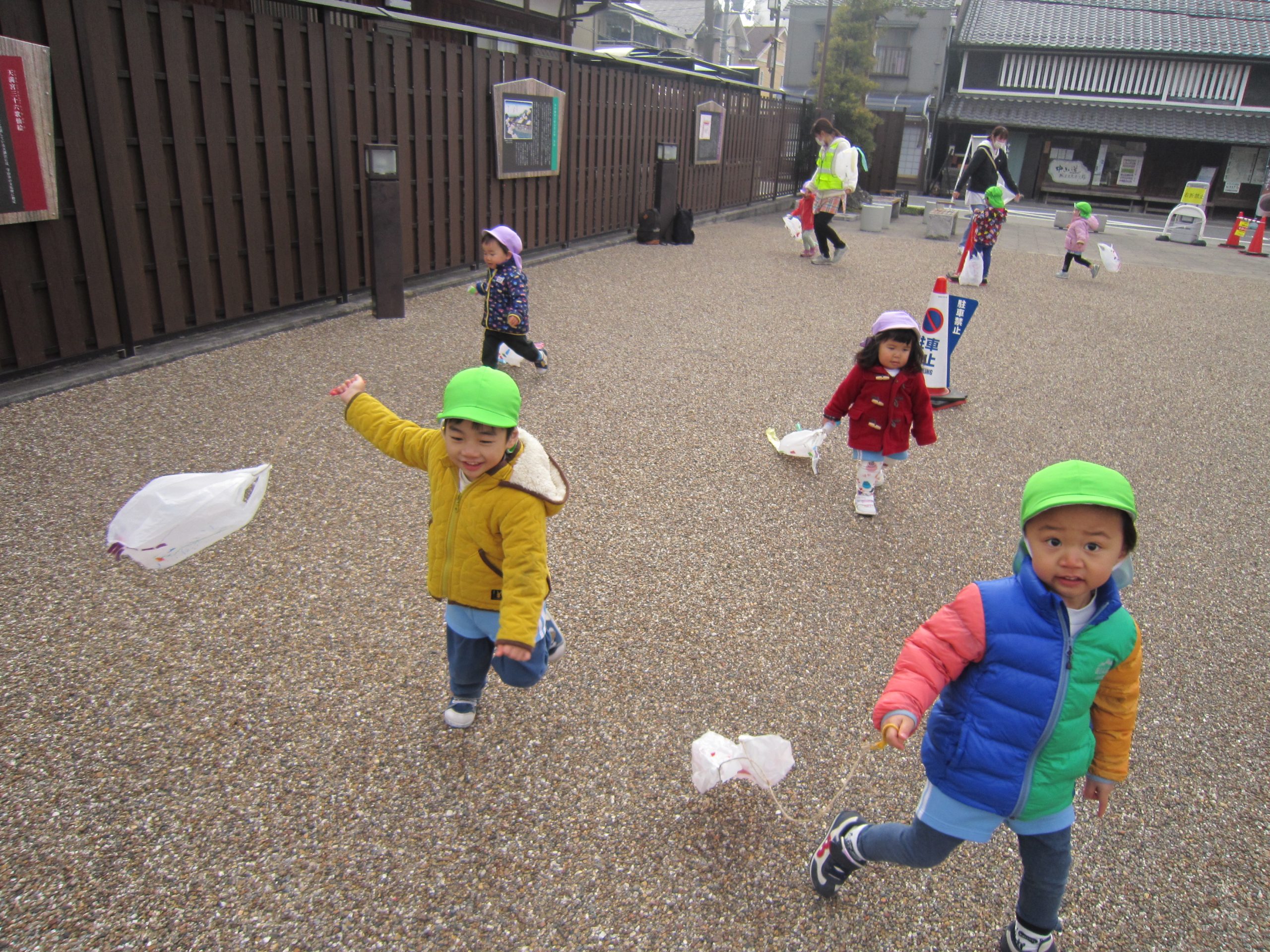 正月遊び final2021年1月15日(金) 昨日、うさぎ組は羽子板を使って風船つきや、コマ回しをして楽しみました♪ 昨日のこぐま組はコマ回しを楽しみました♪ そして、今日はみんなでにぎわい広場に行って凧あげを楽しみました! たくさん走って疲れると、少し休憩 凧あげもしたいし、休憩もしたいし・・・・ 「どーしたらいいの?」と保育者に伝えにくる子どもがいました! 「じゃ1~10まで数えながら休憩をしよう」と伝えると 「1.2.3・・・・10スタート」と言って、数え終わると走り出しました♪ 「よーいドン」と言いながら走る出す子ども達です! 楽しかったね♪ 本日凧を持ち帰ります。お家でも持ち帰った凧やコマ、羽子板を楽しんでもらえると嬉しいな♪ « 獅子舞 凧あげ »