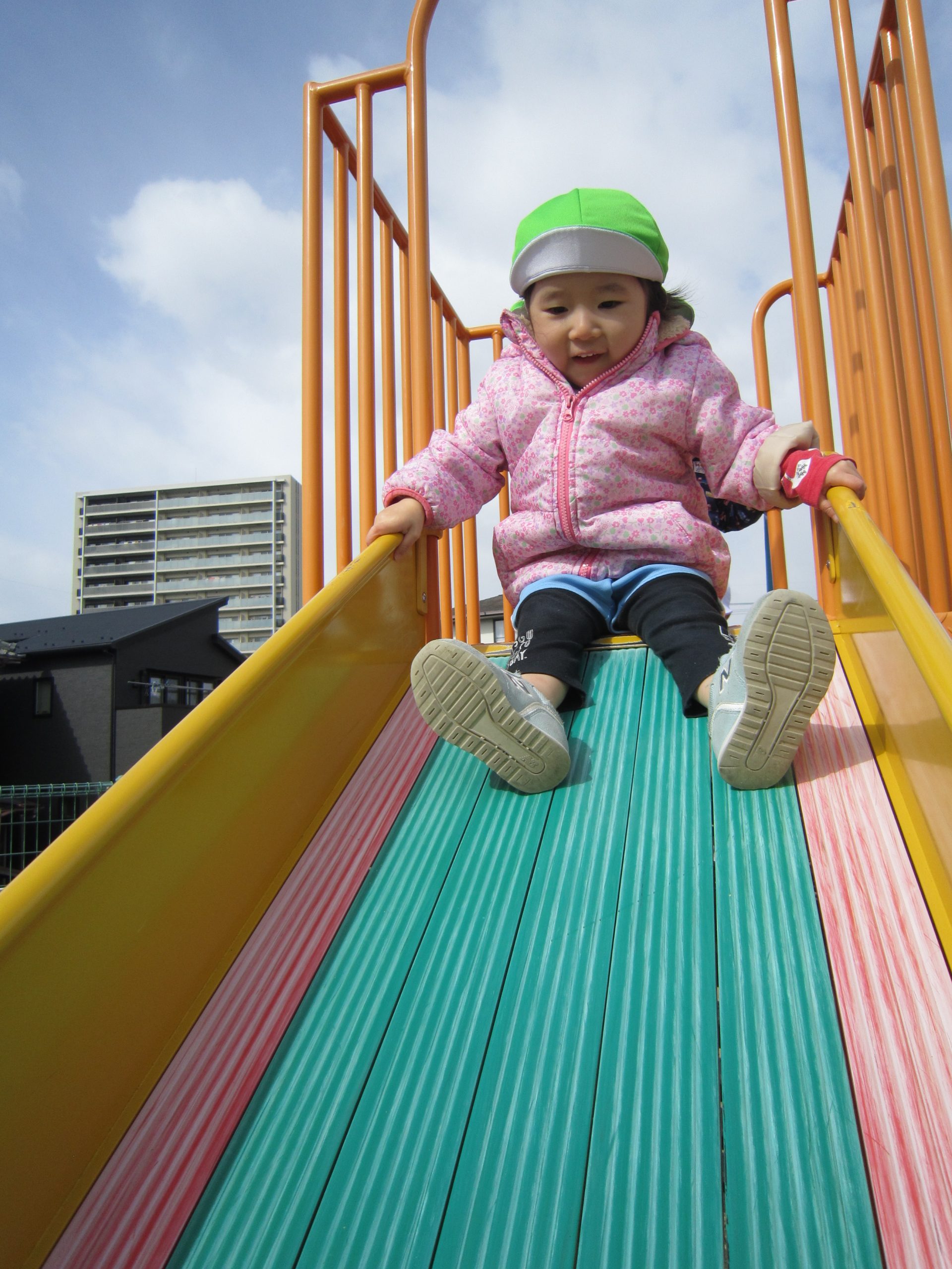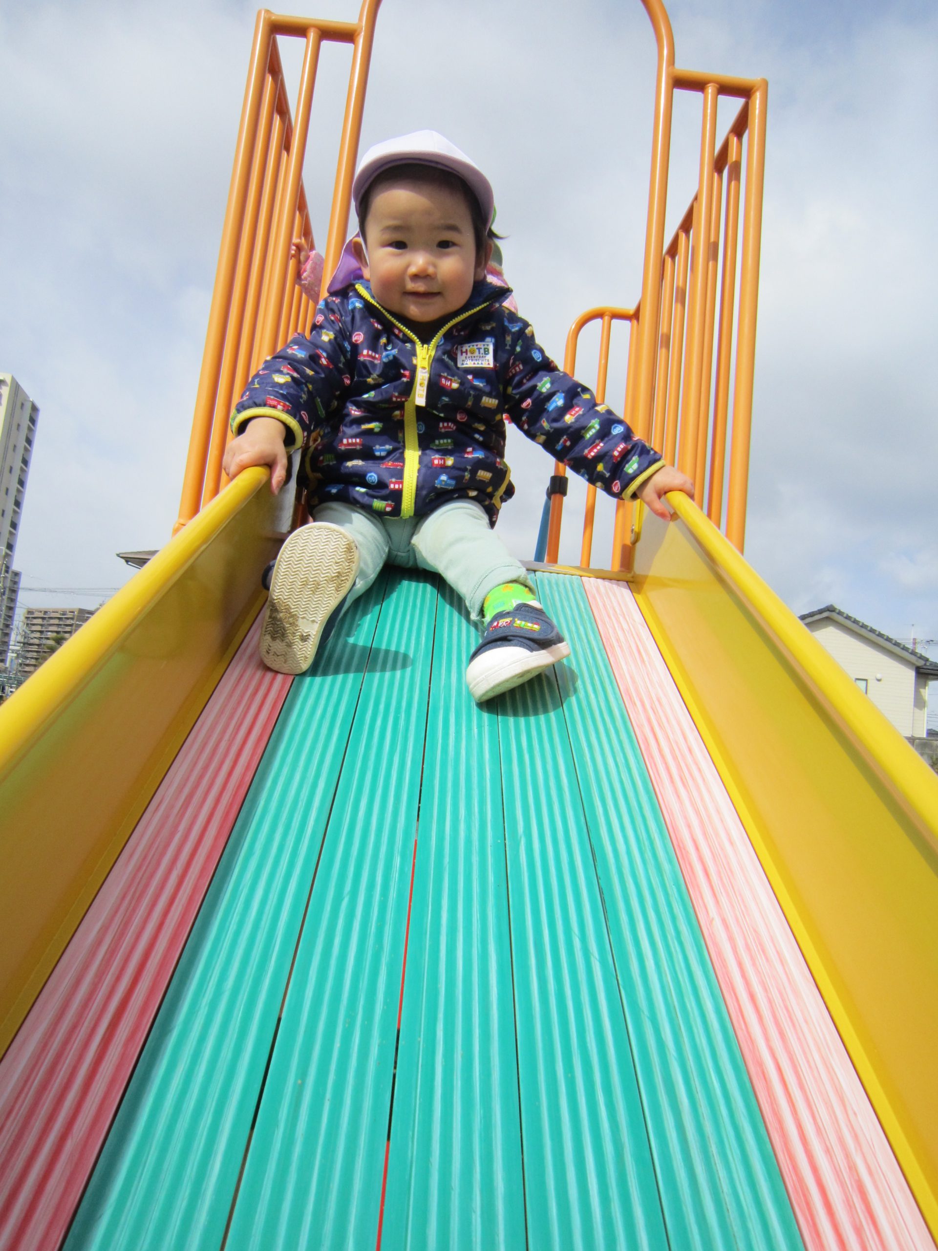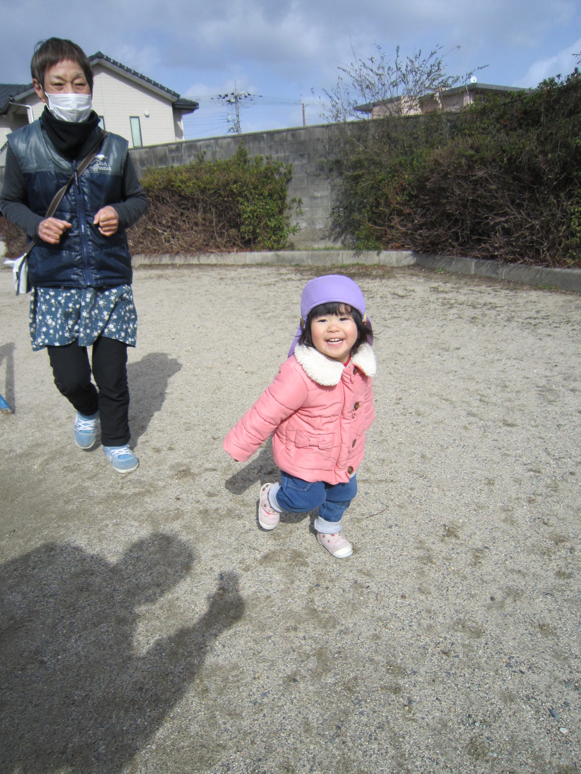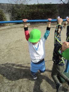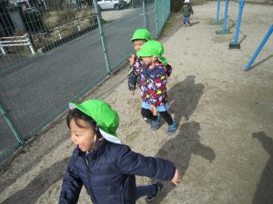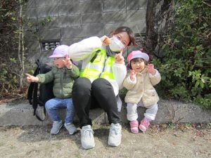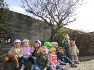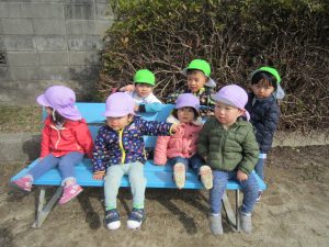 油池公園で遊んだよ2021年2月16日(火) 今日は天気が良かったので油池公園で遊びました♪ 保育者の「よーいドン」の合図に合わせて走っています 「あ~疲れた」 ベンチに座って少し休憩! さぁ~遊ぶよ!! 職員と一緒にハイポーズ♪ 最後に梅の花の前で写真を撮りました♪ 楽しかったね♪ « 散歩 園庭開放 »