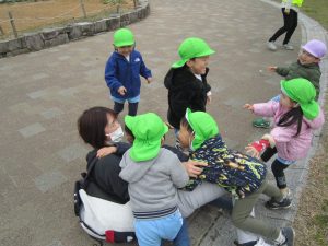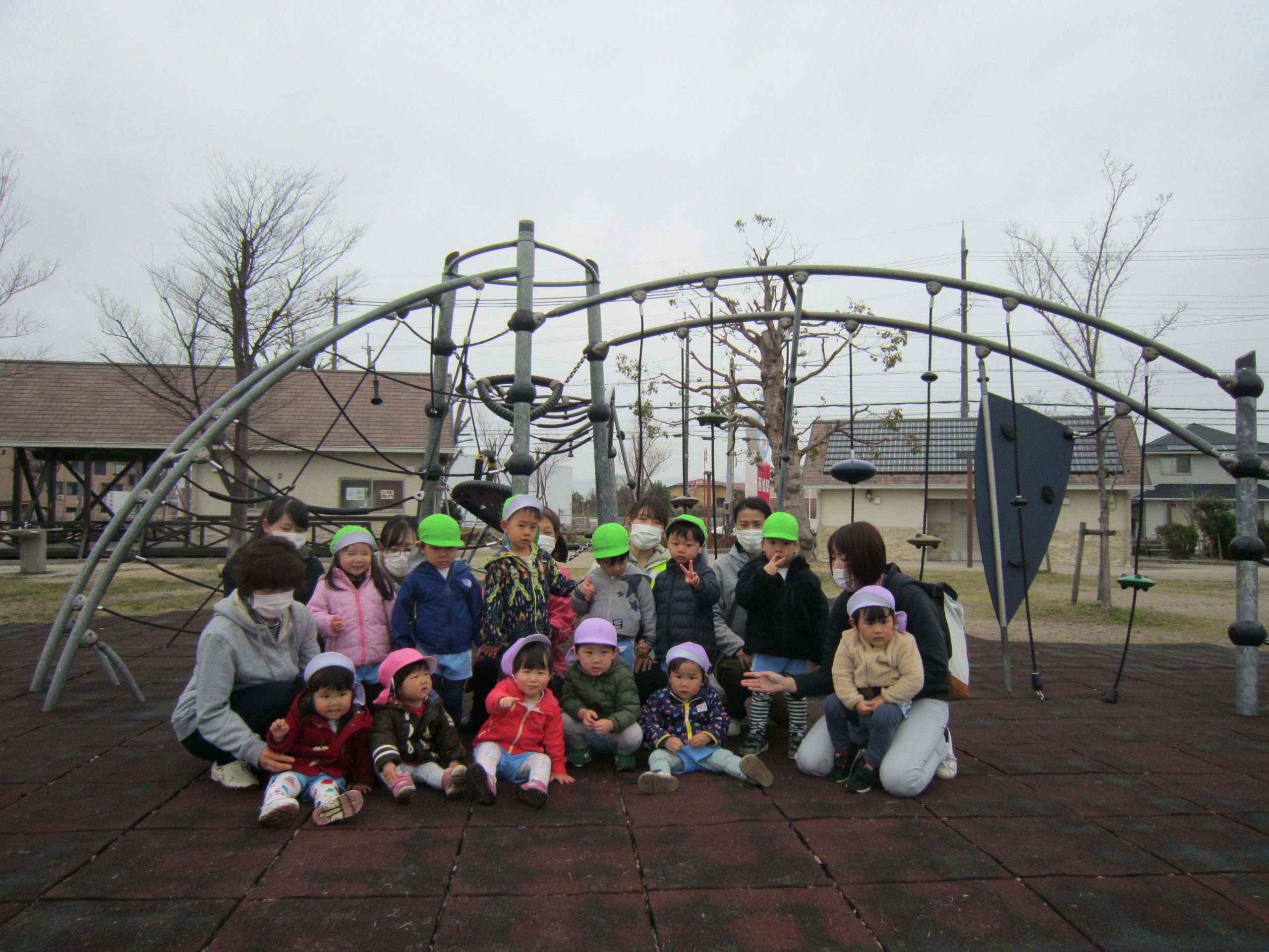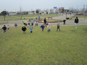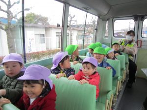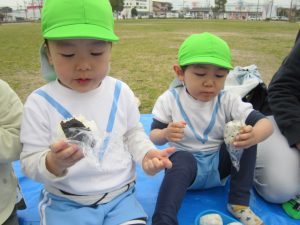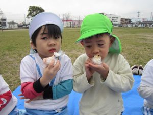 お別れバス遠足2021年3月12日(金) 今日は、えんまどう公園へバスに乗って行きました♪ えんまどう公園では遊具で遊んだり 丘を走ったり 芝生でボール遊びやしっぽ取りをして楽しみました♪ たくさん遊び、お腹が空いた子ども達はおにぎり弁当をパクパク♪ 最後にみんなで「ハイポーズ♪」 今日は、子ども達の為におにぎり弁当を作っていただきありがとうございました。 子ども達は大喜びで食べていました。 « ふれあい公園 明日はお別れバス遠足 »