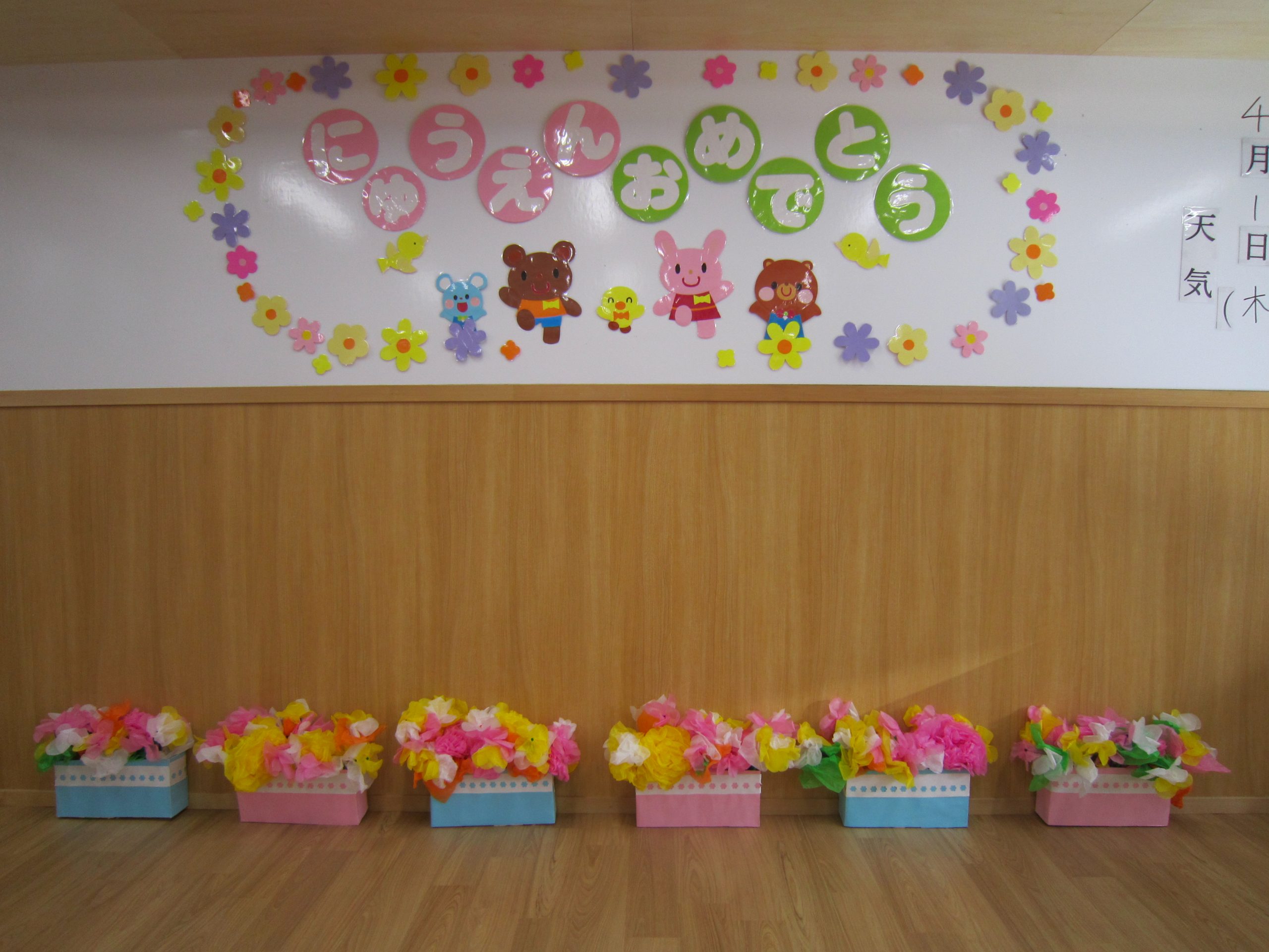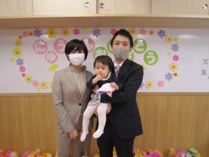 第3回入園式2021年4月1日(木) 今日は、第3回目の入園式がありました。 新入園児は4名です。 名前を呼ばれると保護者の方と一緒に「はーい」と返事をしてくれました。 ご入園おめでとうございます。 明日から、友達や保育者とたくさん遊ぼうね。 職員一同楽しみにしています。 « 令和3年度スタート 朝の体操・散歩(みとつ公園) »
