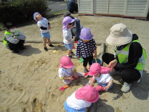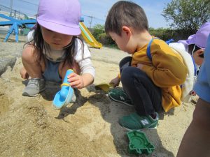 散歩(油池公園)2021年4月8日(木) 今日はみんなで油池公園へ散歩に出かけました。 公園では滑り台を滑ったり 休みをしていた友達を偶然!油池公園で見つけ、一緒に砂場遊びをしたりとたくさん遊びました。 楽しかったね! 天気の良い日はたくさん外遊びを楽しみたいと思います♪ « 英語あそび 散歩(みとつ公園) »
