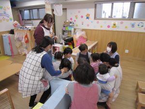 避難訓練2021年4月20日(火) 今日は、今年度初めての避難訓練がありました。 保育者が笛を吹くと保育者の方に集まることを教えてもらいました。 保育者が笛を吹くと・・・ 笛の音にビックリする子どももいましたが、毎月避難訓練をしていく中で少しずつ笛の音に慣れ保育者の方に来てくれるようになれるといいですね。 いつどこで、災害が起こるのか分かれません。その時に慌てず冷静な判断が出来るようにしっかりと避難訓練をしていきたいと思います。 « ザリガニさんバイバイ・・・ ザリガニを見つけたよ!! »