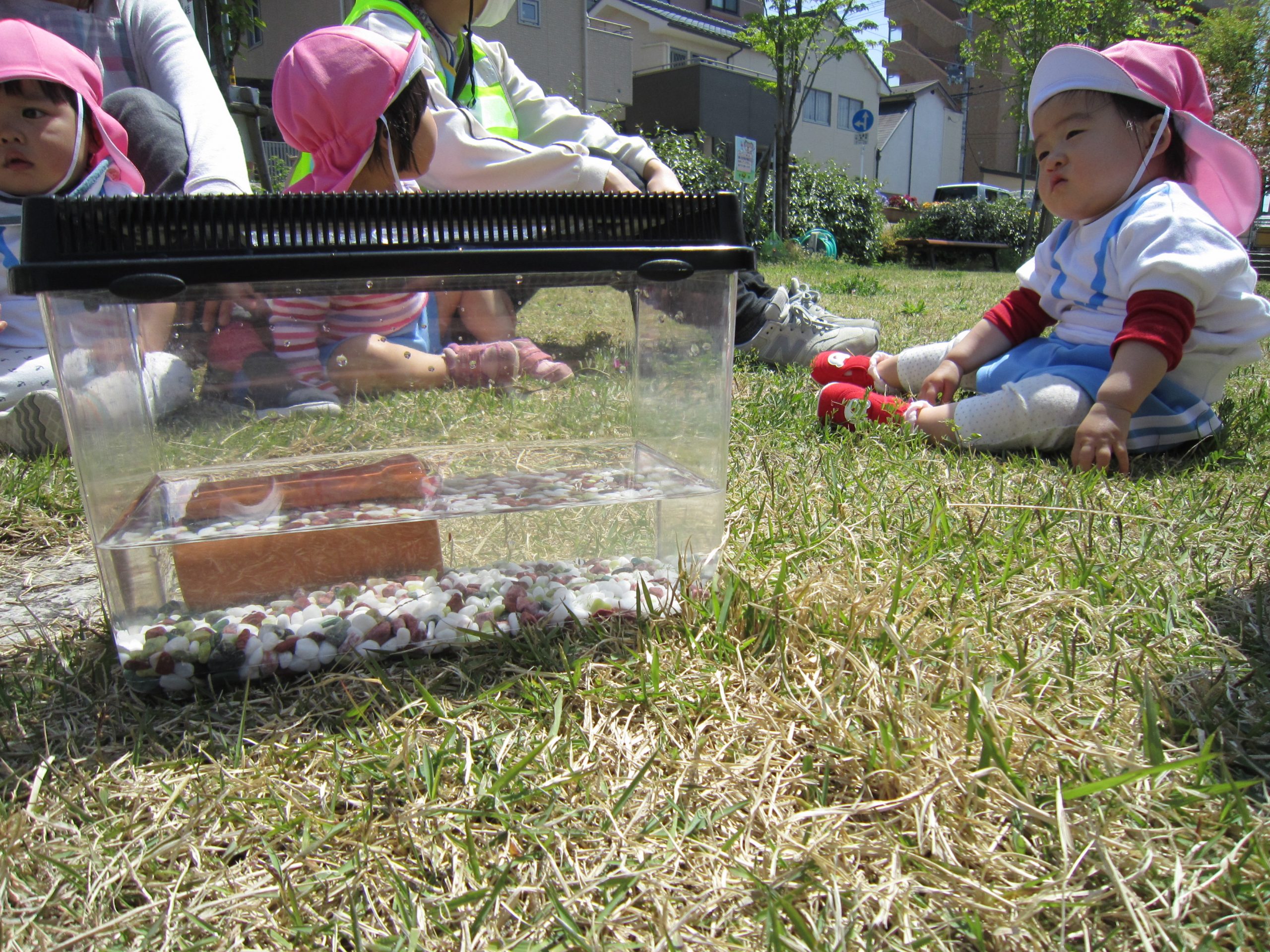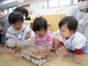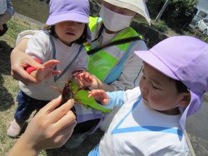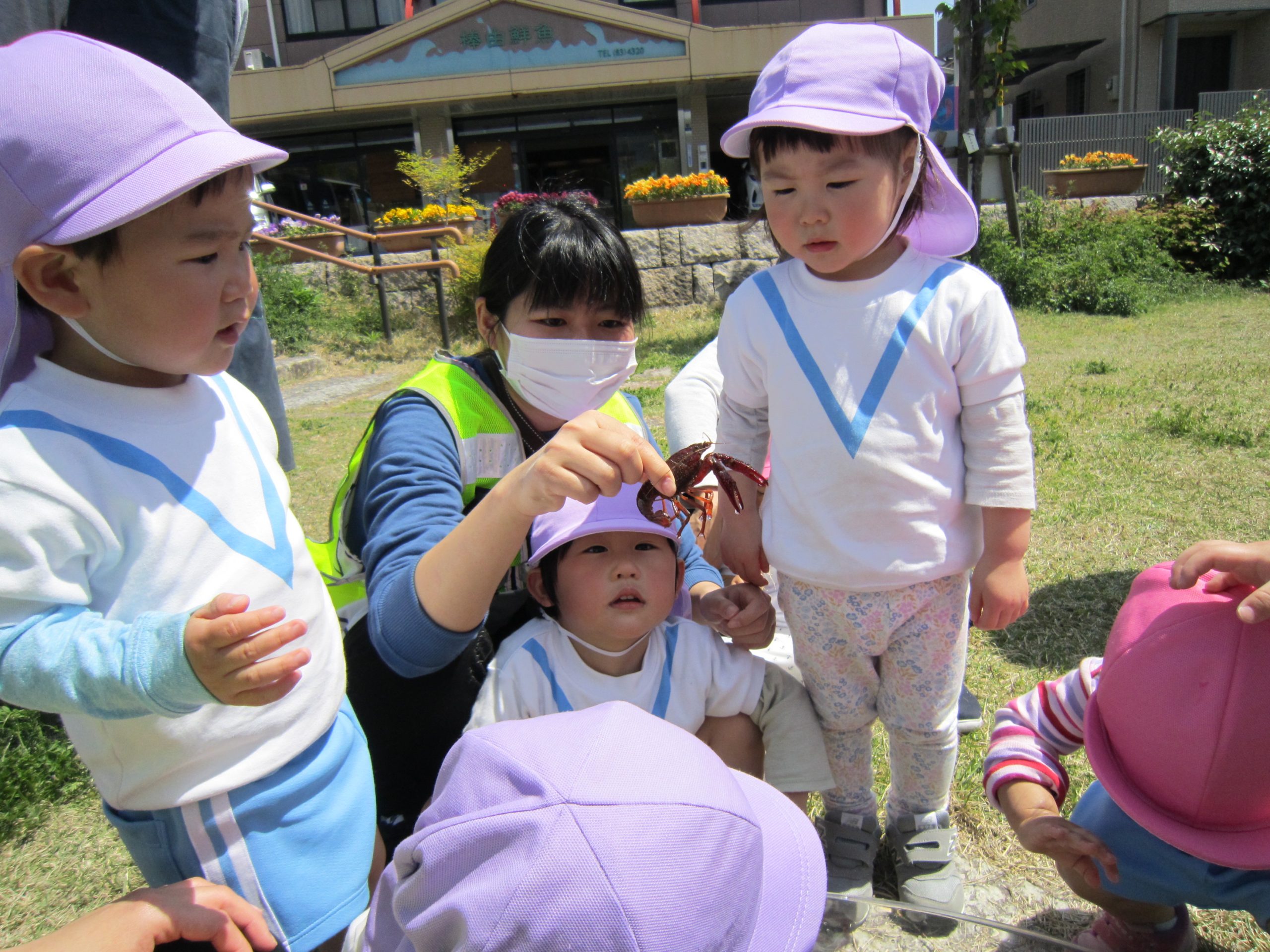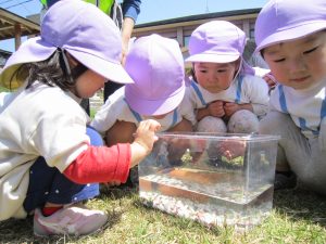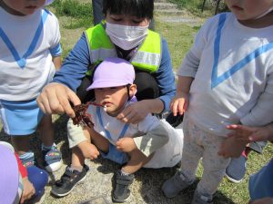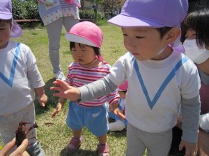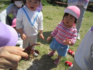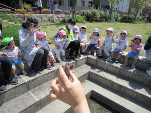 ザリガニさんバイバイ・・・2021年4月20日(火) 避難訓練の後は、昨日捕まえたザリガニをみとつ公園へ行って逃がしてあげることにしました。 逃がす前に・・・ザリガニさんにお別れを・・・ みとつ公園でもお別れを・・・ 「ザリガニさんバイバーイ」 これからも、色々な生き物に親しんでいきたと思います♪ « ふれあい公園(こぐま組) 避難訓練 »