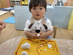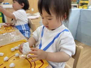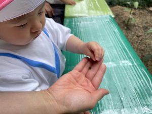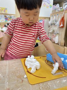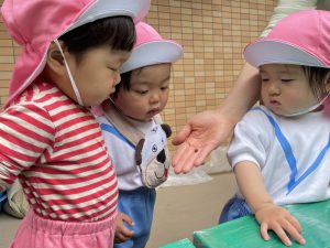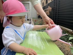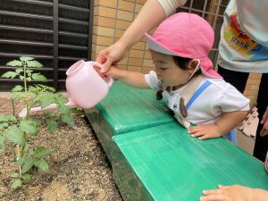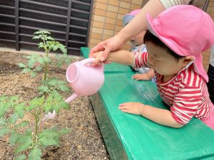 粘土あそび2021年5月18日(火) 今日は今年度初めての粘土あそびをしました♪ 粘土あそびの後は、エントランスに出て野菜の水やりをしました🎵 すると・・・ミニトマトの葉っぱの上にてんとう虫🐞が❕❕ テントウ虫🐞の観察が終わると、水やりをしました🎶 少しずつ野菜も大きくなり、ミニトマトの苗に花が咲いていました🎶 次は、どんな虫があそびに来てくれるのかな・・❓楽しみです🎵 « コーナーあそび こぐま組 散歩(油池公園) »