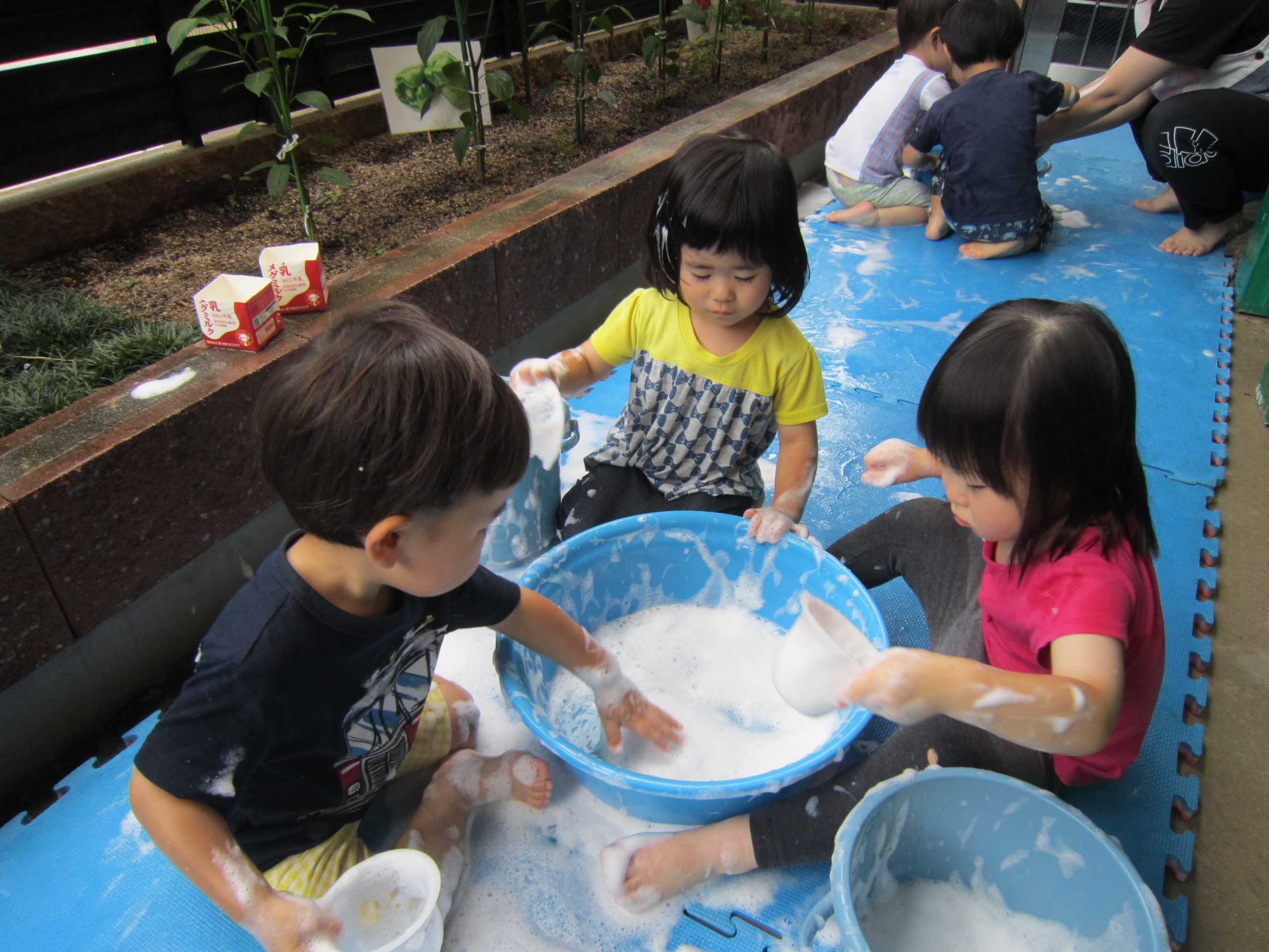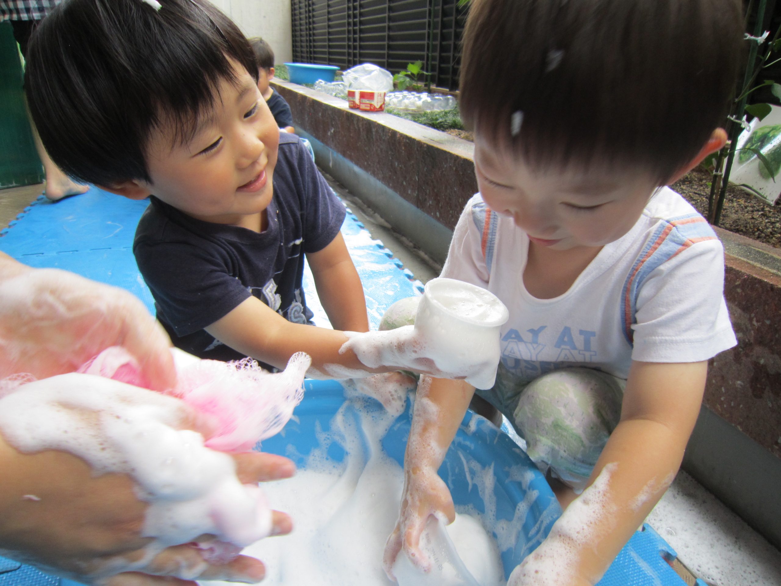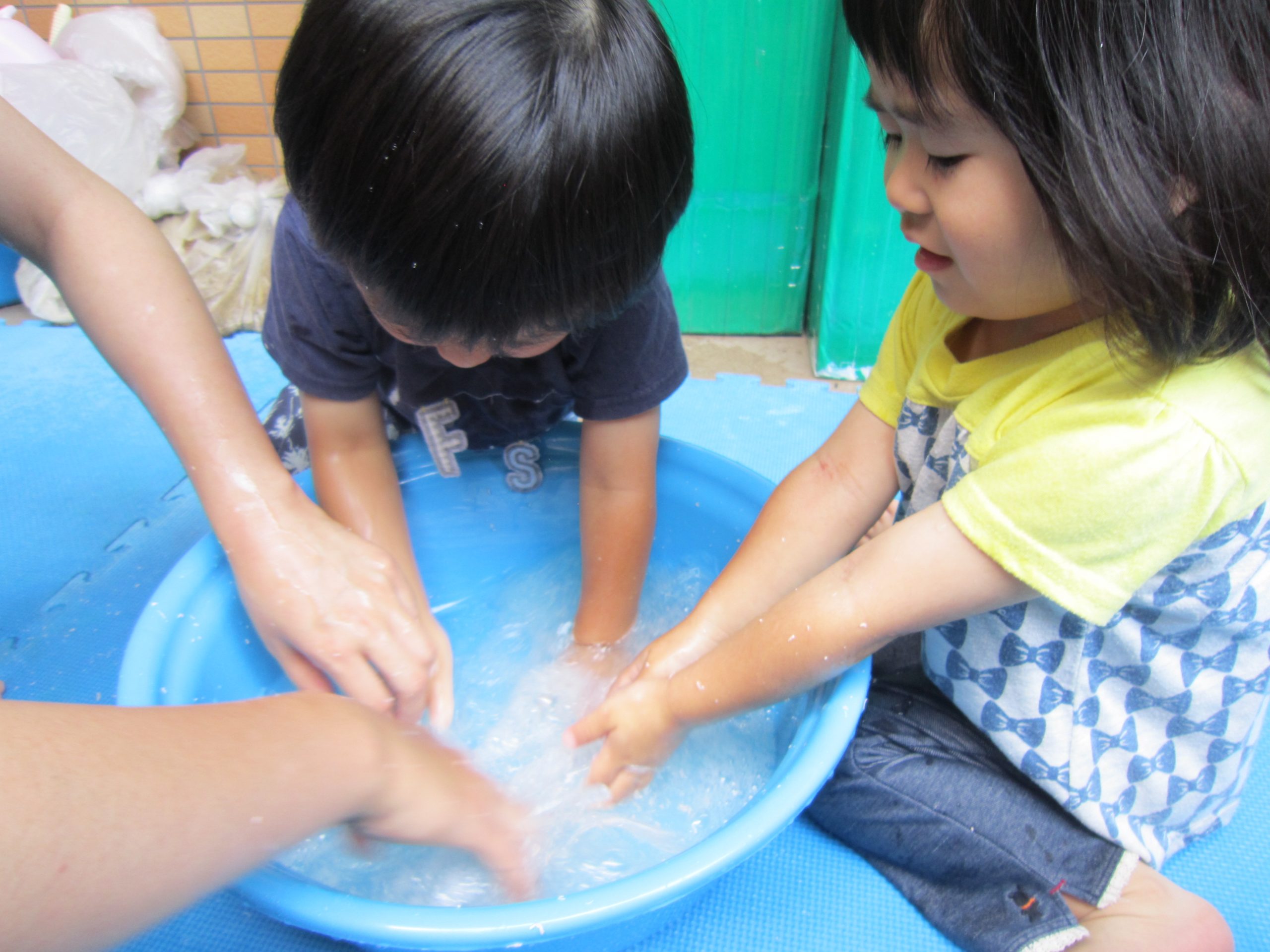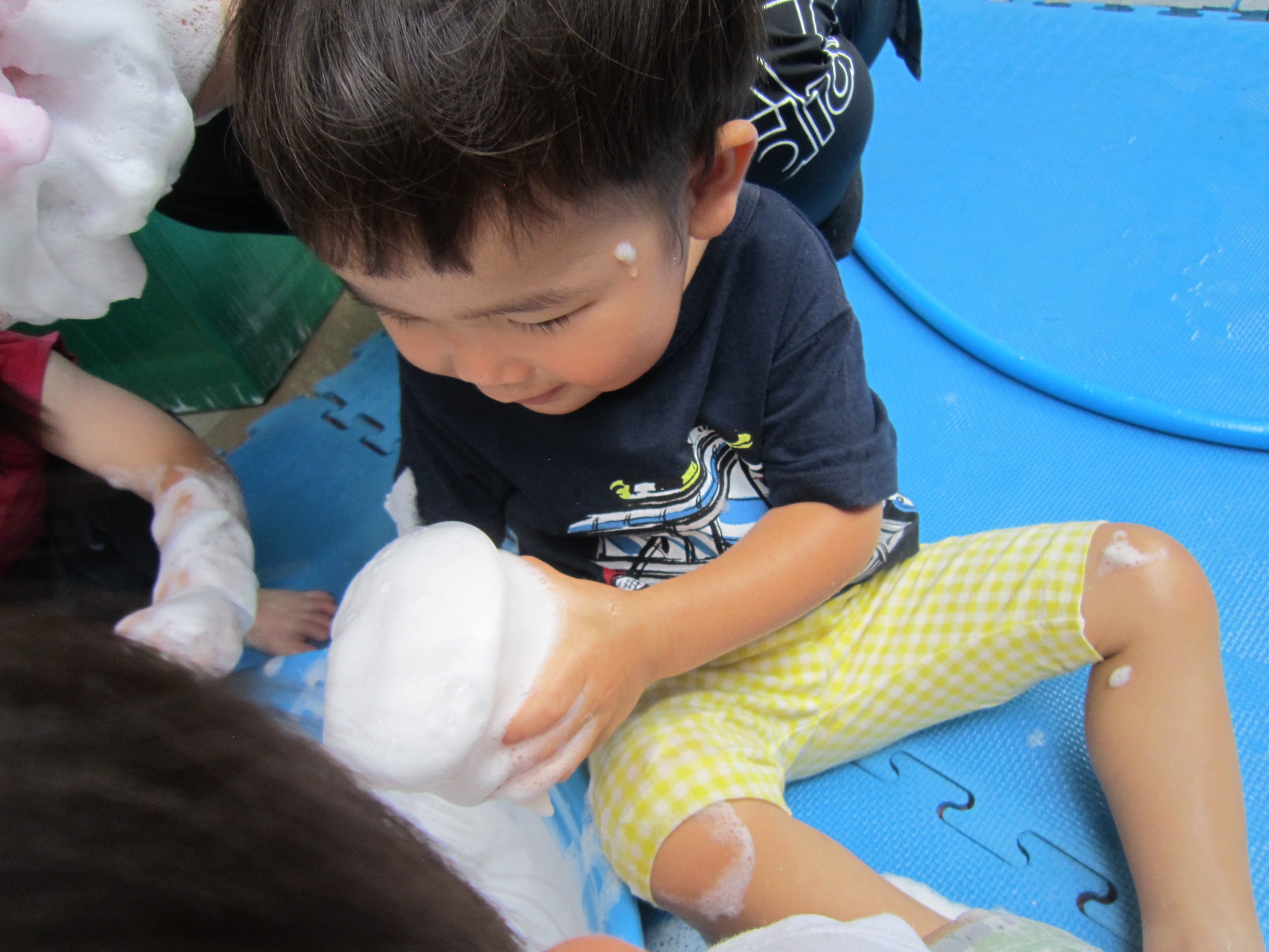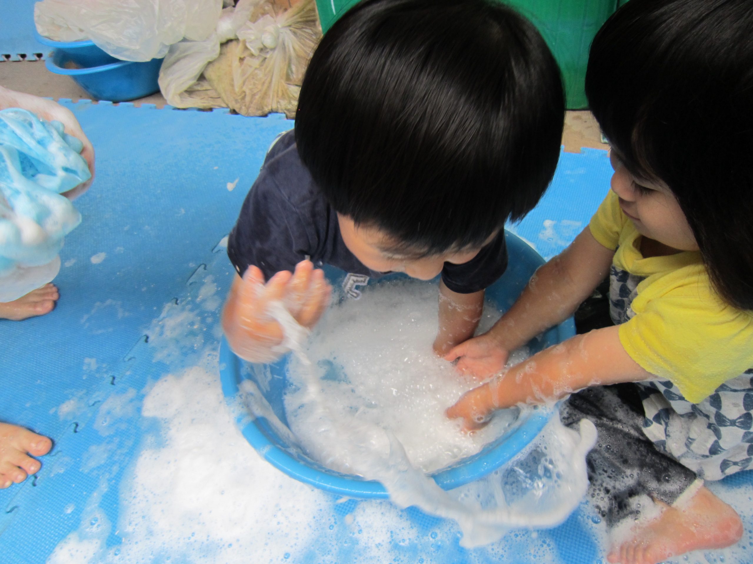 泡あそび 七夕飾り(こぐま組)2021年6月25日(金) 誕生会の後は、泡あそびを楽しみました❕ うさぎ組 泡を作るよ~ たくさん混ぜて~ 泡であそぼう~ 黄色や赤色に泡が変身するよ~ たくさん泡ができたね🎵 ふわふわで気持ちよかった🎵 こぐま組 七夕飾りの制作をしました❕ どんな飾りが完成するのか楽しみです🎵 制作の後は、待ちに待った泡あそび❕ 魔法の粉を入れて 混ぜるよ~ もっと混ぜるよ~ 泡の完成❕ 泡あそびの始まり🎶 最後は、保育者の手をゴシゴシ~ 「きれいにな~れ~🎵」 ピッカピカになった、こぐま組でした🎶 « ありがとう♪ 6月のお誕生日会 »