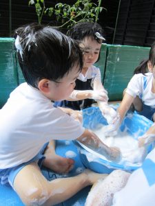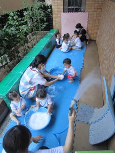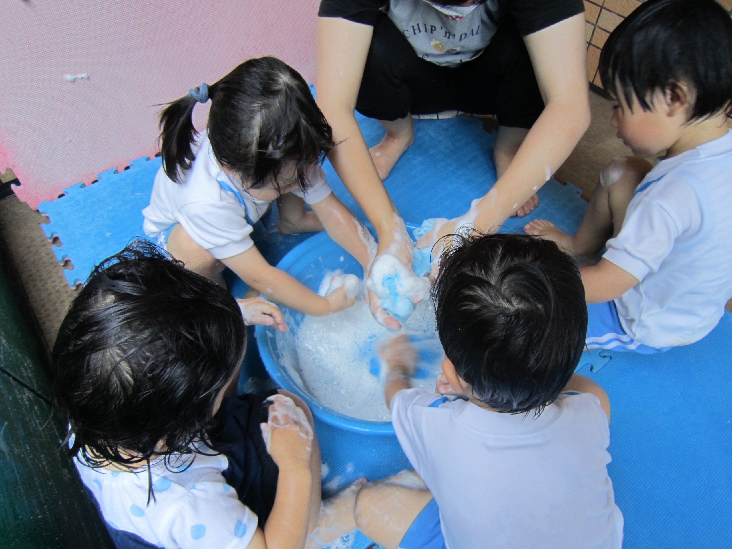 園庭開放2021年7月20日(火) 今日は園庭開放に参加しました🎵 暑かったけど楽しかったね🎵 次は9月に園庭開放があります🎶 園庭開放から帰った後、うさぎ組とこぐま組は泡あそび・水あそびを楽しみました❕ あ~さっぱりして気持ちよかった🎵 « プール遊び プールあそび »