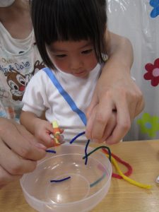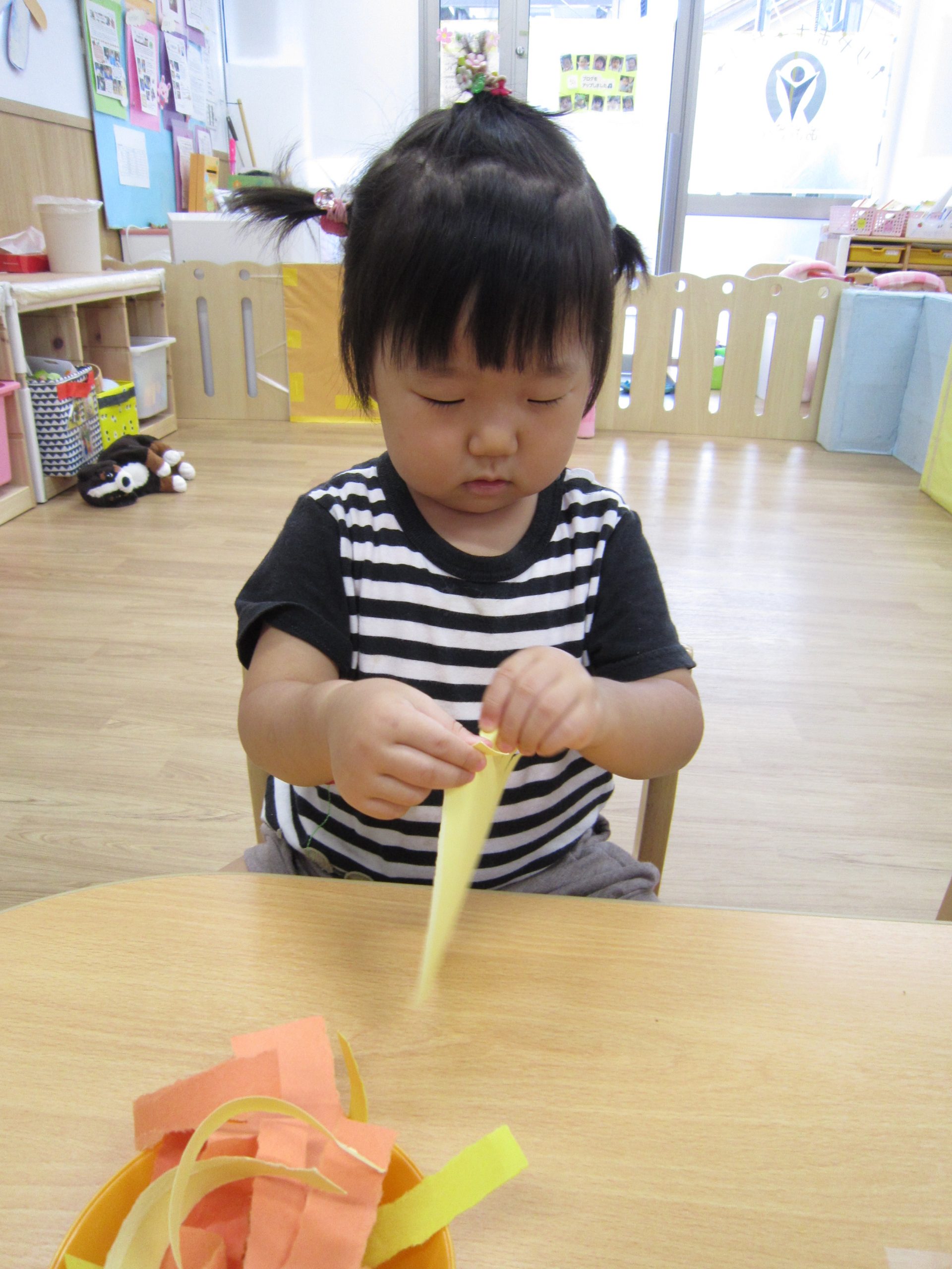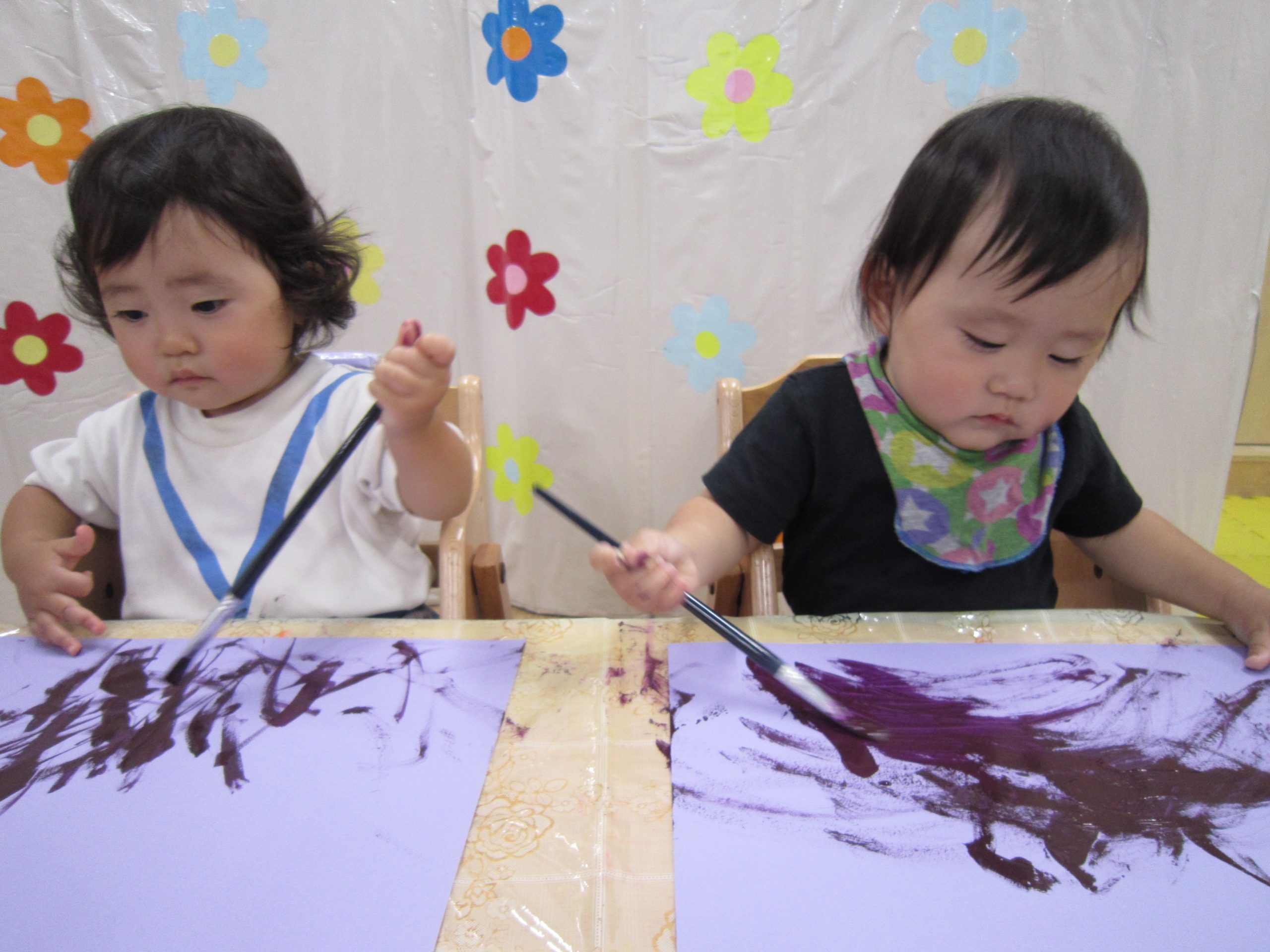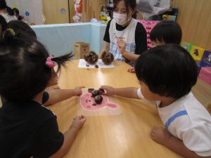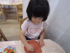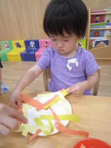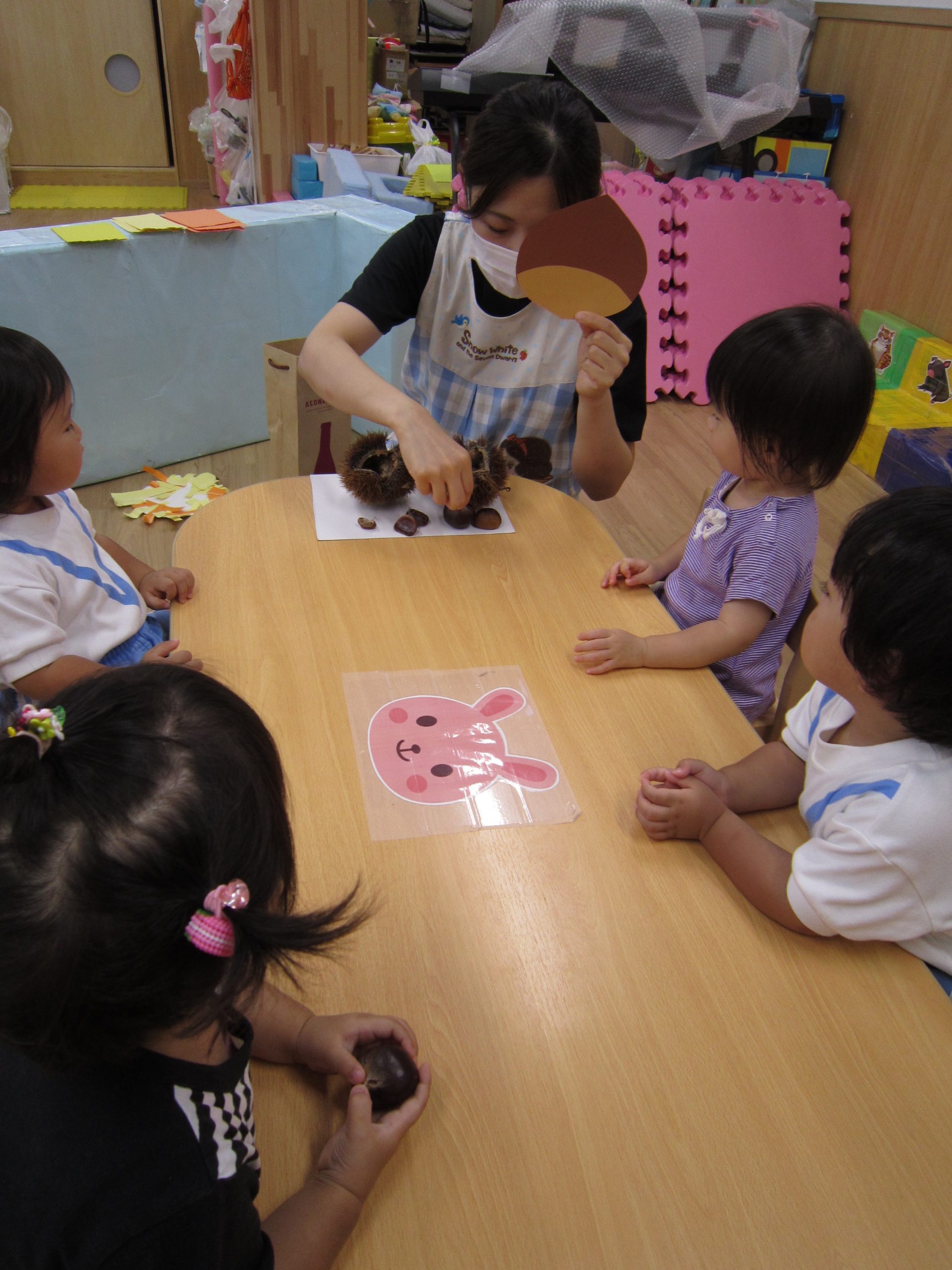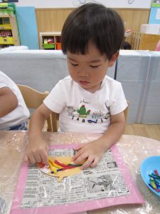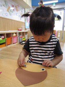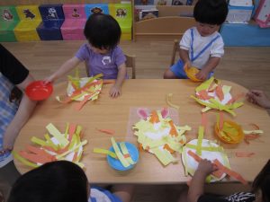 10月の壁面制作2021年9月29日(水) 今日は10月の壁面制作をしました❕ ひよこ組 初めての絵の具❕ とても集中して描いていました🎶 うさぎ組 大きないがぐりの中から、大きな栗❕❕ ビリビリと破って ペタペタ貼って 最後は さぁ~どんな壁面が完成するかな・・♪ こぐま組 毛糸をハサミで切って ボンドを付けて、貼って お絵描きをして 何ができるかなぁ~🎶 10月の壁面もお楽しみに~🎶 « 大型壁面制作 ふれあい公園 »