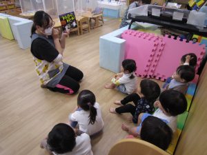 まずは、絵本を見ながら合言葉の練習です❕