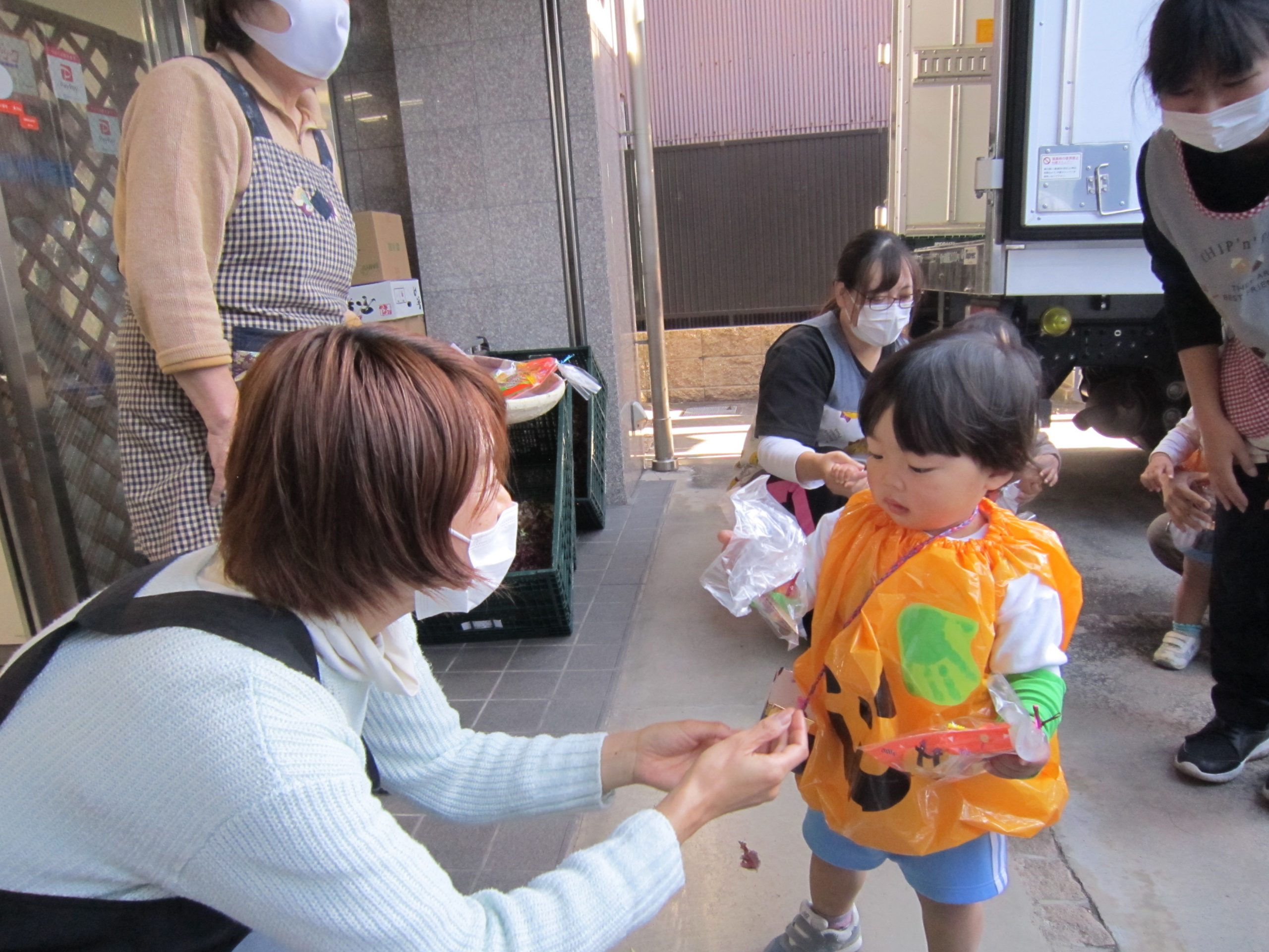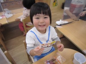 その後、お菓子をもらえたて子ども達は、一安心・・・嬉しそう🎵