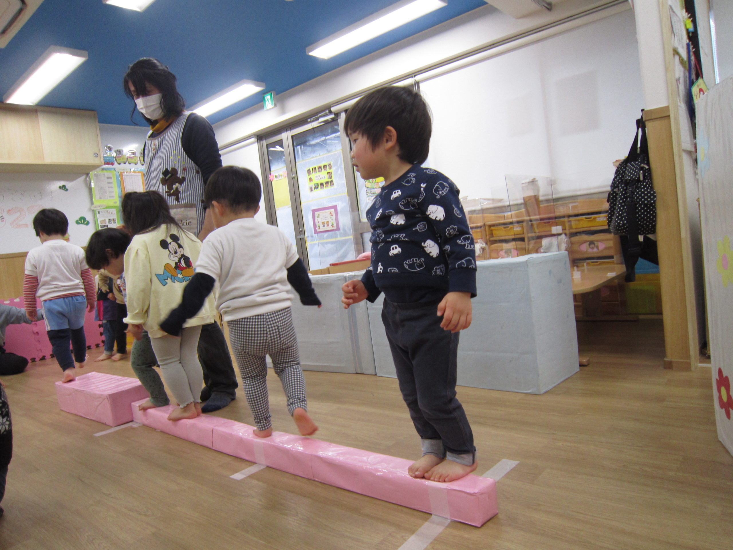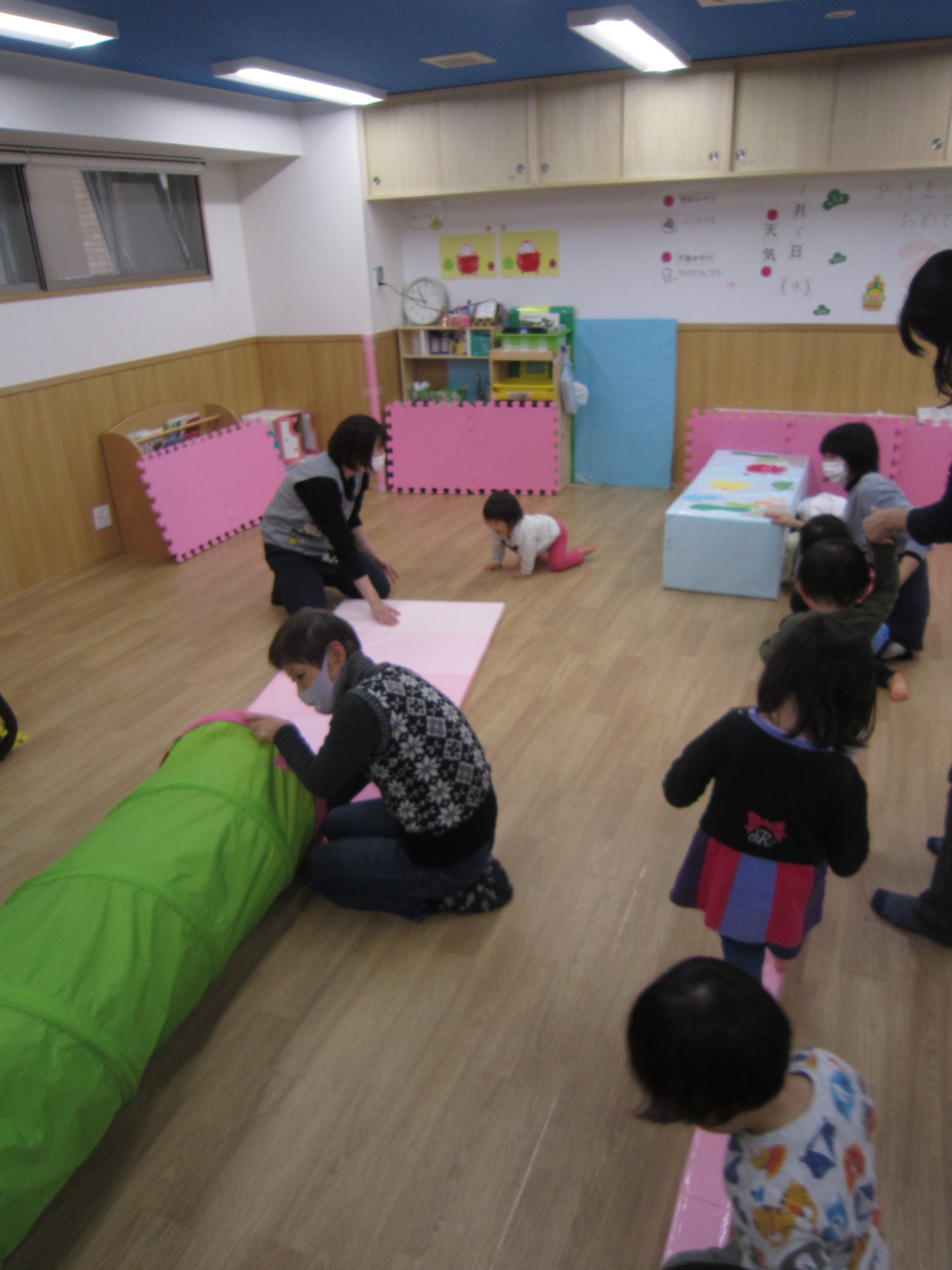 令和4年の始まり~2022年1月5日(水) あけましておめでとうございます。 本年もよろしくお願いいたします。 もりやまナーサリーは昨日から始まっていましたが、ほとんど子ども達が今日から登園です。 さて、今日は初詣を考えていましたが・・・雨が降っていたので延期になりました。 また、天気の良い日に初詣に行きたいと思います。 今日は、室内で運動遊びを楽しみました🎶 一本橋を渡ったり トンネルをくぐったり くまのポーズでマットの上を歩いたり 低いトンネルをくぐったりとたくさん体を動かして楽しみました🎶 今年も色々な遊びを楽しんで行きたいと思います♬ « 初詣 年末の大掃除❕ »
