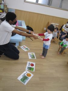 好きな果物のカードを取りに行こう♪