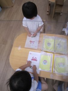プリント こぐま組2022年5月12日(木) 今日は、体操教室の後プリントをしました❕ 初めにどんなことをするのか話を聞きました🎵 1枚目 さあシールを貼るよ❕ 2枚目 丸を書く場所に指差しをしてみよう❕ 丸を書いてみよう❕ 3枚目 タンポポのシールを貼るよ❕ 本日プリントを3枚持って帰ります。 また、プリントも取り入れていきたいと思います。 « 5月 大型壁面制作♬ 体操教室 »