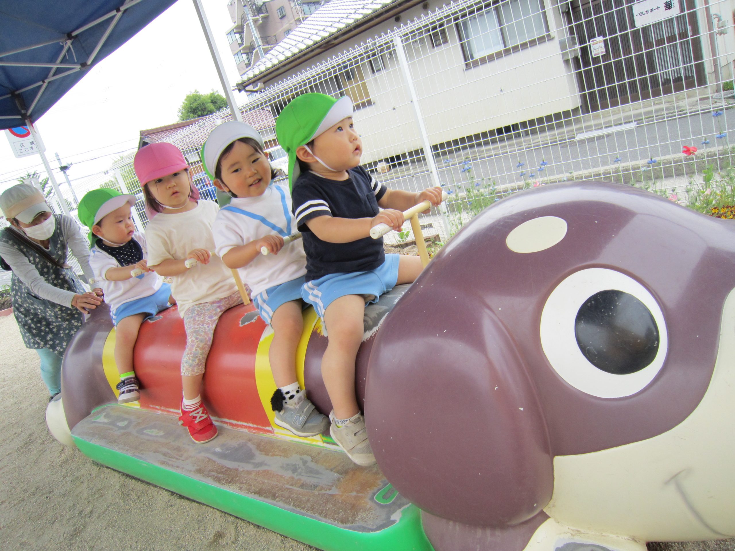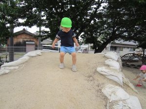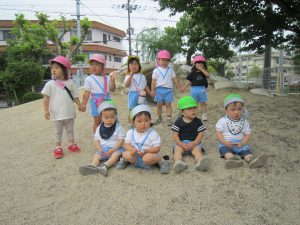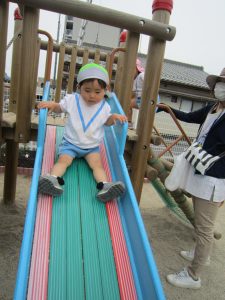 園庭開放2022年5月20日(金) 今日は、連携園の園庭開放に参加しました❕ 広い園庭に子ども達は大喜びでした。 好きな遊具や遊びを見つけて楽しんでいました🎶 最後にみんなで写真を撮りました🎵 園庭開放に参加させていただきありがとうございました。 来月も楽しみにしています。 今日から水筒を持参して登園しました。 水分補給をする際子ども達は、水筒のお茶をごくごくといつもよりたくさん飲んでいました。 今日から毎日登園時は、水筒の持参をよろしくお願いします。 « 5月の誕生日会🎵 イチゴの収獲♬ »