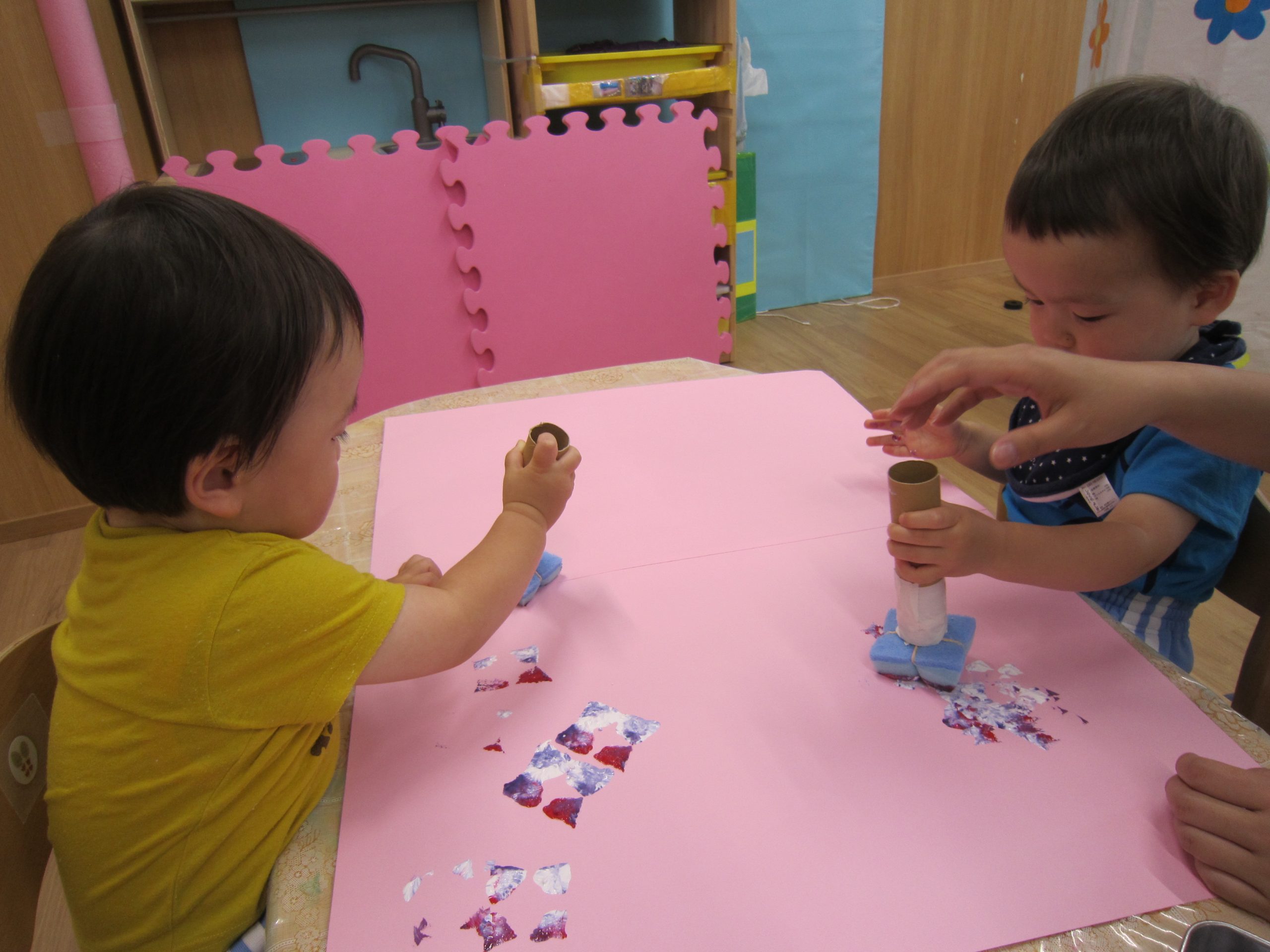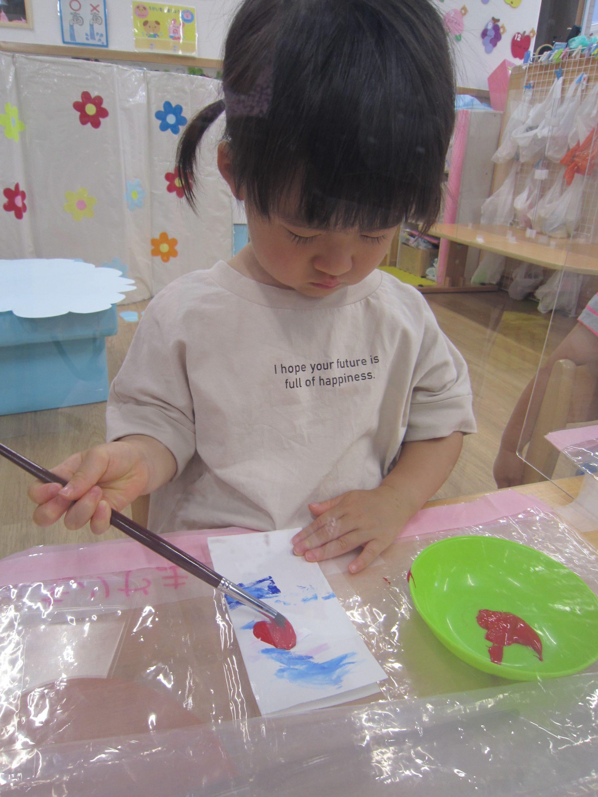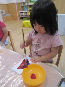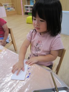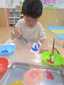 好きな色を選んで画用紙に色をつけていきました♬