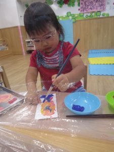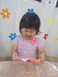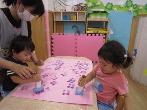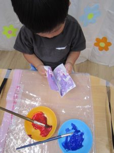 こぐま組はデカルコマニーをして、紫陽花の花を作りました🎵