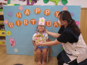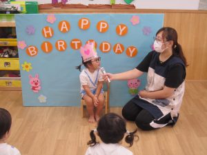 7月の誕生会の日にお休みをされていたので、今日改めて7月の誕生会をしました♪