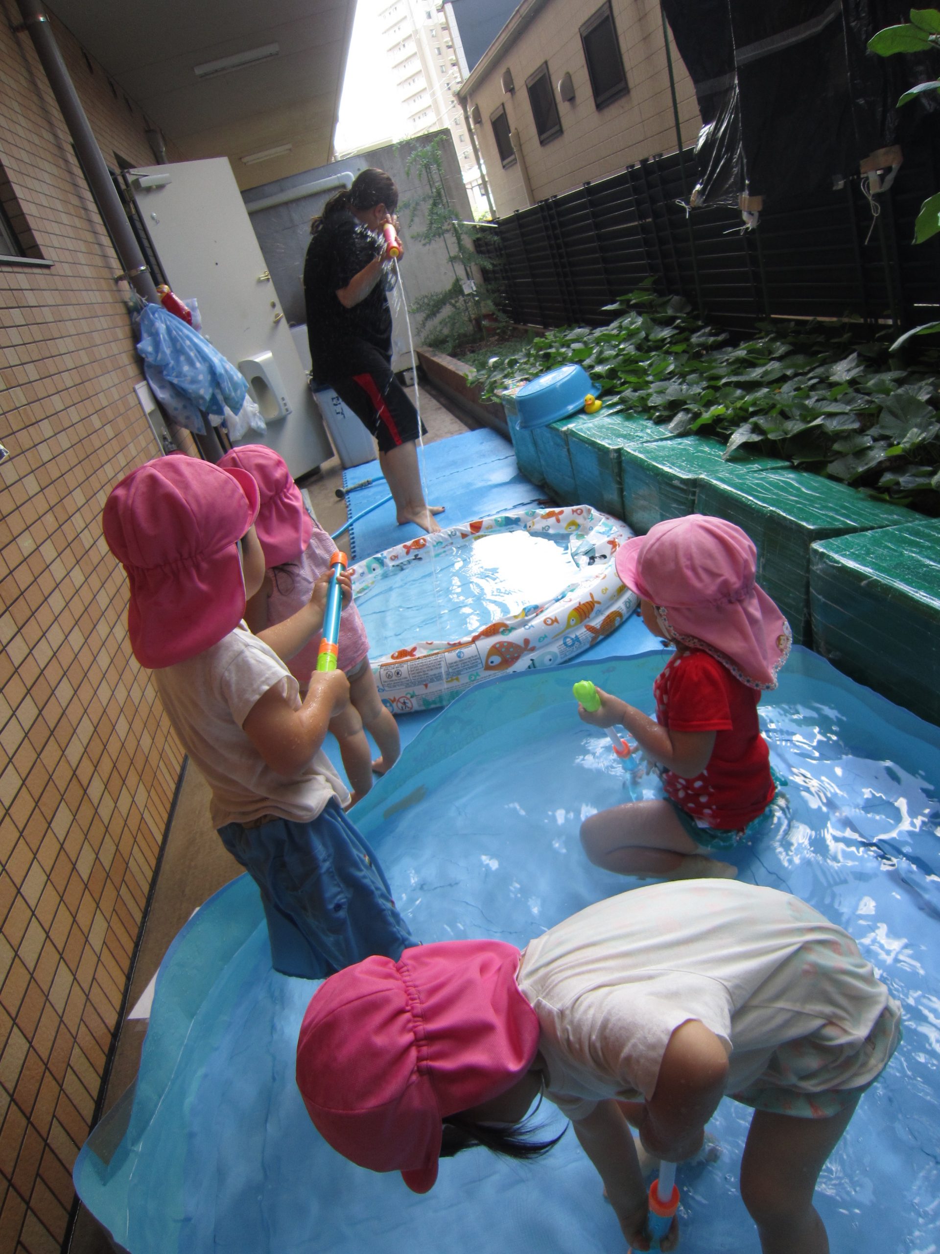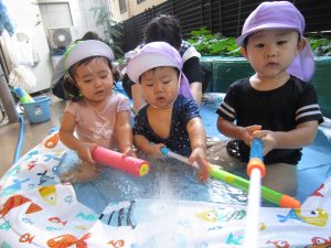 今年度最後のプール遊び🎵2022年8月31日(水) 今日は、今年最後のプールを楽しみました🎵 ひよこ組・うさぎ組 こぐま組 今日は、子ども達対担任で水鉄砲のうち合い合戦❕❕ 終始笑顔のこぐま組の子ども達でした🎵 最後に“ハイポーズ” すいか割りから始まり今日も楽しい一日でした🎶 お腹も心も満たされたかな・・・・ « 久しぶりの散歩~白鳳公園 こぐま組 夏ならではの楽しみ♬ »