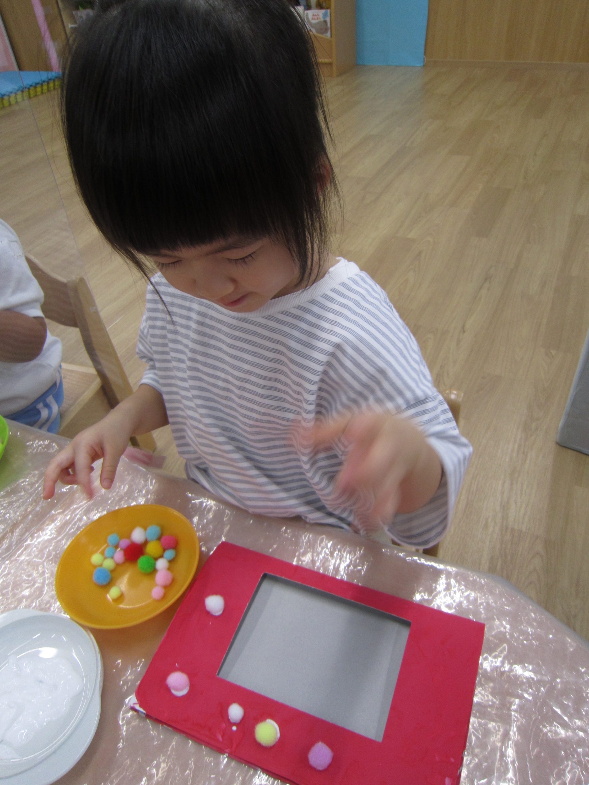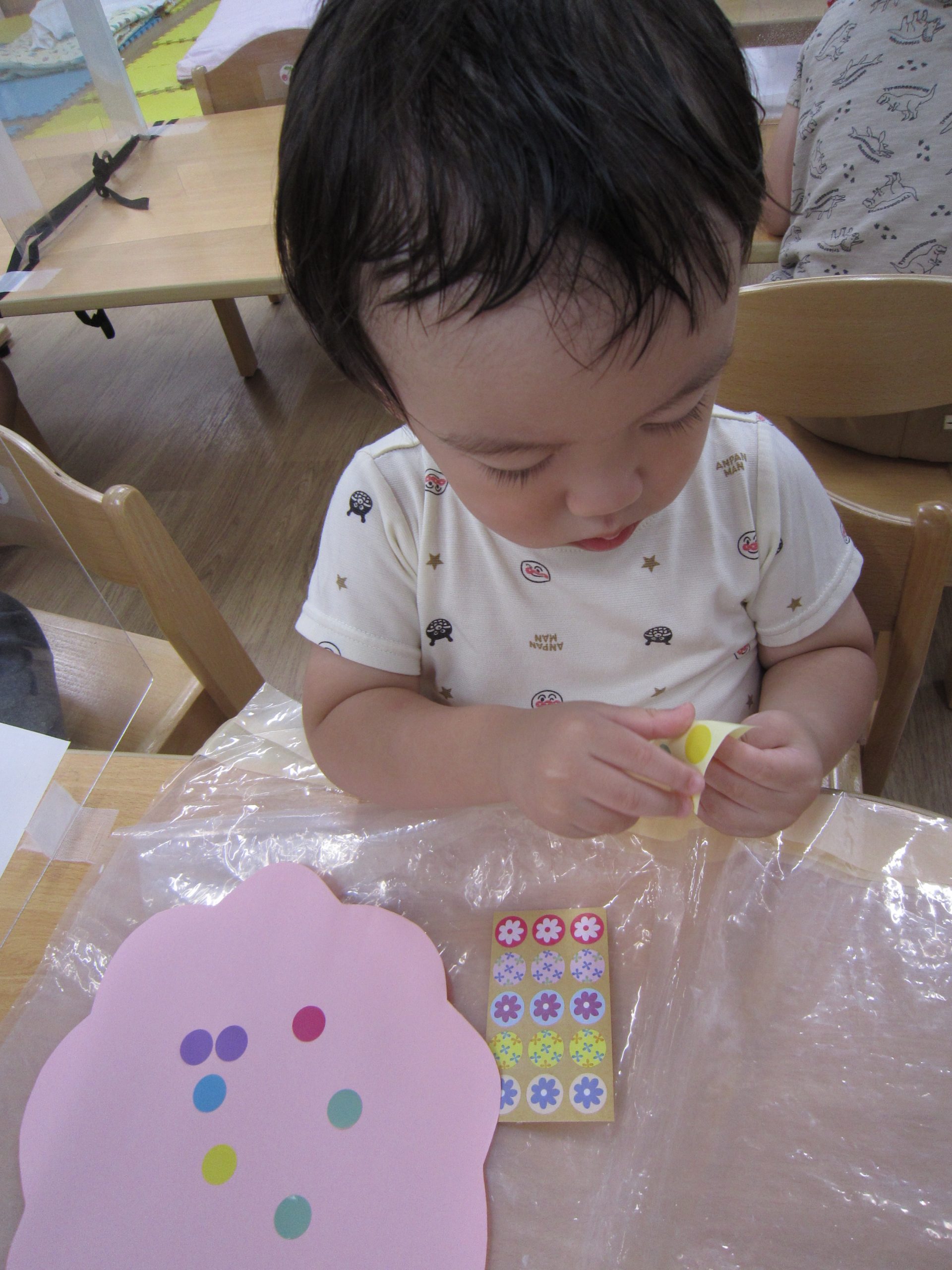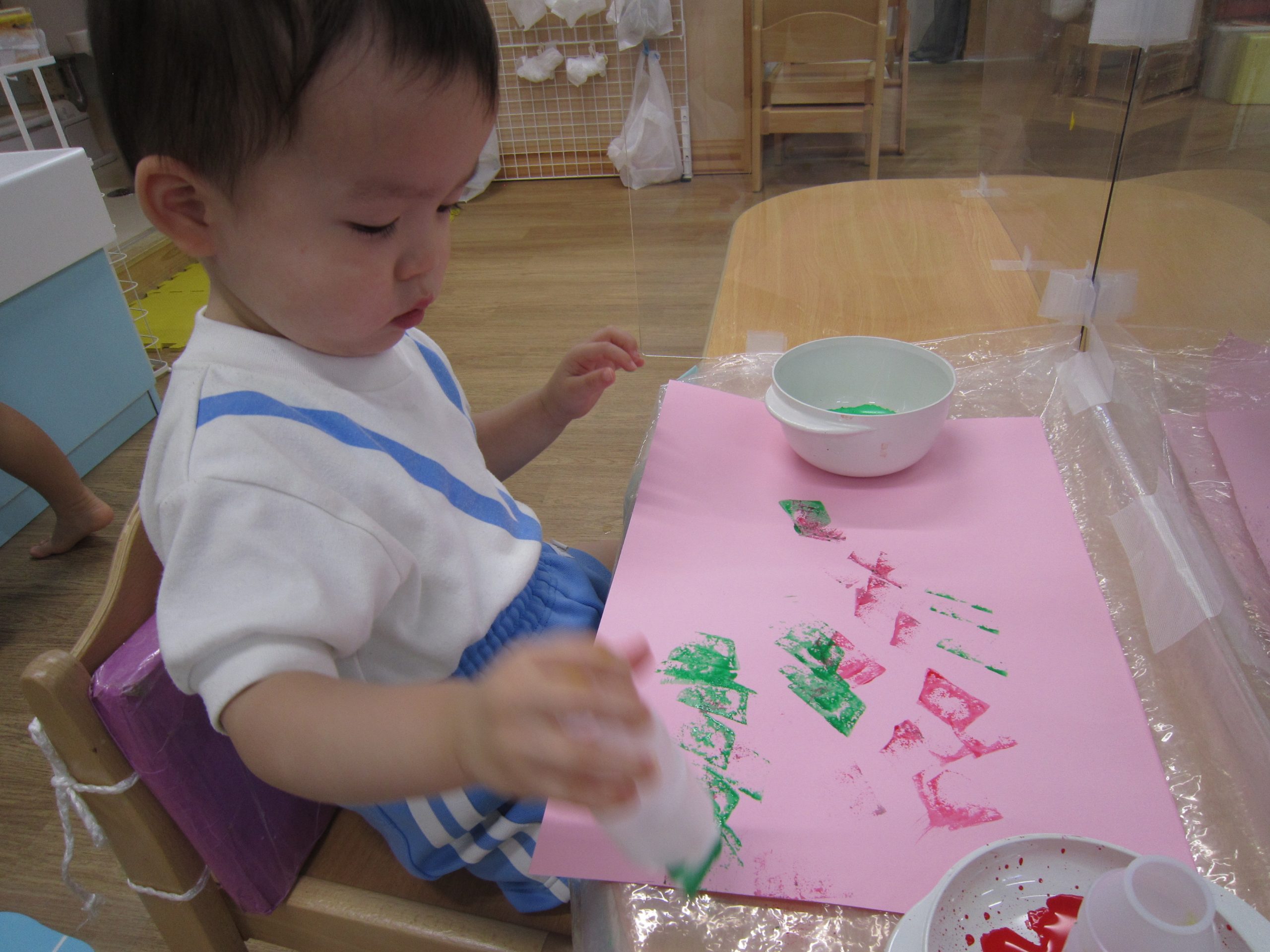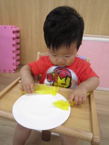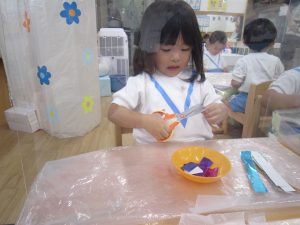 お花紙を丸めてぺったん