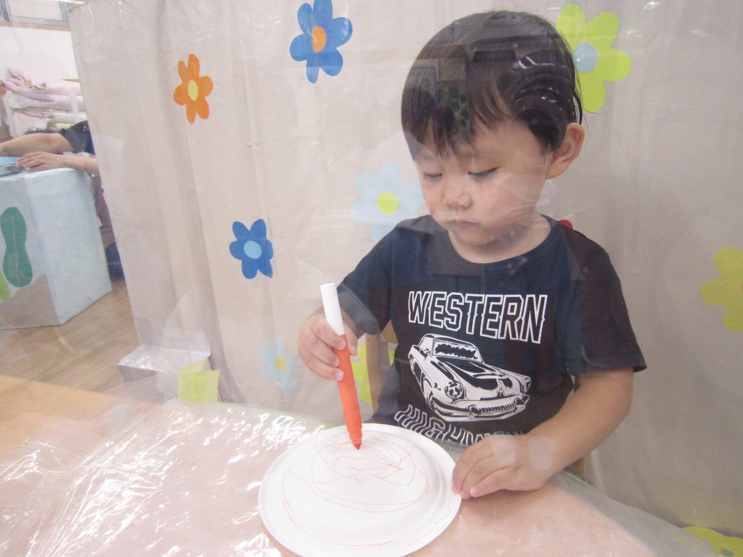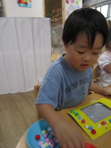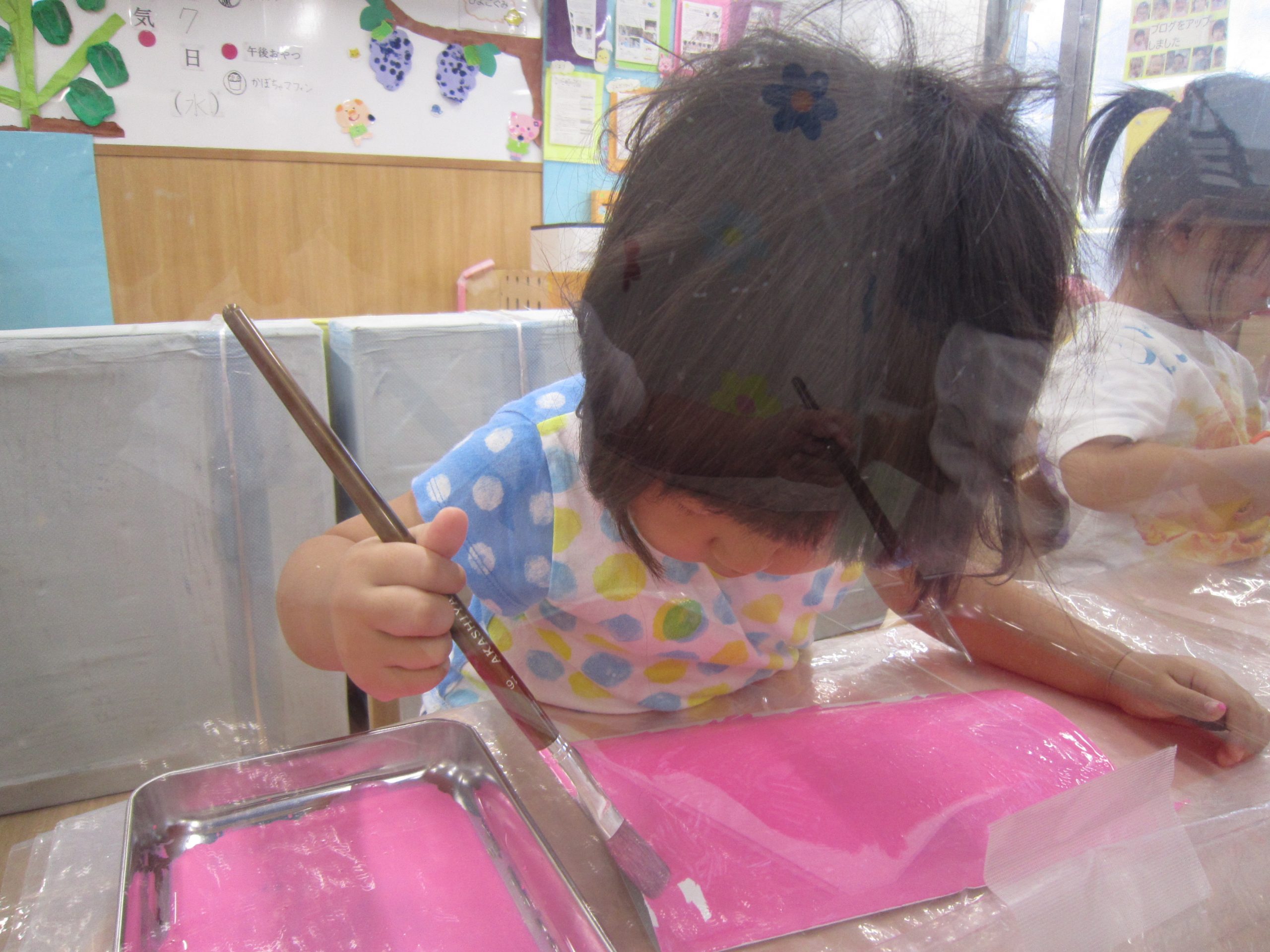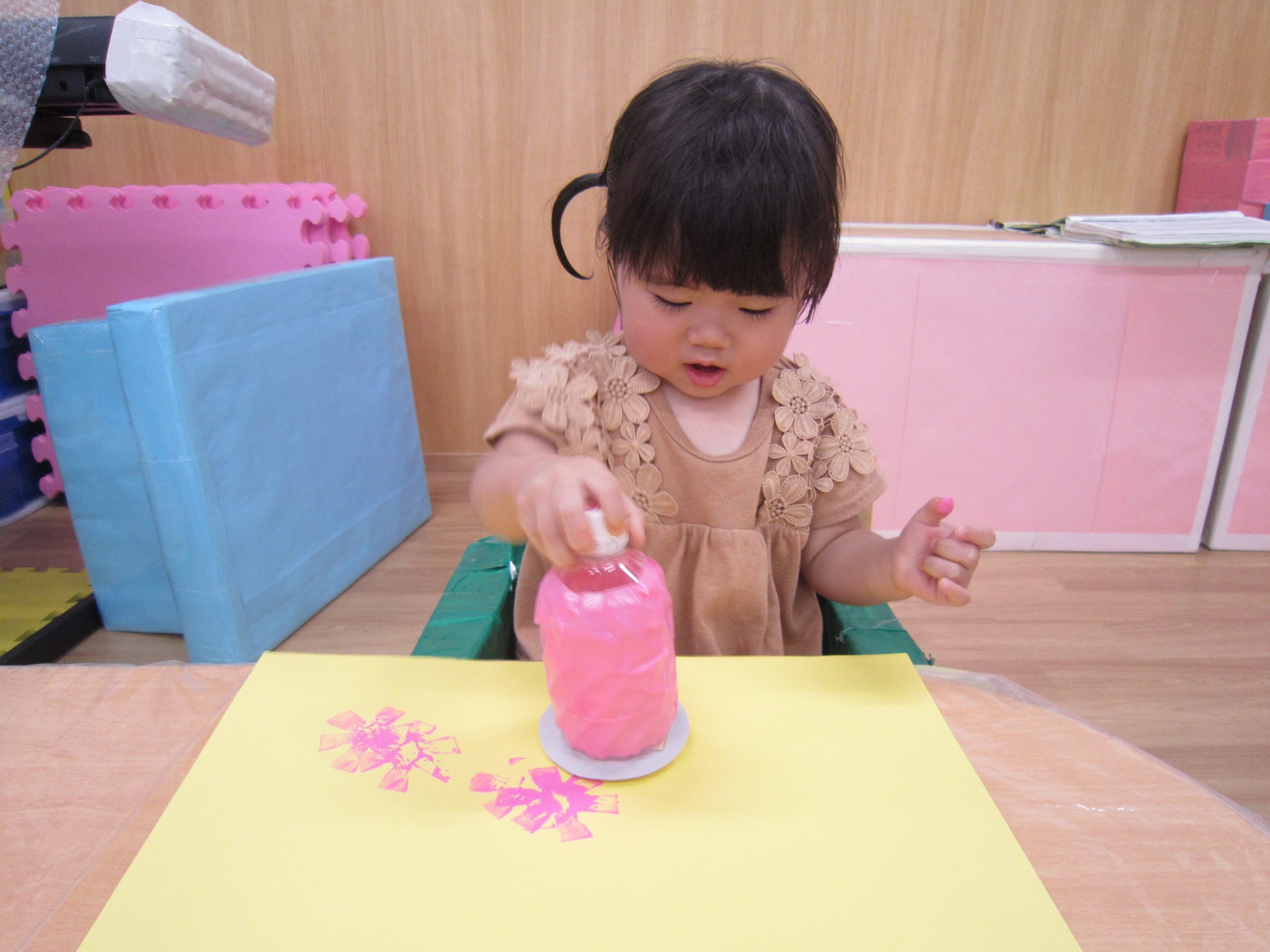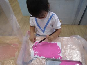 お花紙を丸めてぺったん