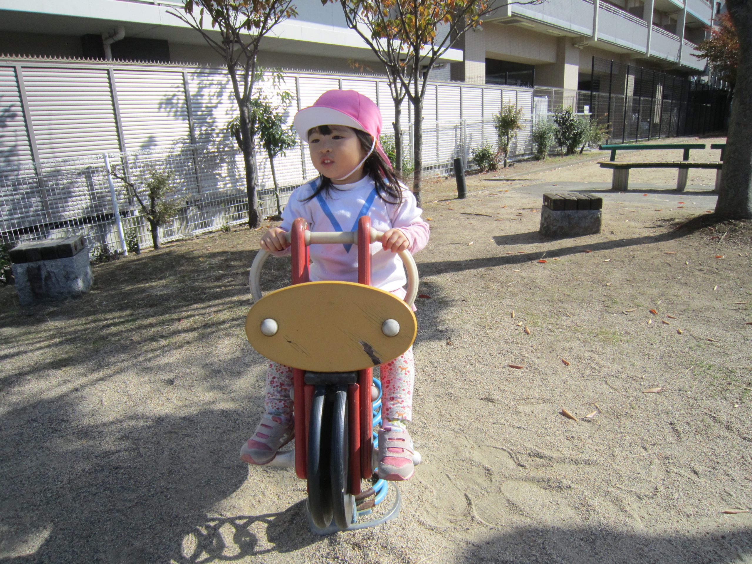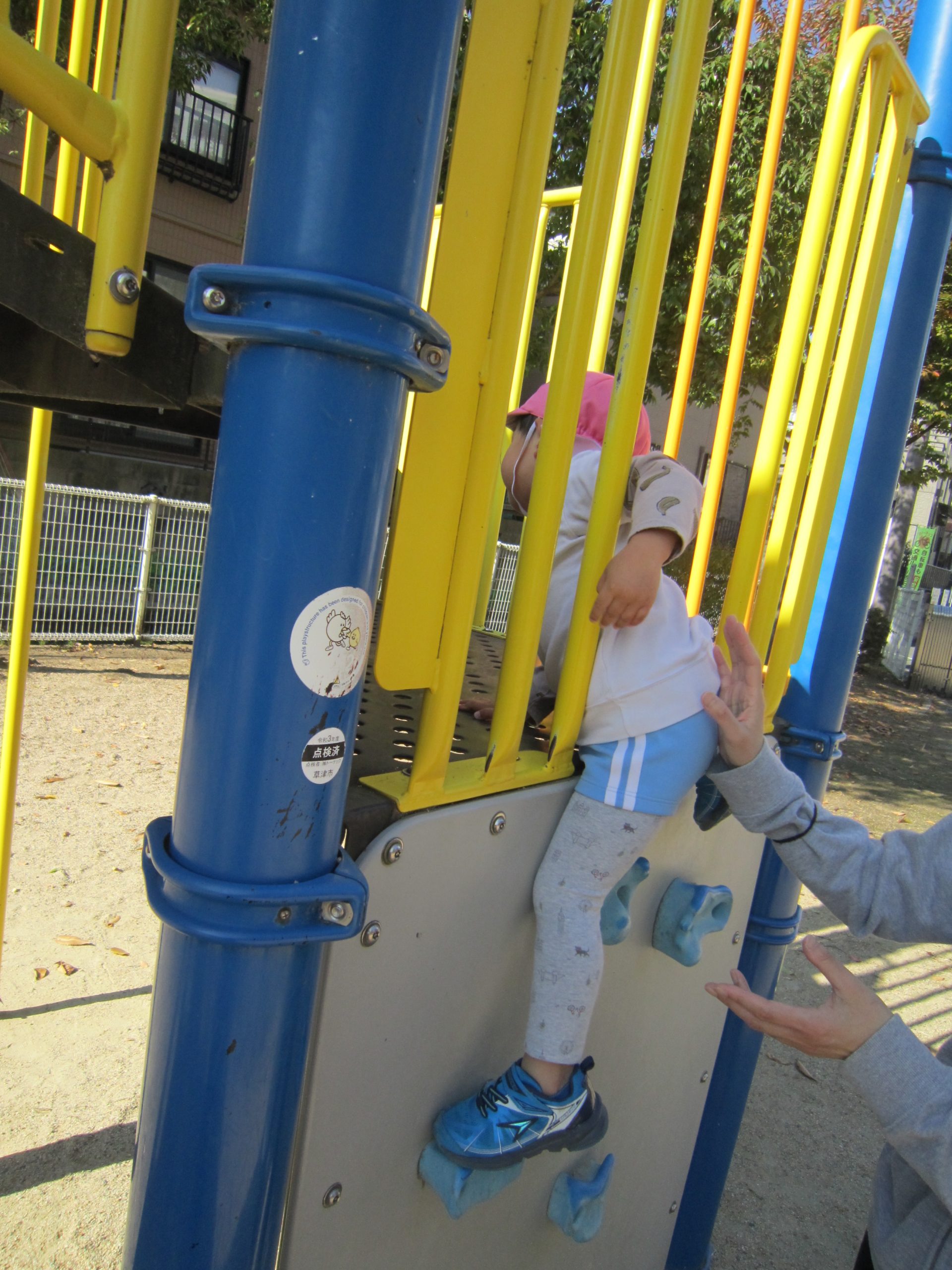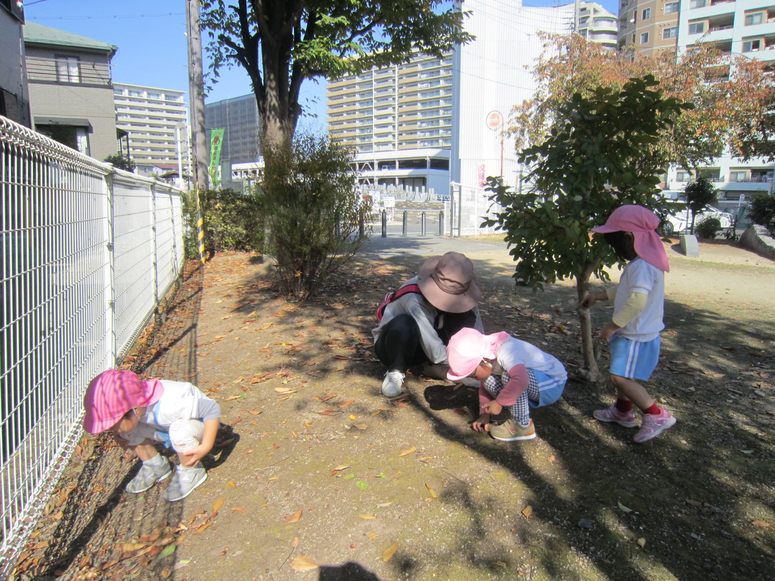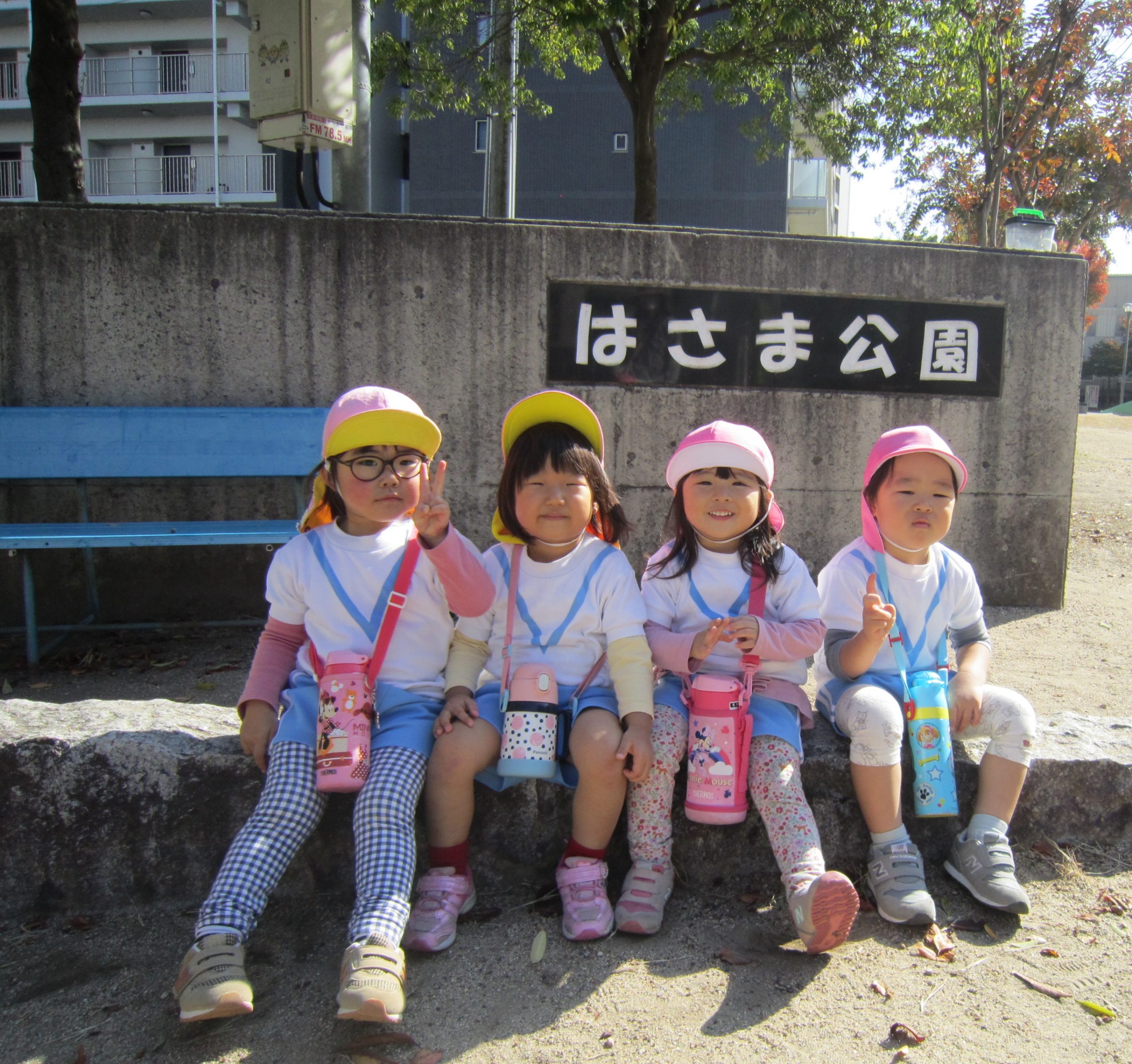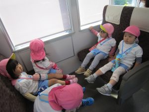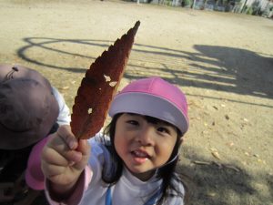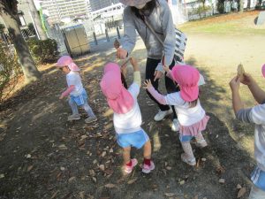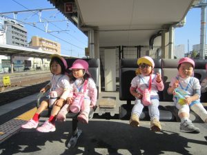 電車に乗って🎵2022年11月9日(水) こぐま組は、今日電車に乗って南草津駅近くにある“はさま公園”へ行きました🎶 公園では、スプリング遊具で遊んだり 複合遊具で遊んだりといつもと違う遊具に子ども達は大喜びでした♬ どんぐりや落ち葉拾いも楽しみました🎵 最後にみんなで写真を撮りました♪ 帰り道に子ども達は「電車に乗ったね」「バスもタクシーもパトカーも見たね」とお話を楽しみながら帰りました♬ また電車に乗って行こうね🎶 « 10月の誕生日会♬ お芋ほり🎵 »