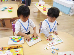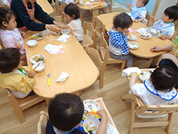 1歳から2歳の頃は特に、「自分で、自分で」が始まる時期でもあります。その思いを大切にし、見守りながら、集団の中での約束も守れるよう導き、そのための環境を整えるようにしています。