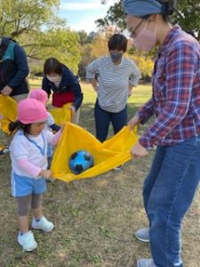 今回は守山ナーサリーさんとの合同で、初めましてのお友だちと一緒に遊びました。