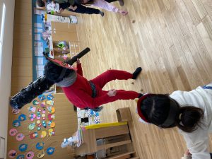 すると…鬼がやってきました❕❕急いで豆を持ち「鬼は~そと」「鬼は~そと」