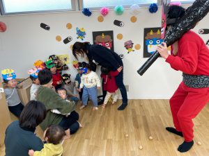 鬼に変身し、みんなで歌を歌ったり、合奏したりして楽しんでいました。