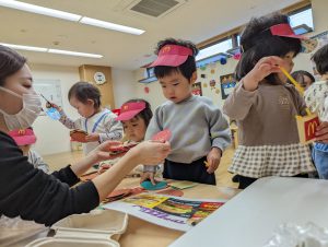 持つようになってきたうさぎ組の子どもたち。