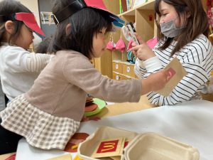 おともだちの遊んでいる様子が気になり、真似っこをしてみたり一緒に遊んだり、関わりをたくさん