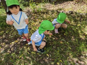 『どんぐり見つけたよ』『赤い実、あったよ』とみんなで見せ合いっこ🤩