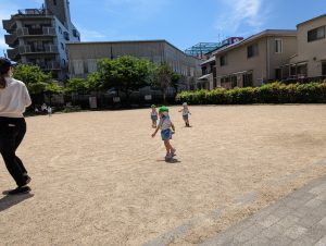 公園に到着❕❕ 水分補給とおやつタイムを済ませると・・・遊具に向かって一直線に走っていきました💦