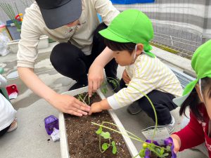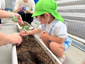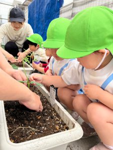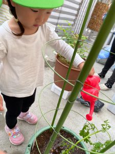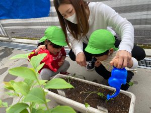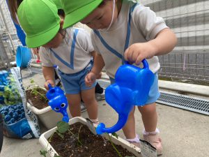 「毎日お水をあげるよ~❕❕」「早く食べたいね~」ととっても楽しみにしているこぐま組です。