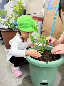 おいしくなあれ、大きくなあれ」と願いを込めて植えました。