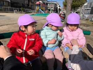 初めての経験をたくさんしたうさぎ組の子どもたち。いっぱい遊んで疲れてしまい帰りは行きとは違い無言でした(笑)
